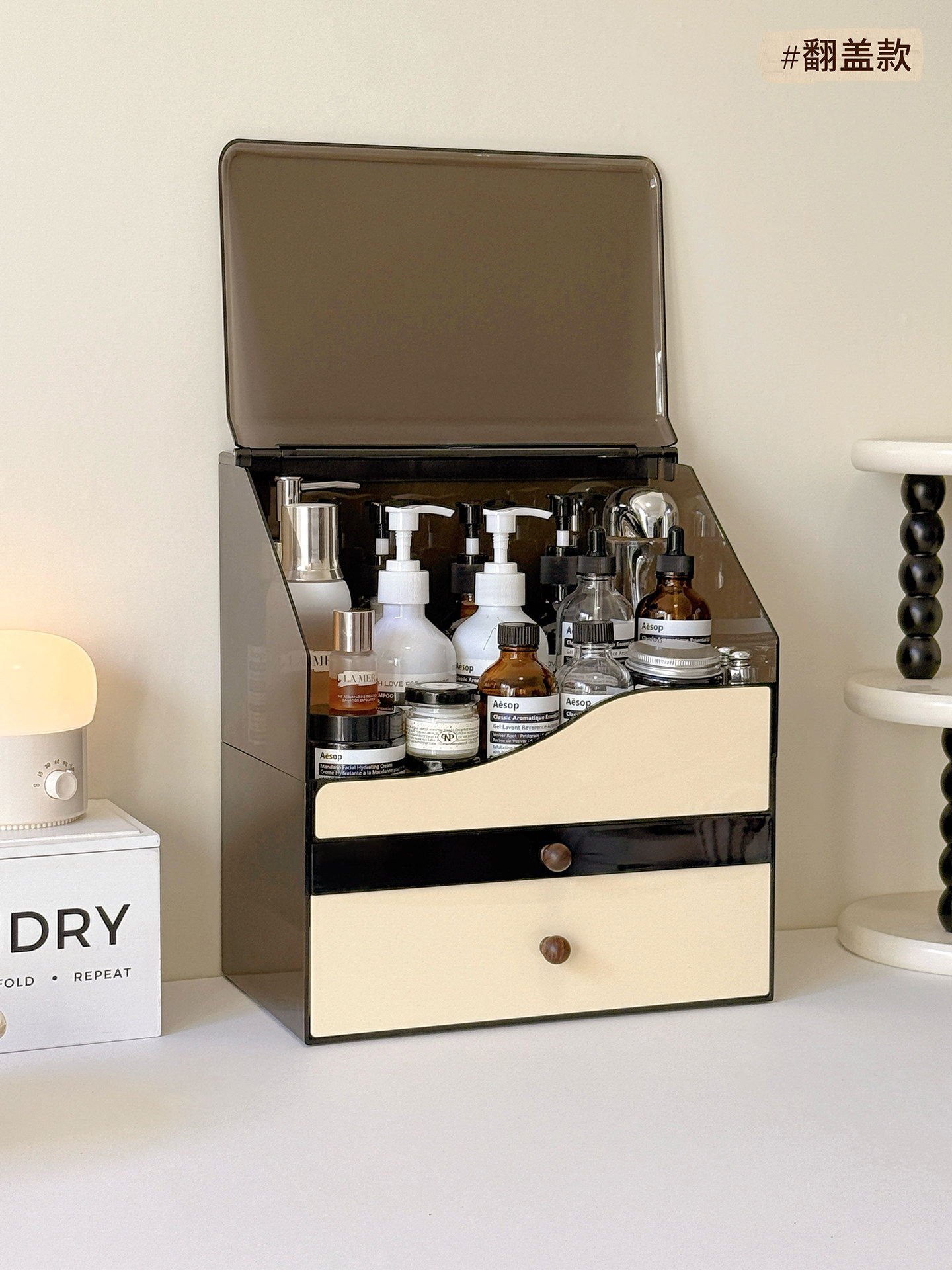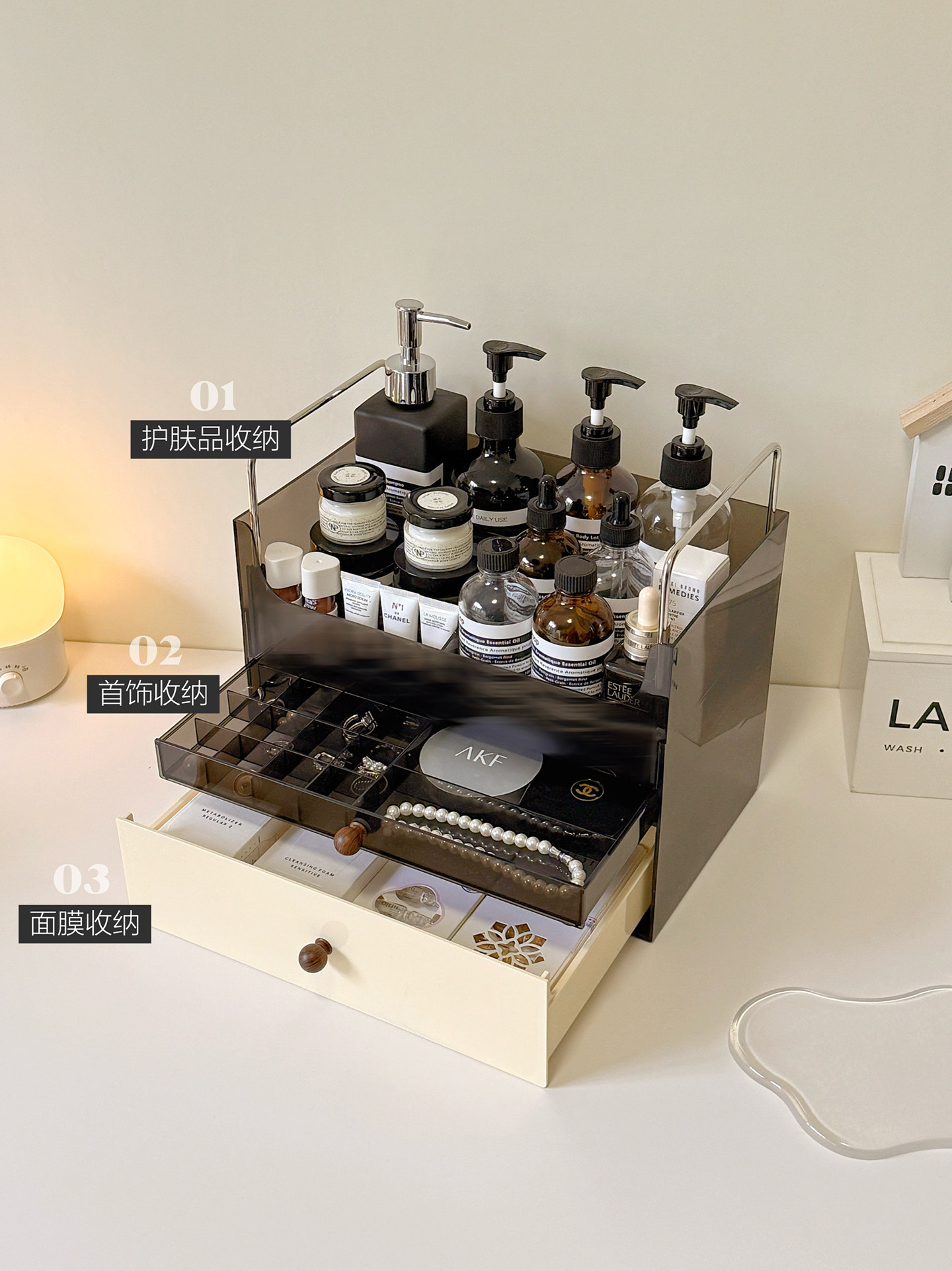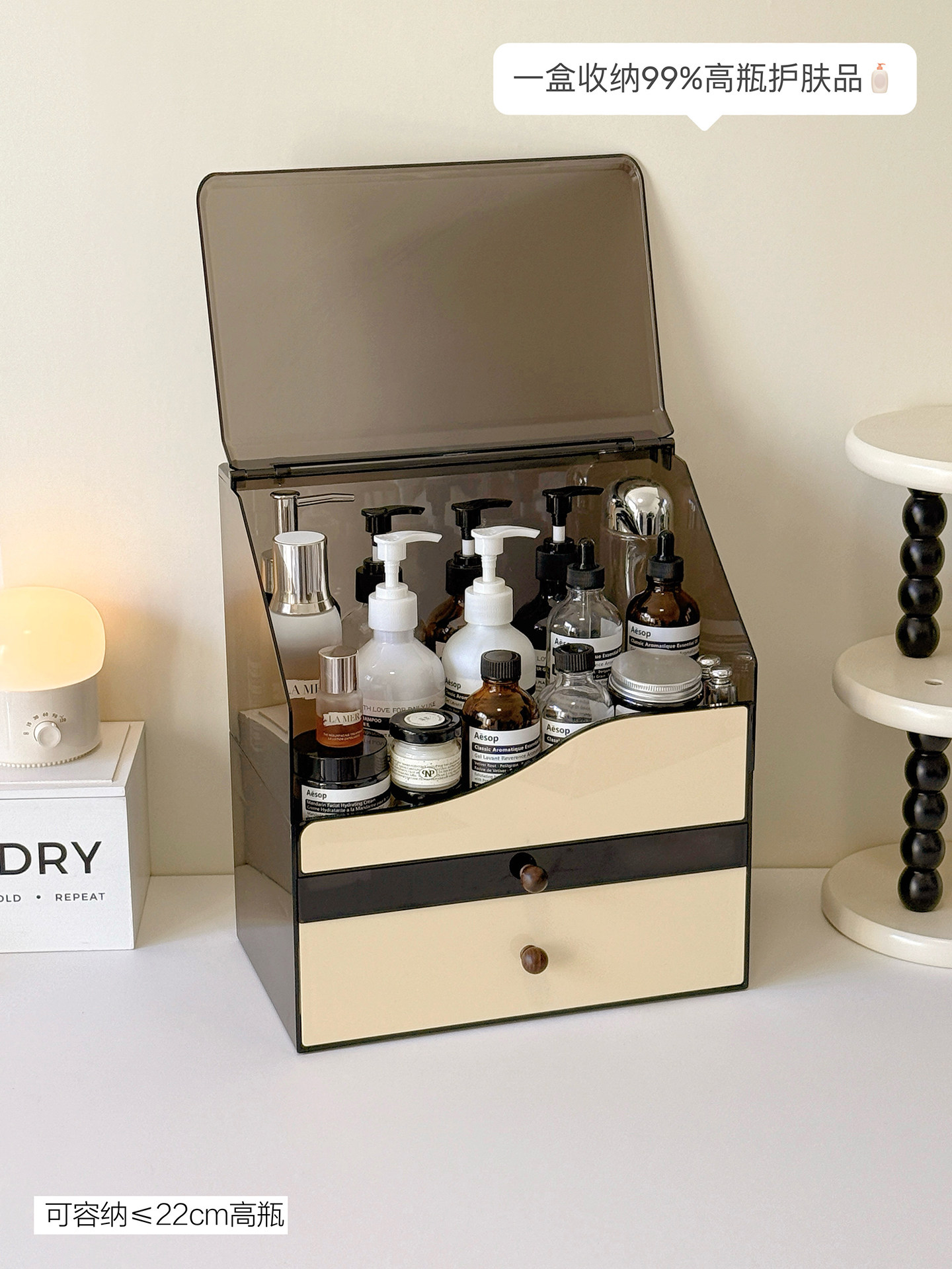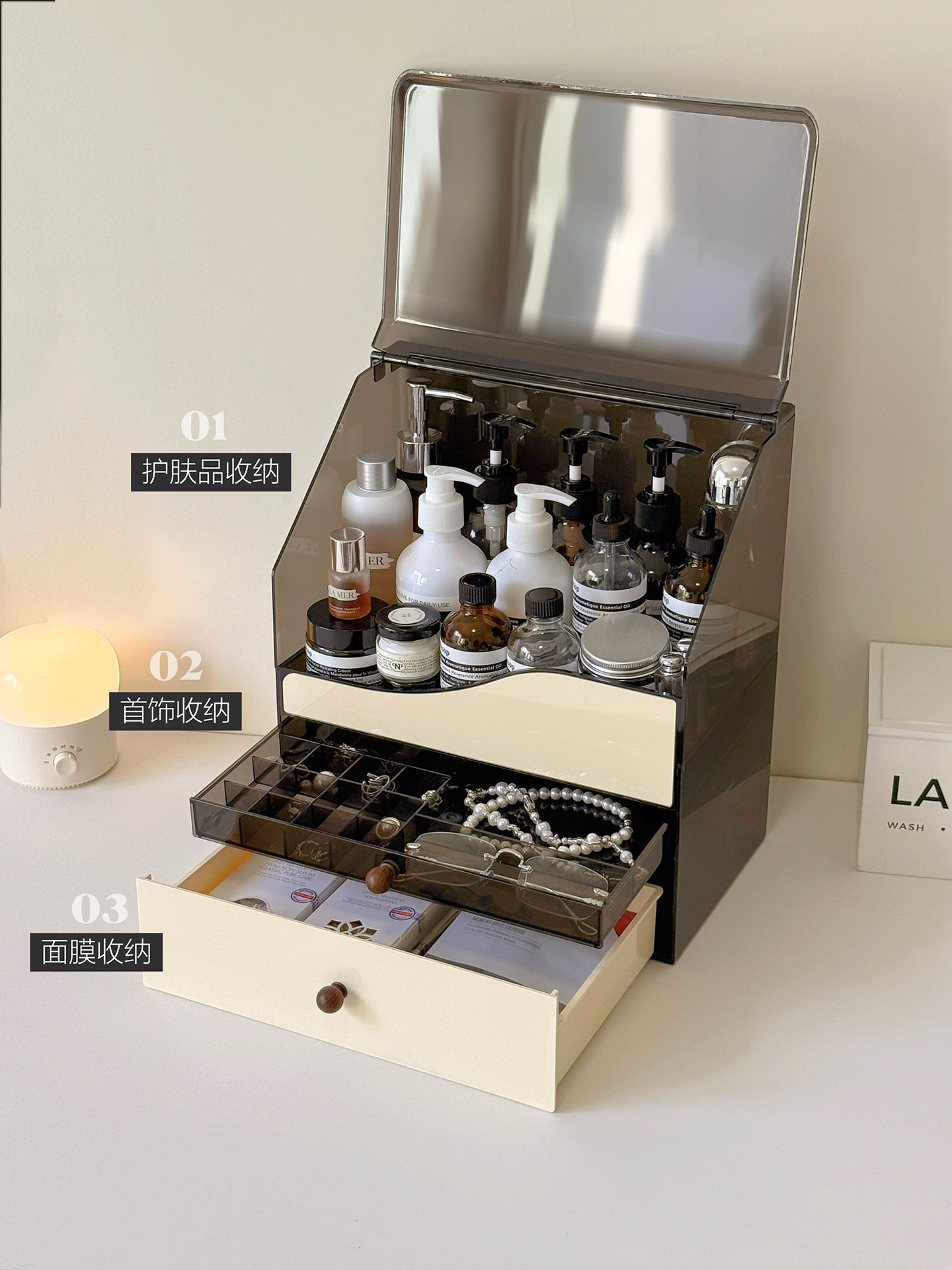 Cosmetic Storage Box, Desktop High-End Drawer-Type Dressing Table, Skin Care Product Storage Rack, Jewelry Box with Lid, Dust-Proof