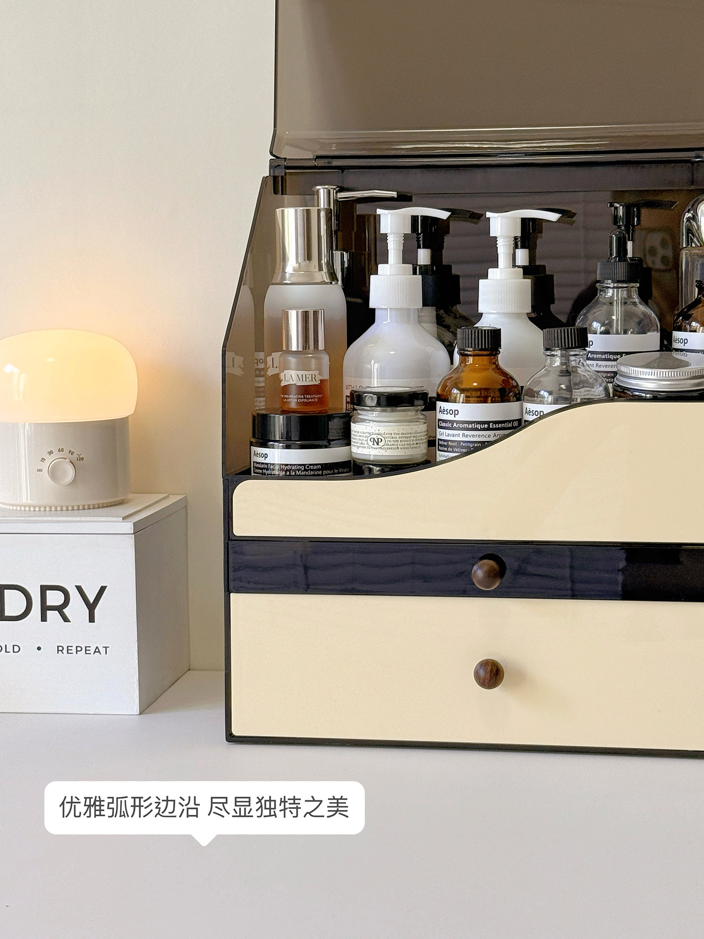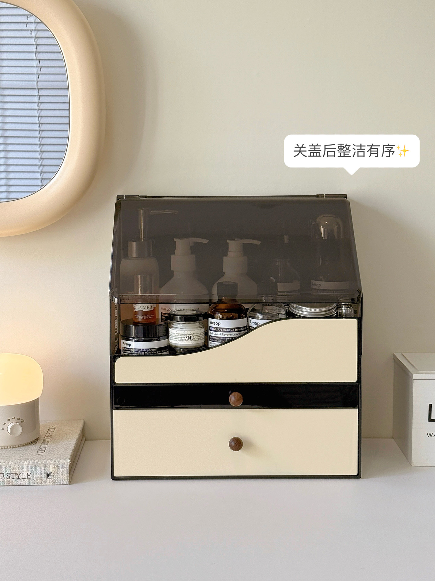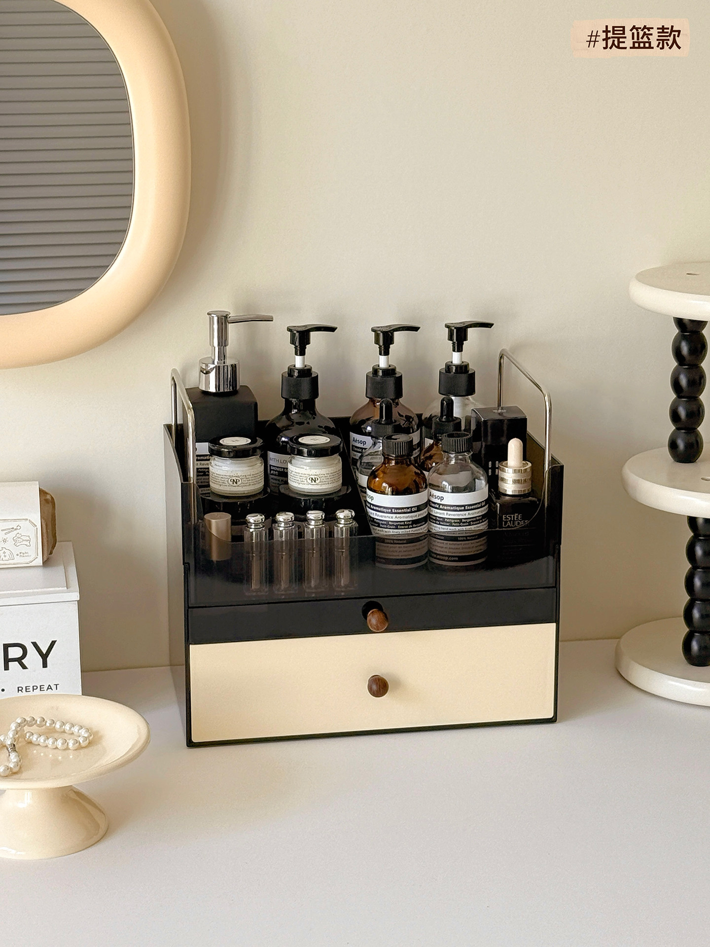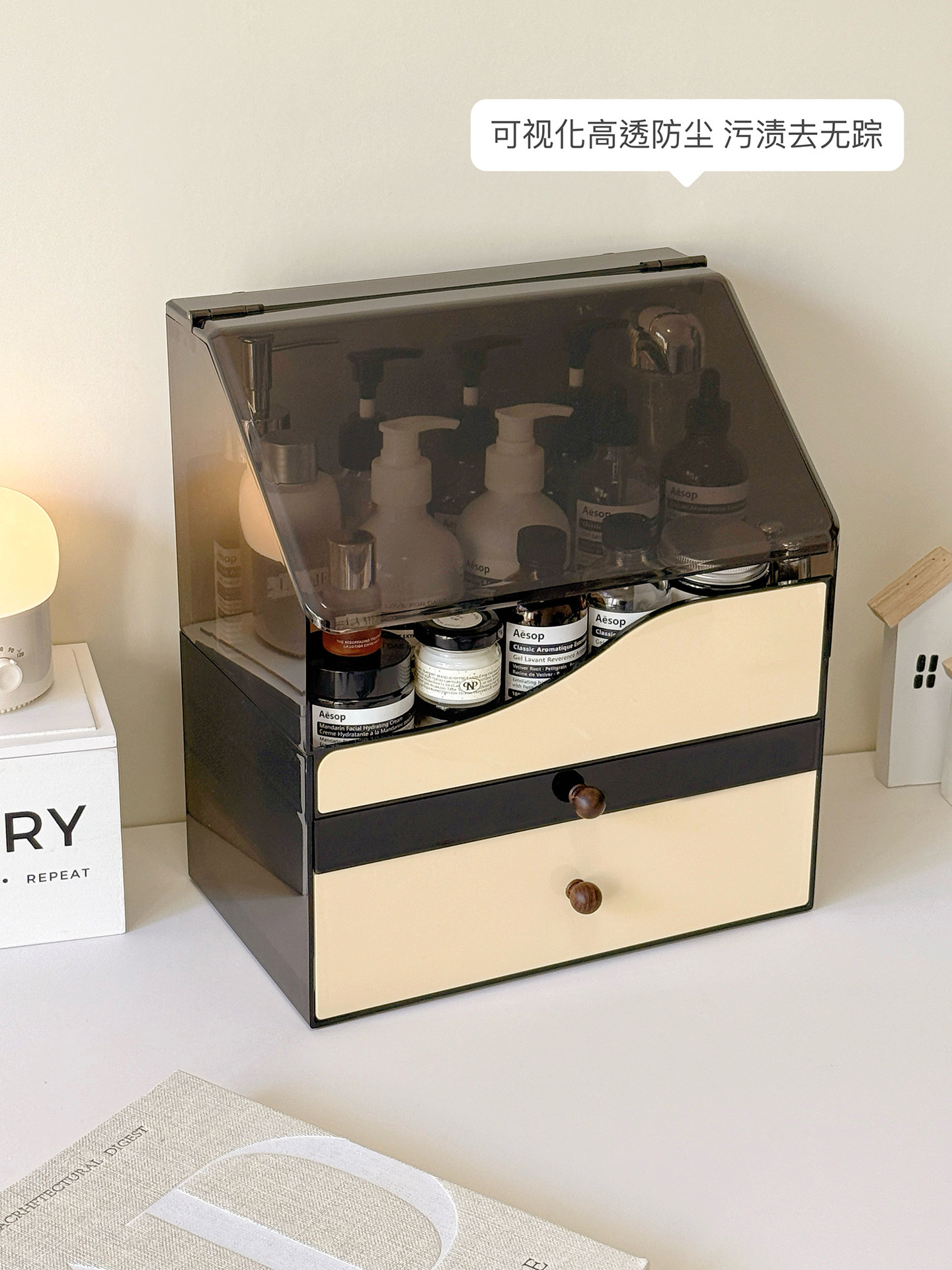 Cosmetic Storage Box, Desktop High-End Drawer-Type Dressing Table, Skin Care Product Storage Rack, Jewelry Box with Lid, Dust-Proof