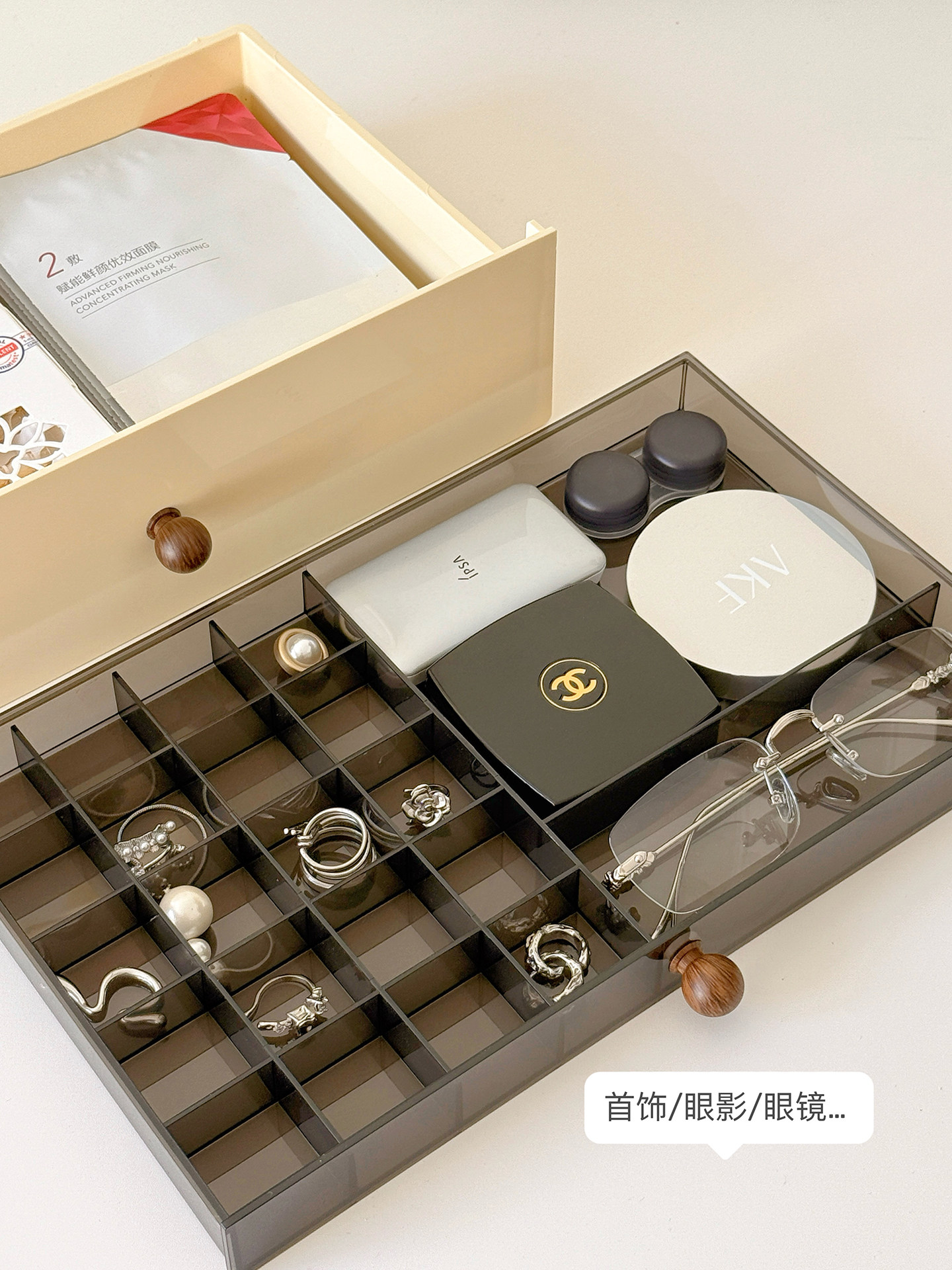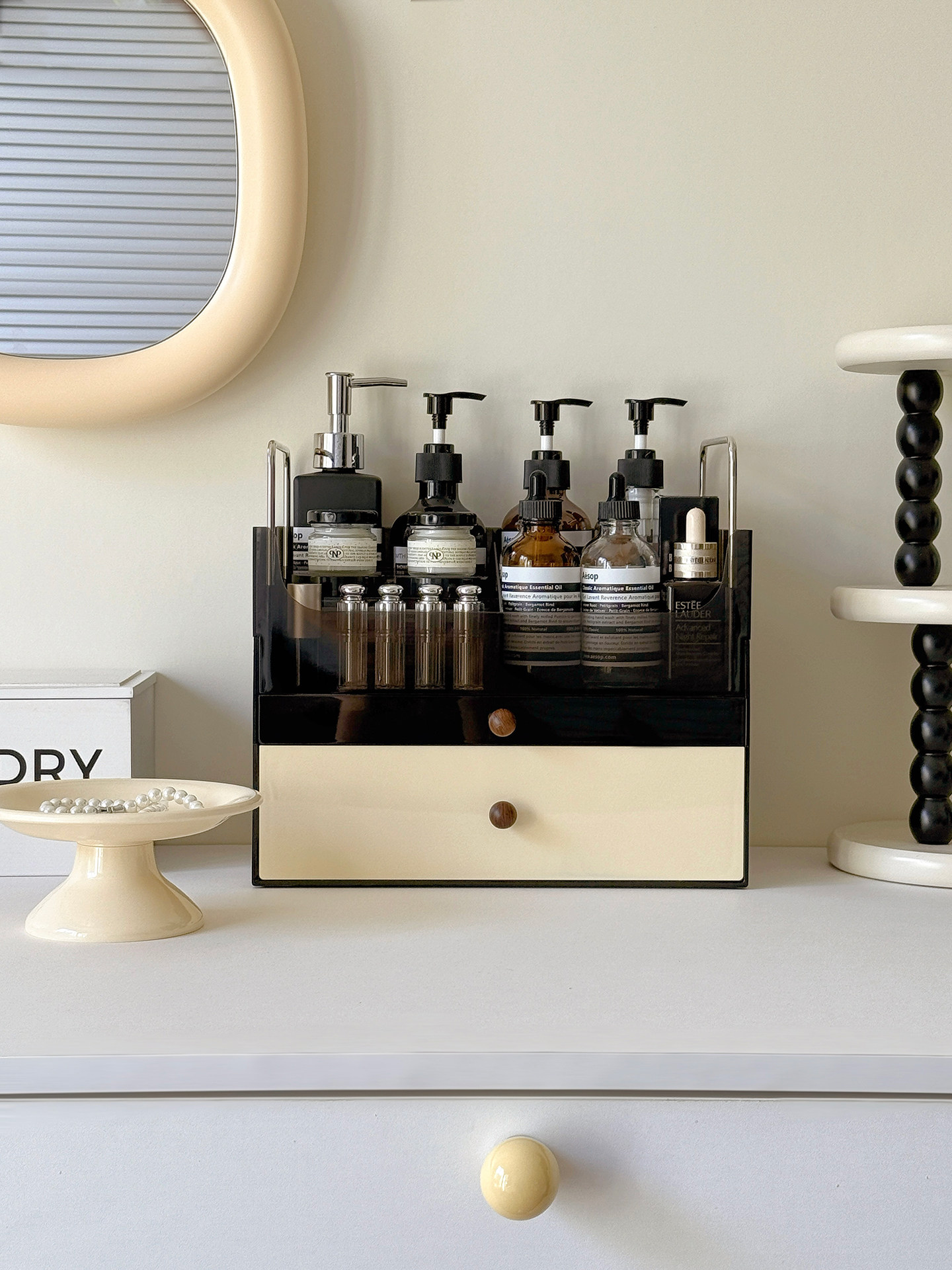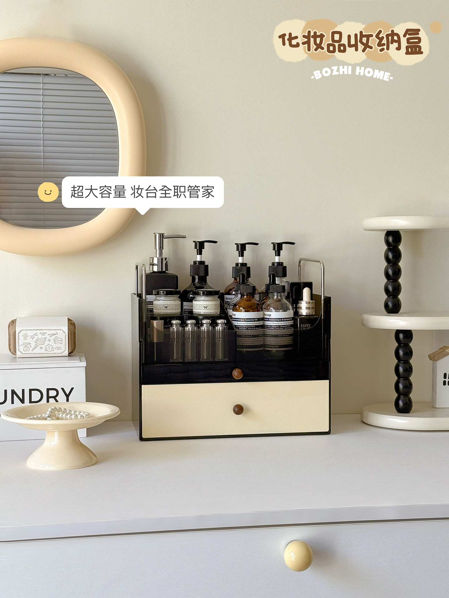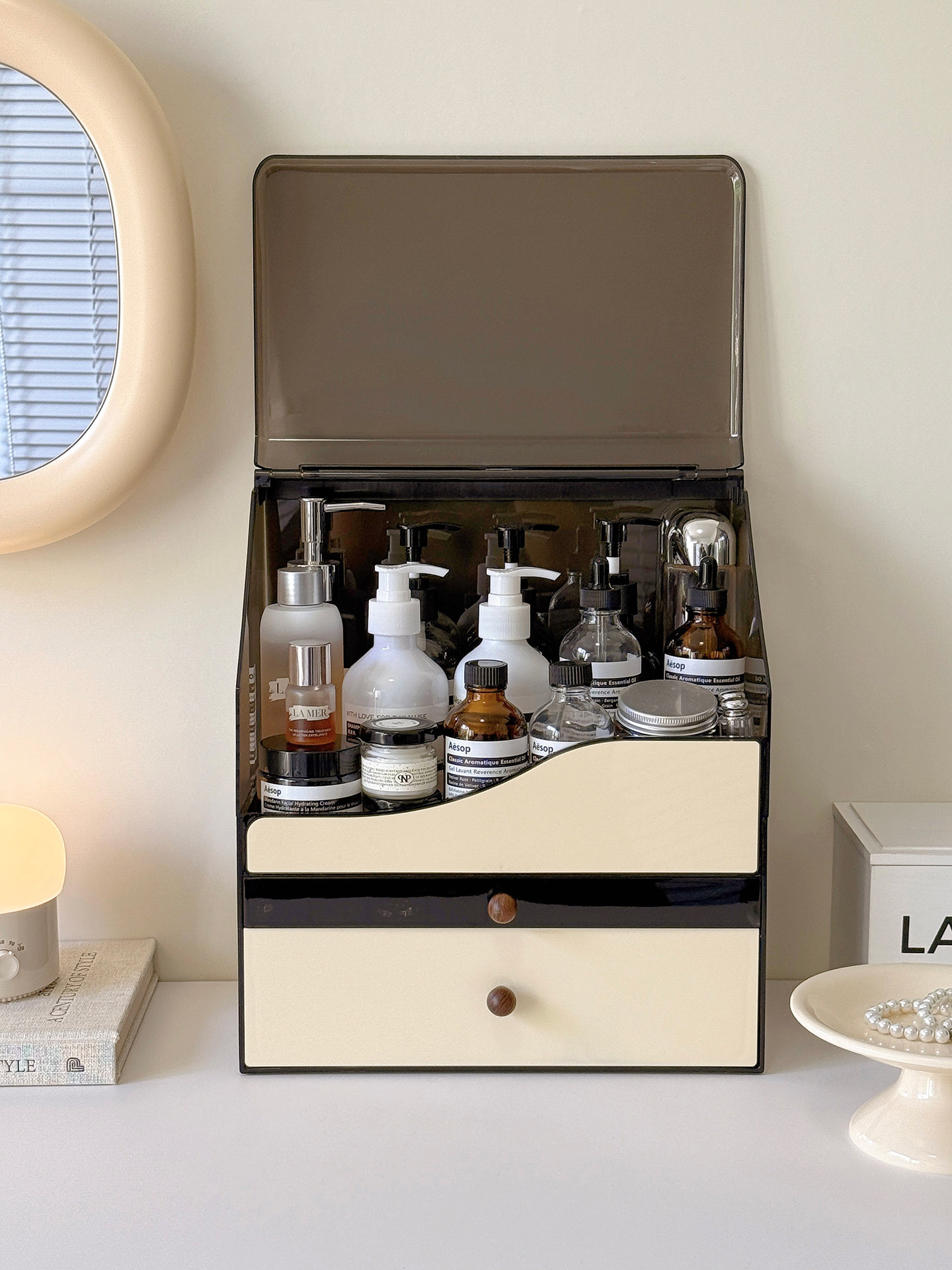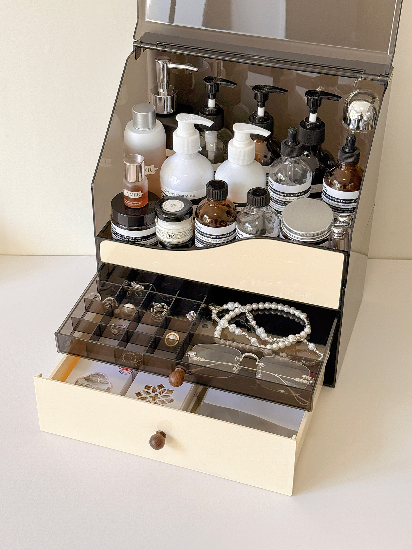 Cosmetic Storage Box, Desktop High-End Drawer-Type Dressing Table, Skin Care Product Storage Rack, Jewelry Box with Lid, Dust-Proof