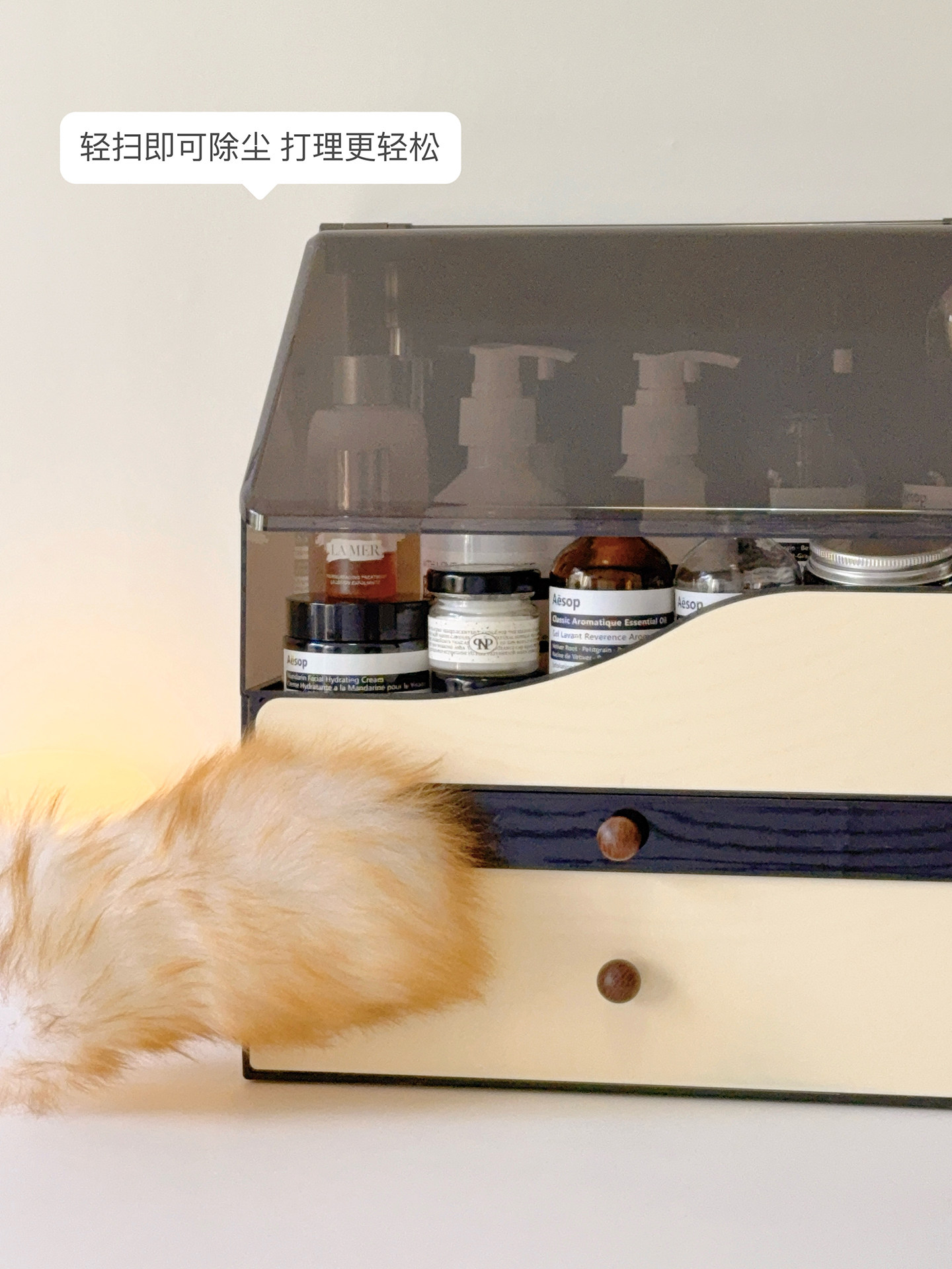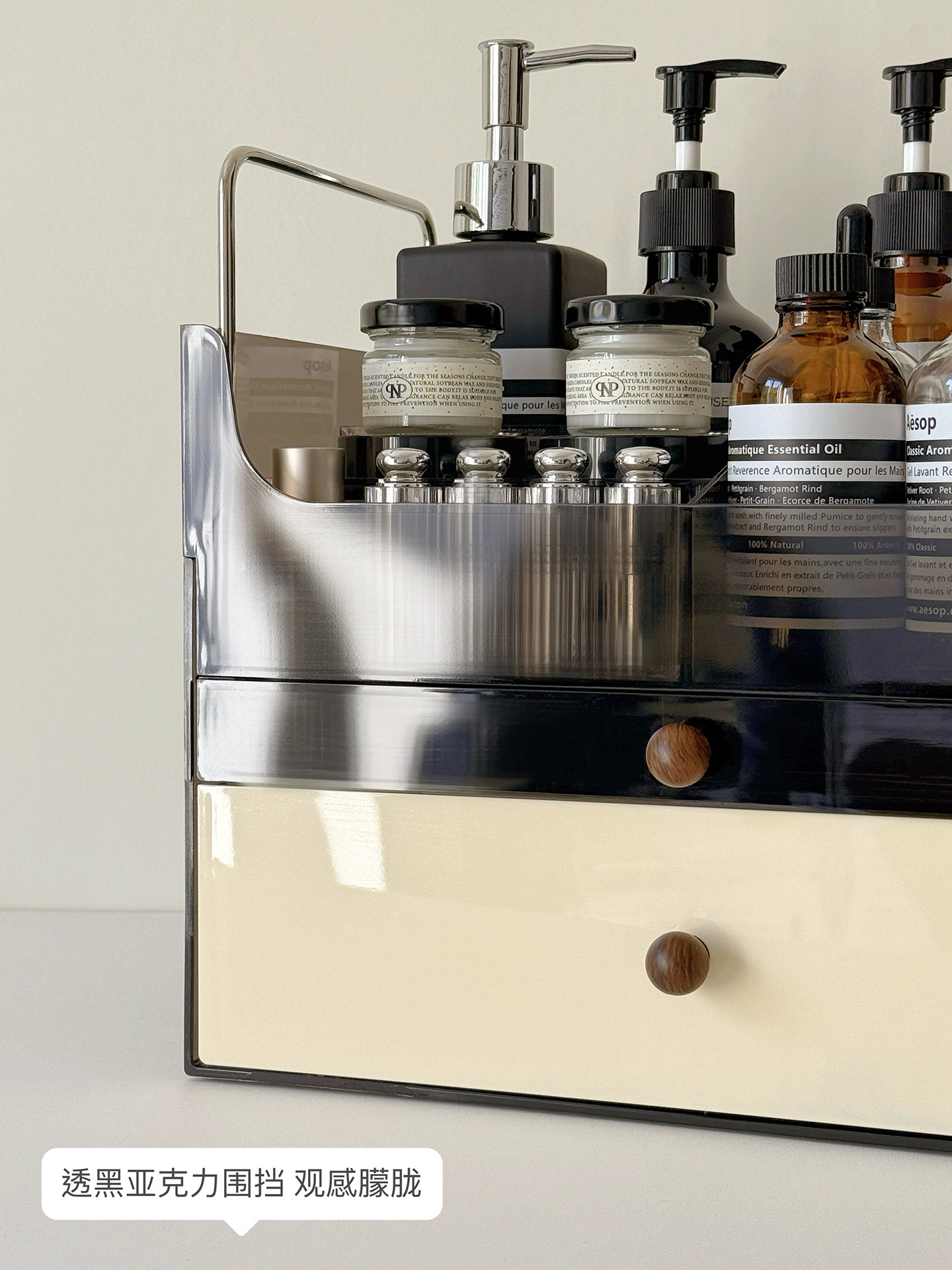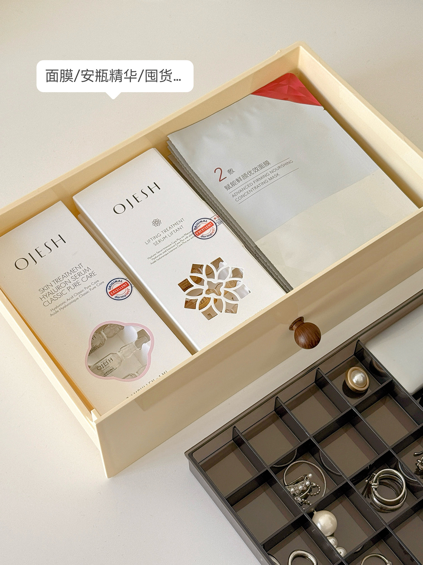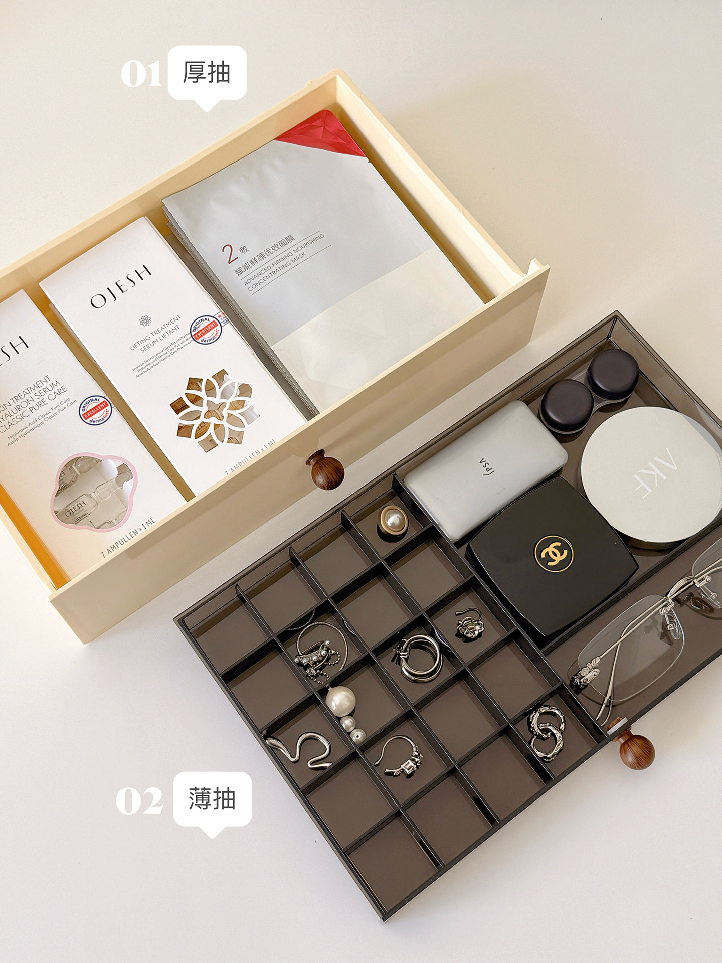 Cosmetic Storage Box, Desktop High-End Drawer-Type Dressing Table, Skin Care Product Storage Rack, Jewelry Box with Lid, Dust-Proof