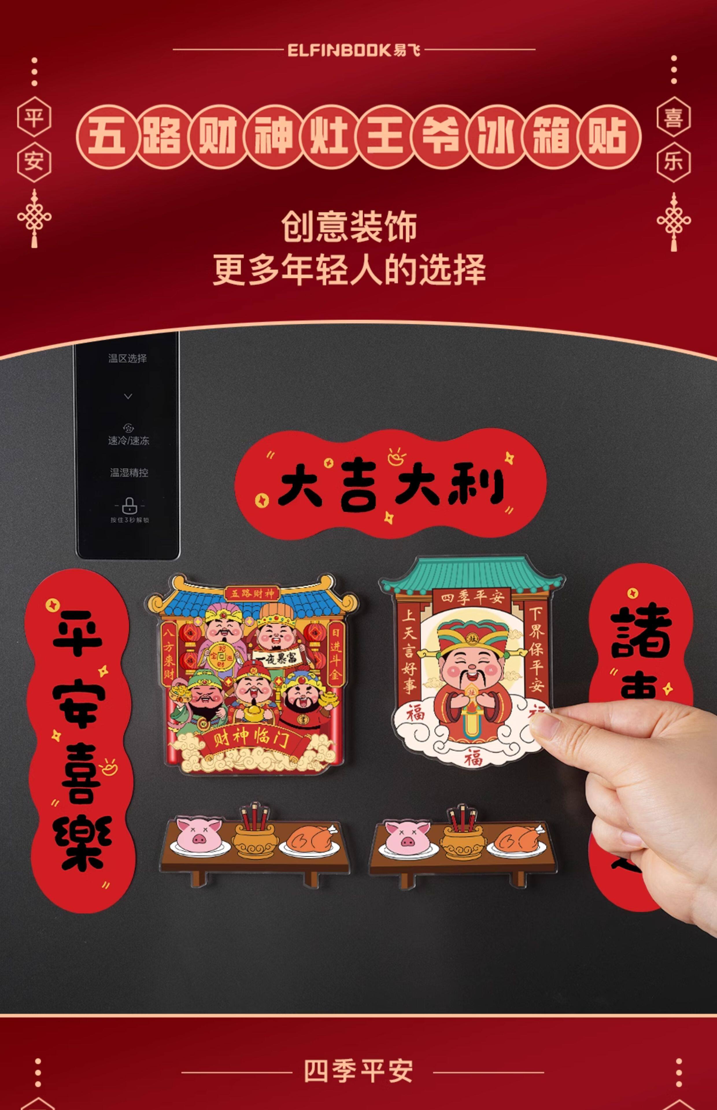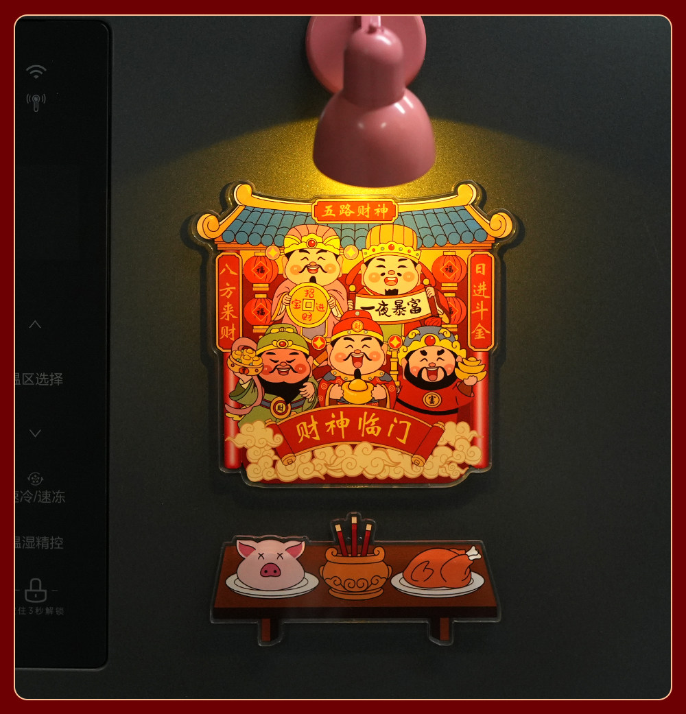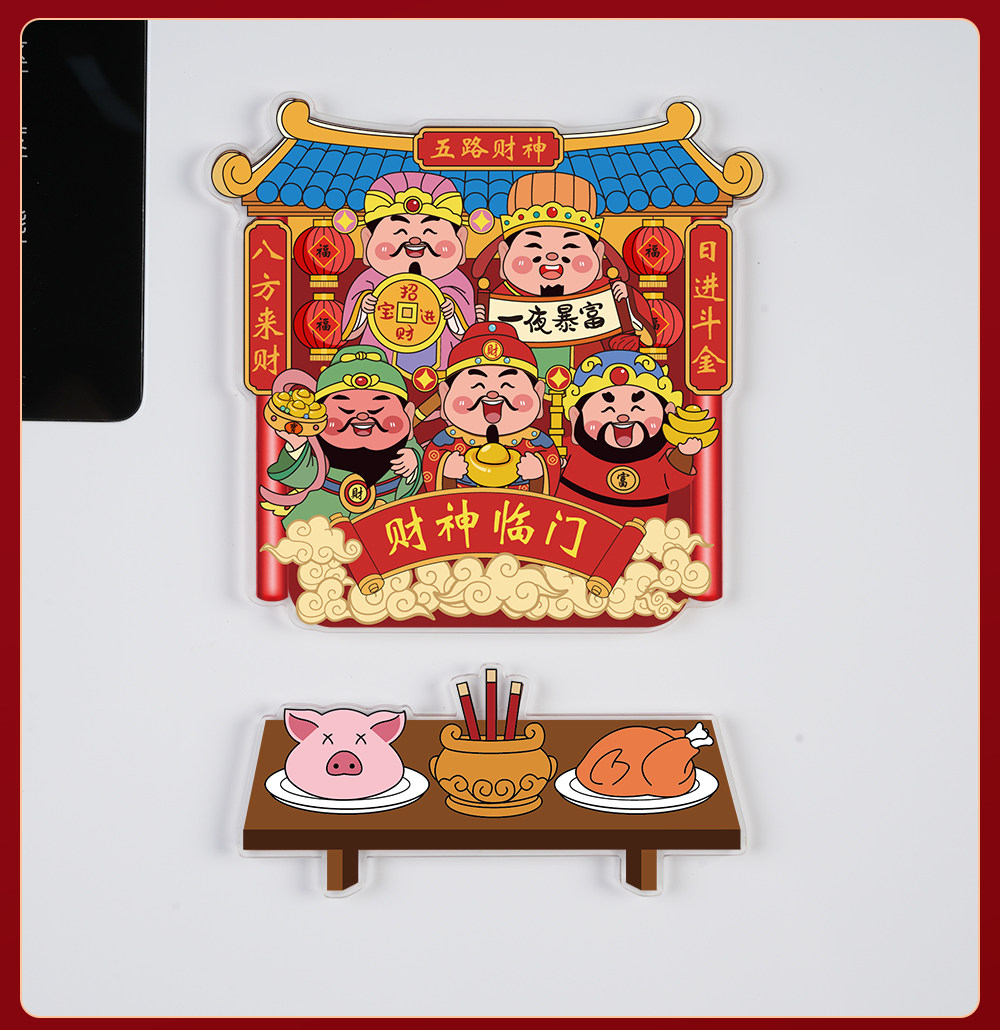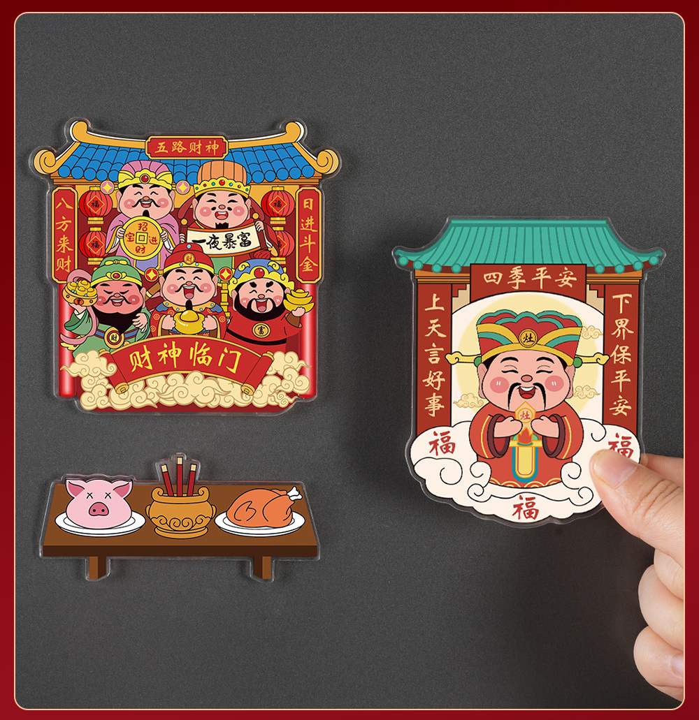 Acrylic Refrigerator Magnet of the God of Wealth, Magnetic Sticker of the Kitchen God, New Year Decoration, Couplet, Housewarming Gift, Five Gods of Wealth