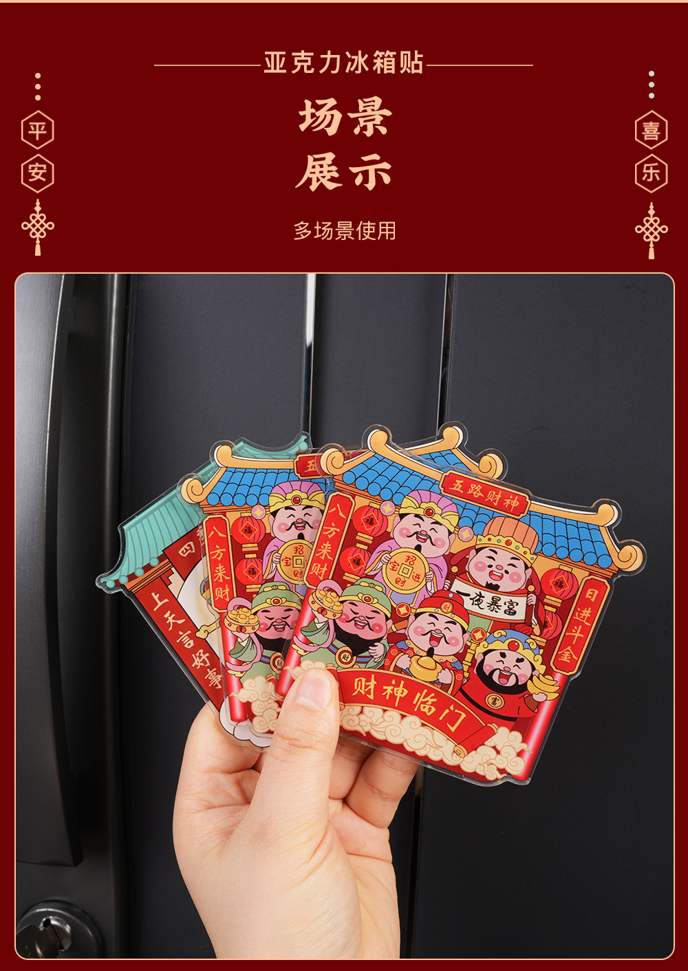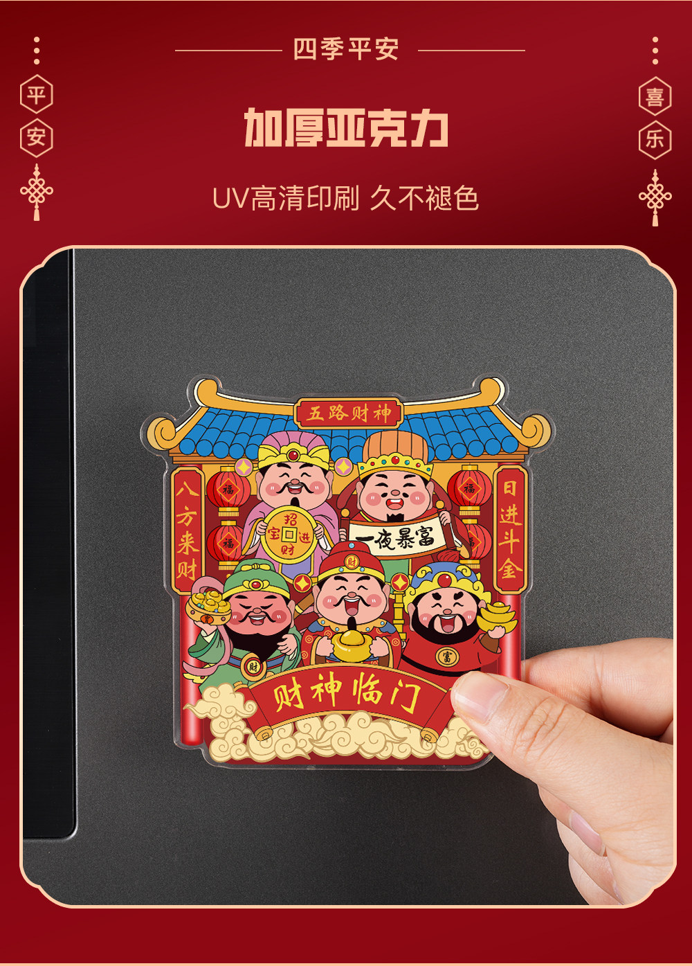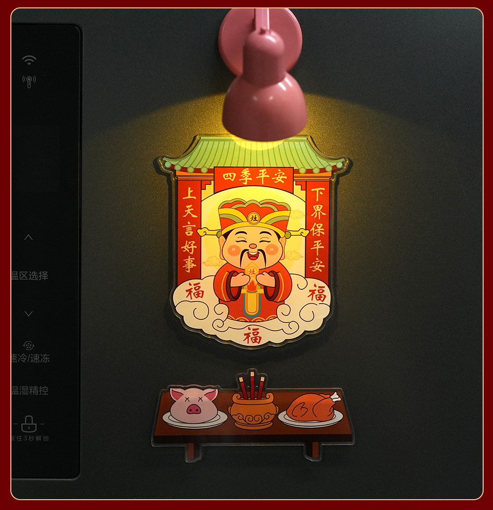 Acrylic Refrigerator Magnet of the God of Wealth, Magnetic Sticker of the Kitchen God, New Year Decoration, Couplet, Housewarming Gift, Five Gods of Wealth