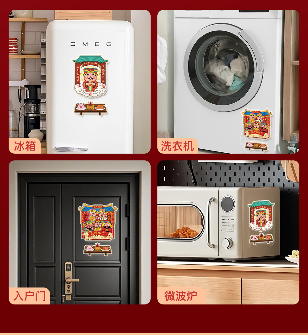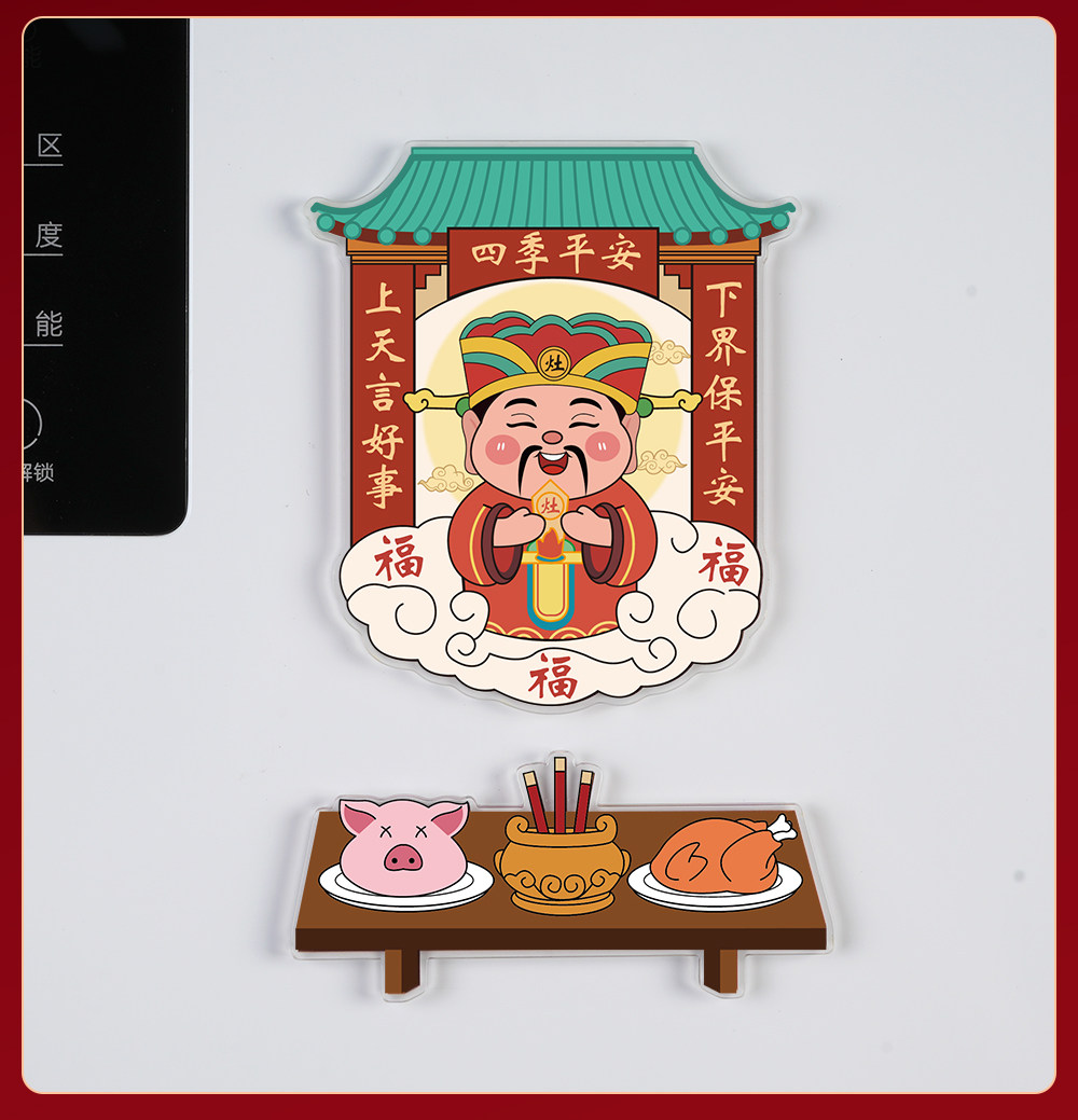 Color Classification Five Gods of Wealth + Tributes[Acrylic Refrigerator Magnet],Stove King + Tributes[Acrylic Refrigerator Magnet],Five Gods of Wealth + God of the Hearth + 2 Tables of Offerings[Acrylic Refrigerator Magnet],Five Gods of Wealth + Tributes + Couplets[Small Couplets Are Not Acrylic],Stove King + Tributes + Couplets[Small Couplets Are Not Acrylic]