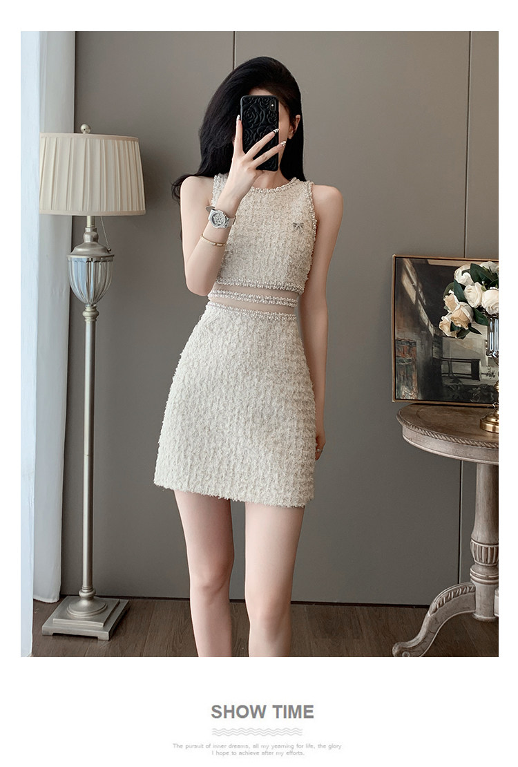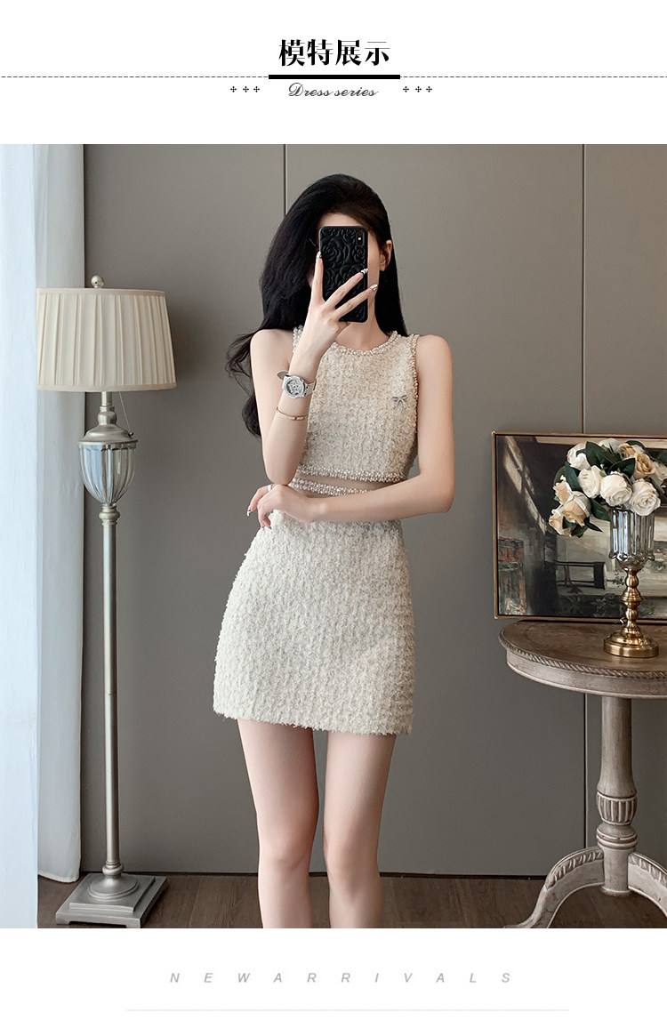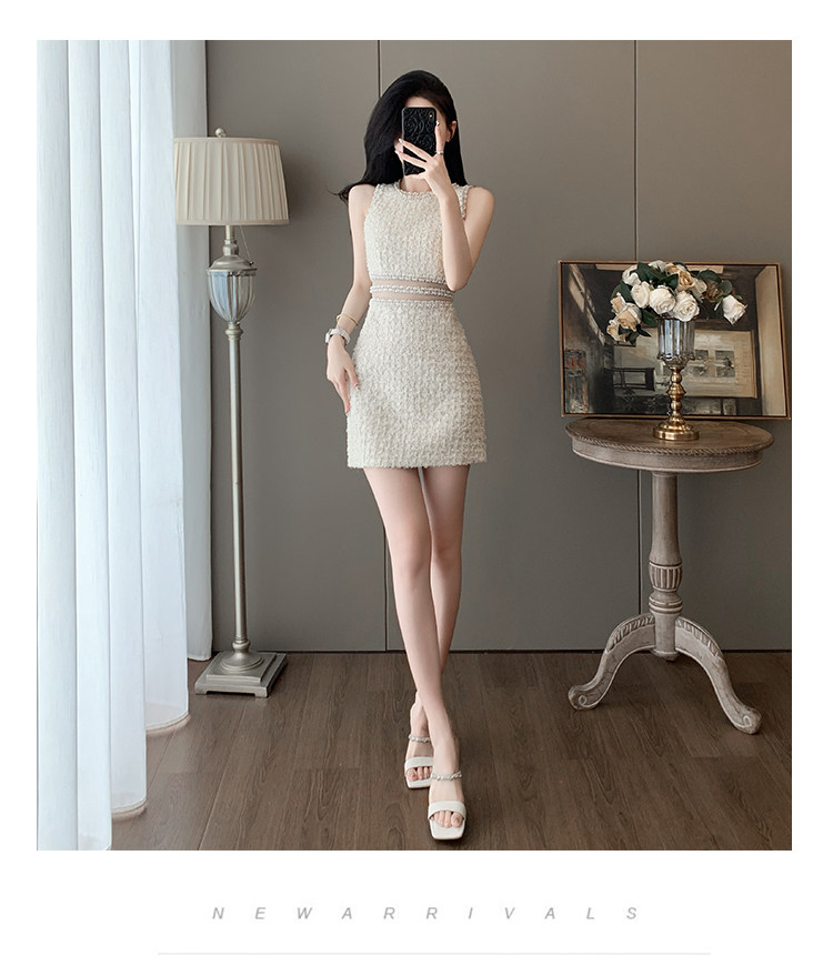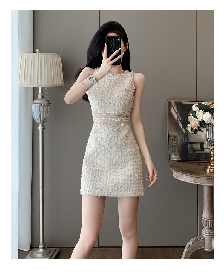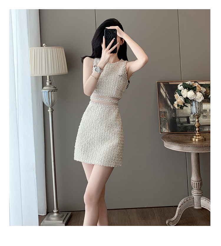 Summer Socialite Elegant French Light Luxury Sleeveless Dress with Exposed Waist, Sexy Little Chanel-Style Dress for Women with a High-End Feel
