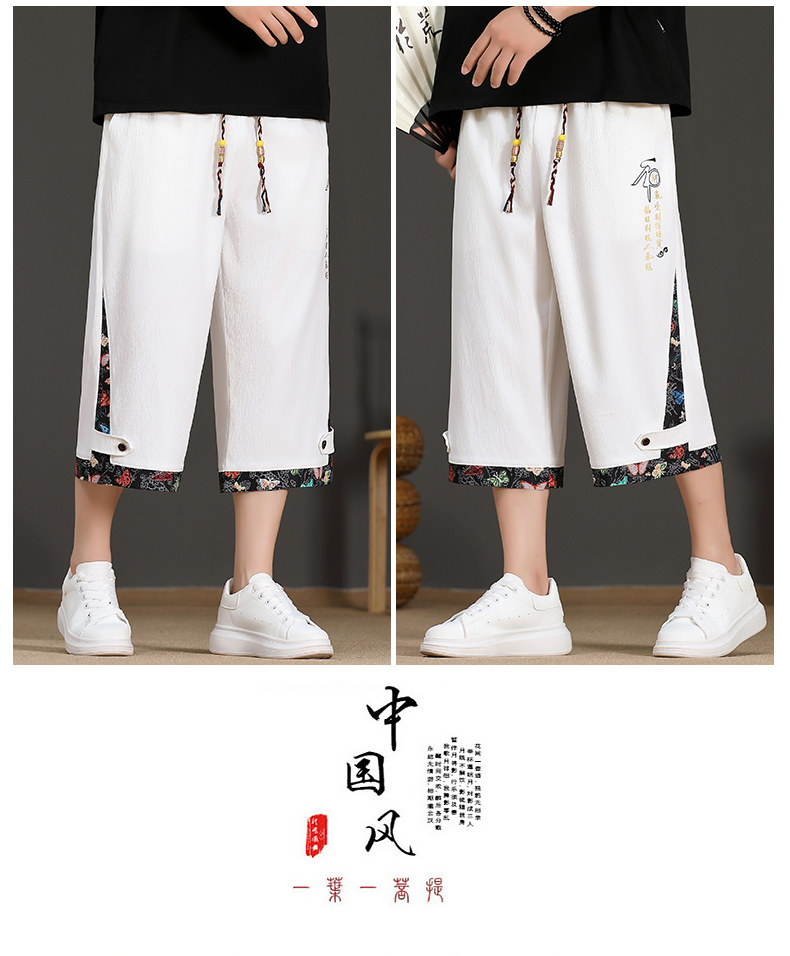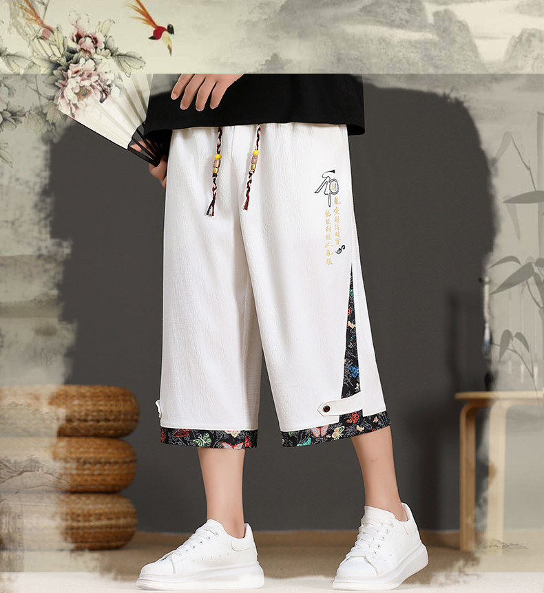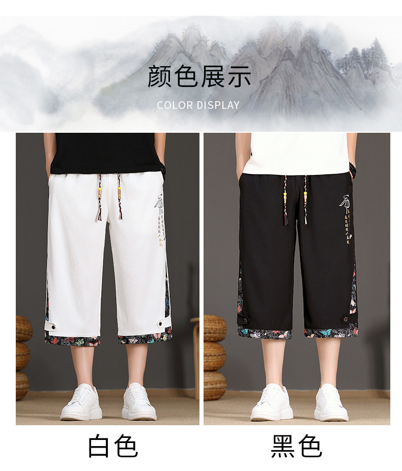 Chinese Style Summer Shorts for Men 2025 New National Trend High-End Casual Capri Pants Straight Ice Silk Beach Wide-Leg Pants
