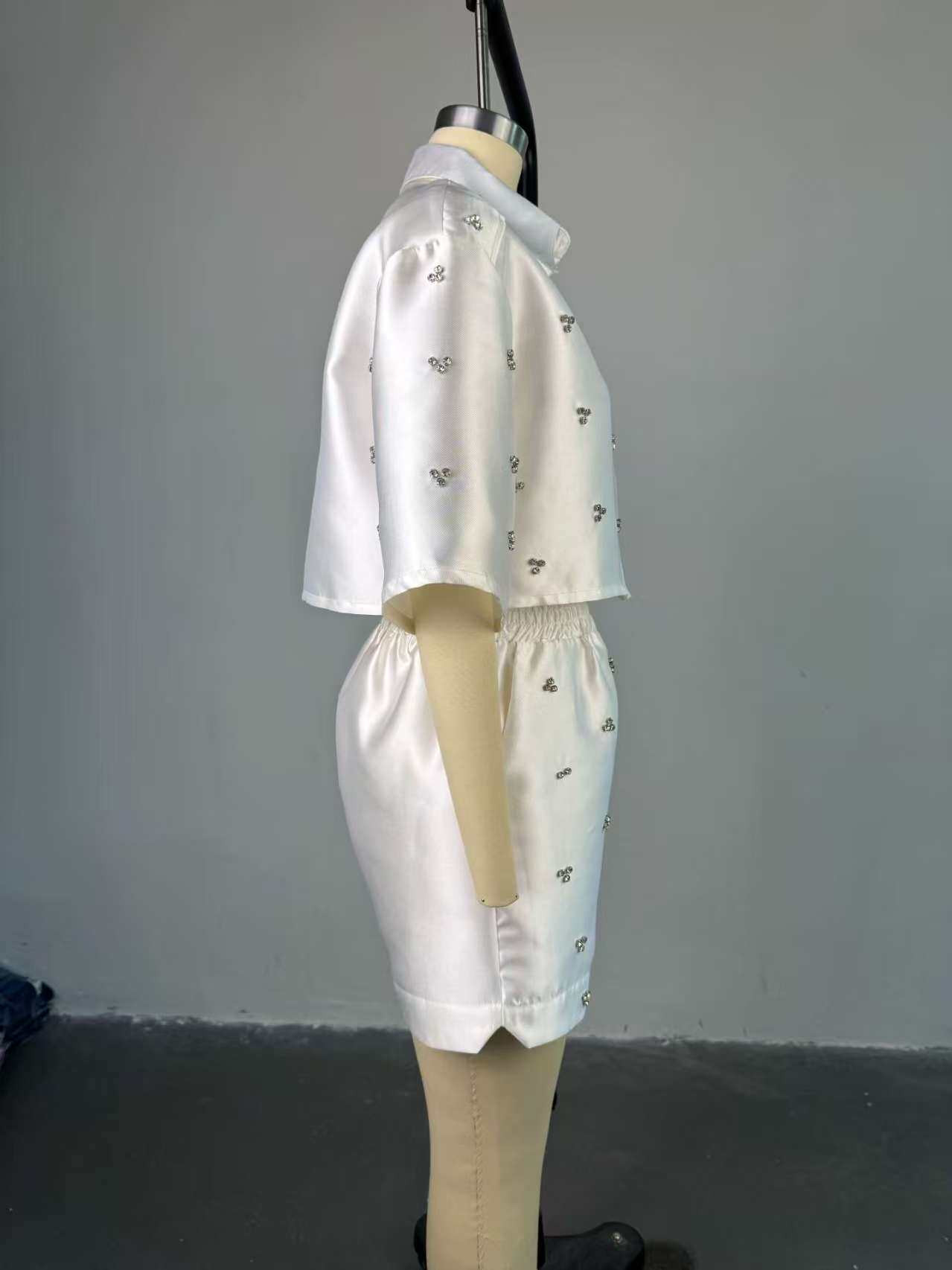 European and American Style New Beaded Lapel Short Shirt and Shorts Set