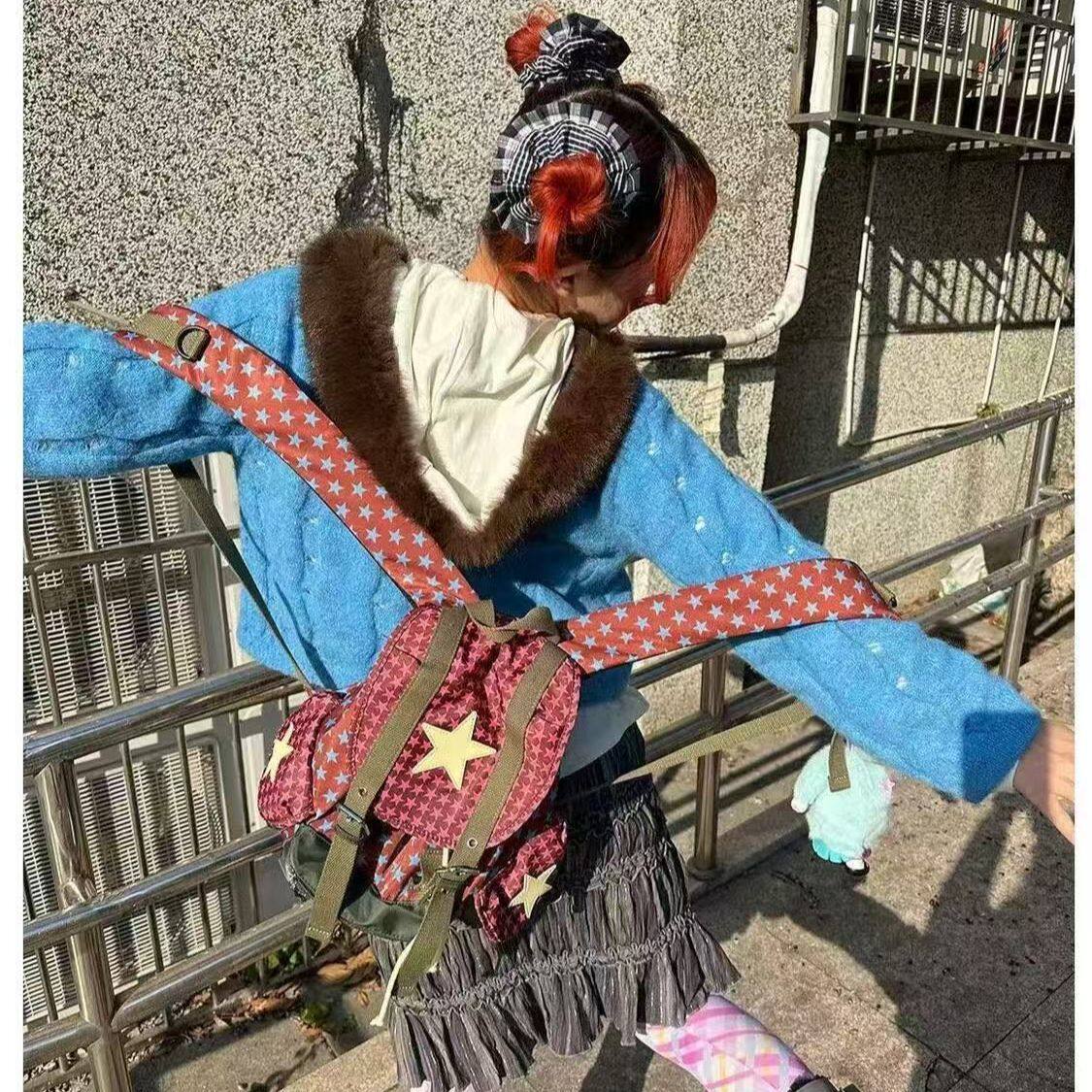 Escape Paradise Lovplayshop Lucky Star Series Patchwork Star Niche Design Practical Backpack