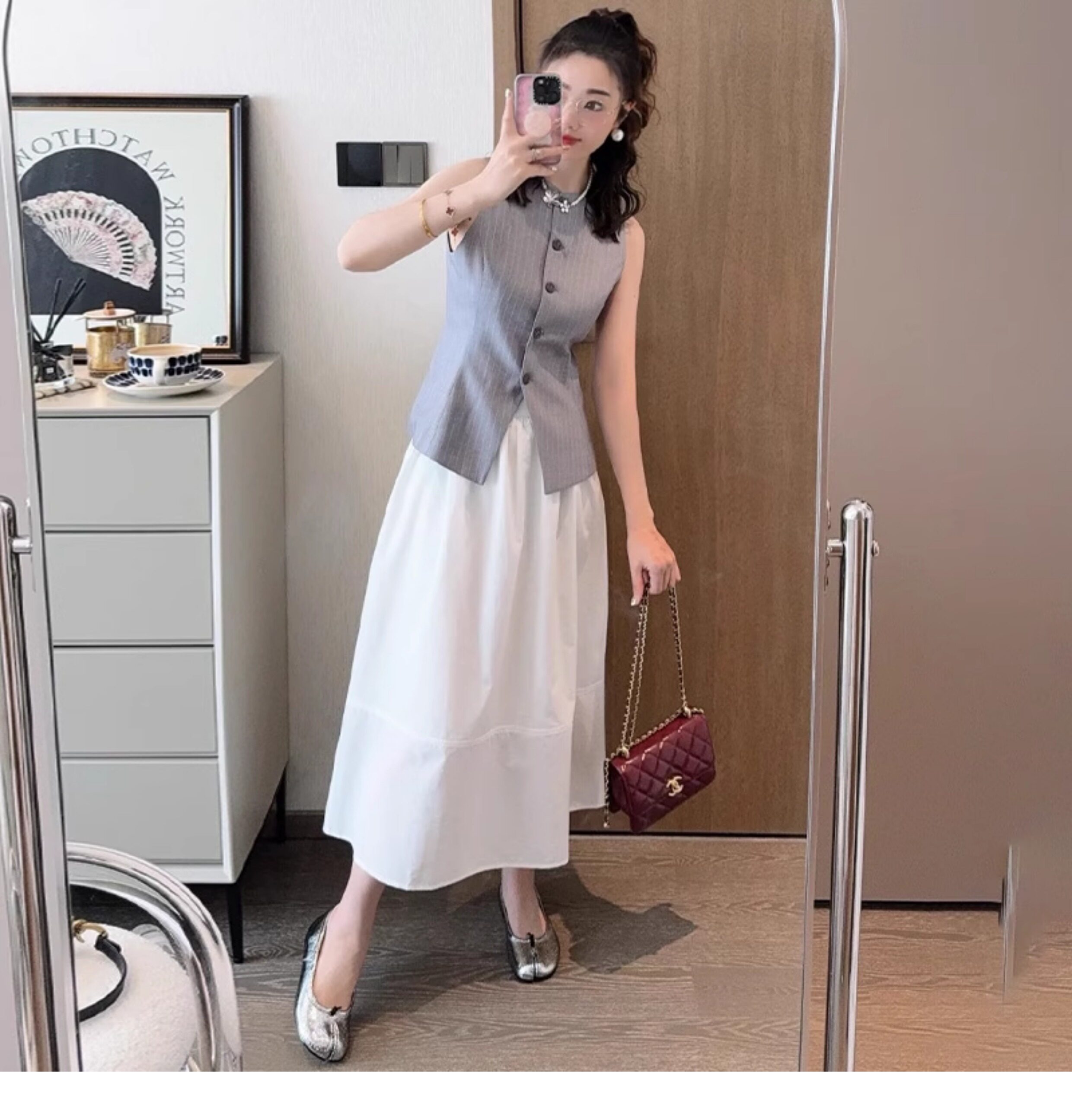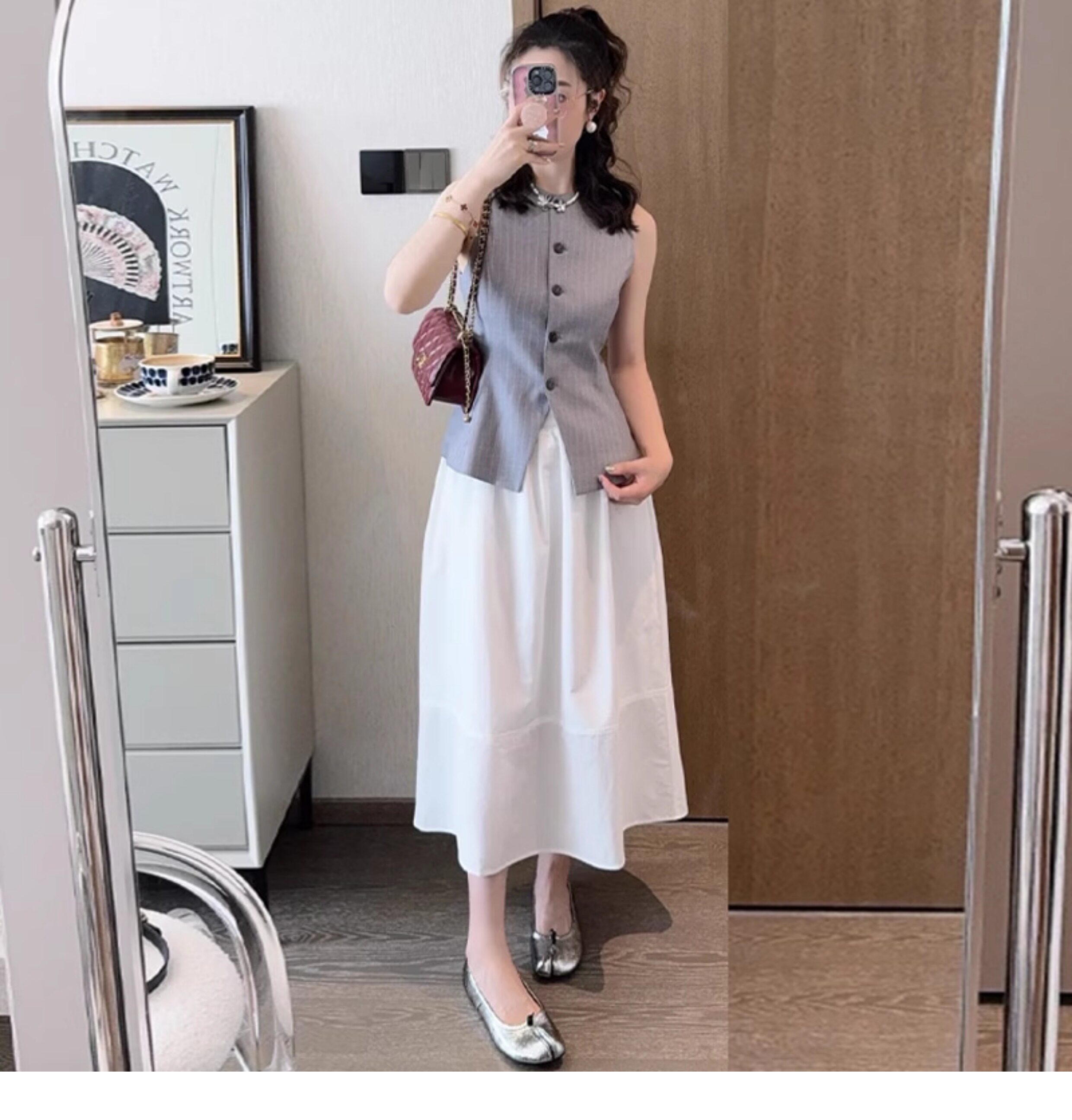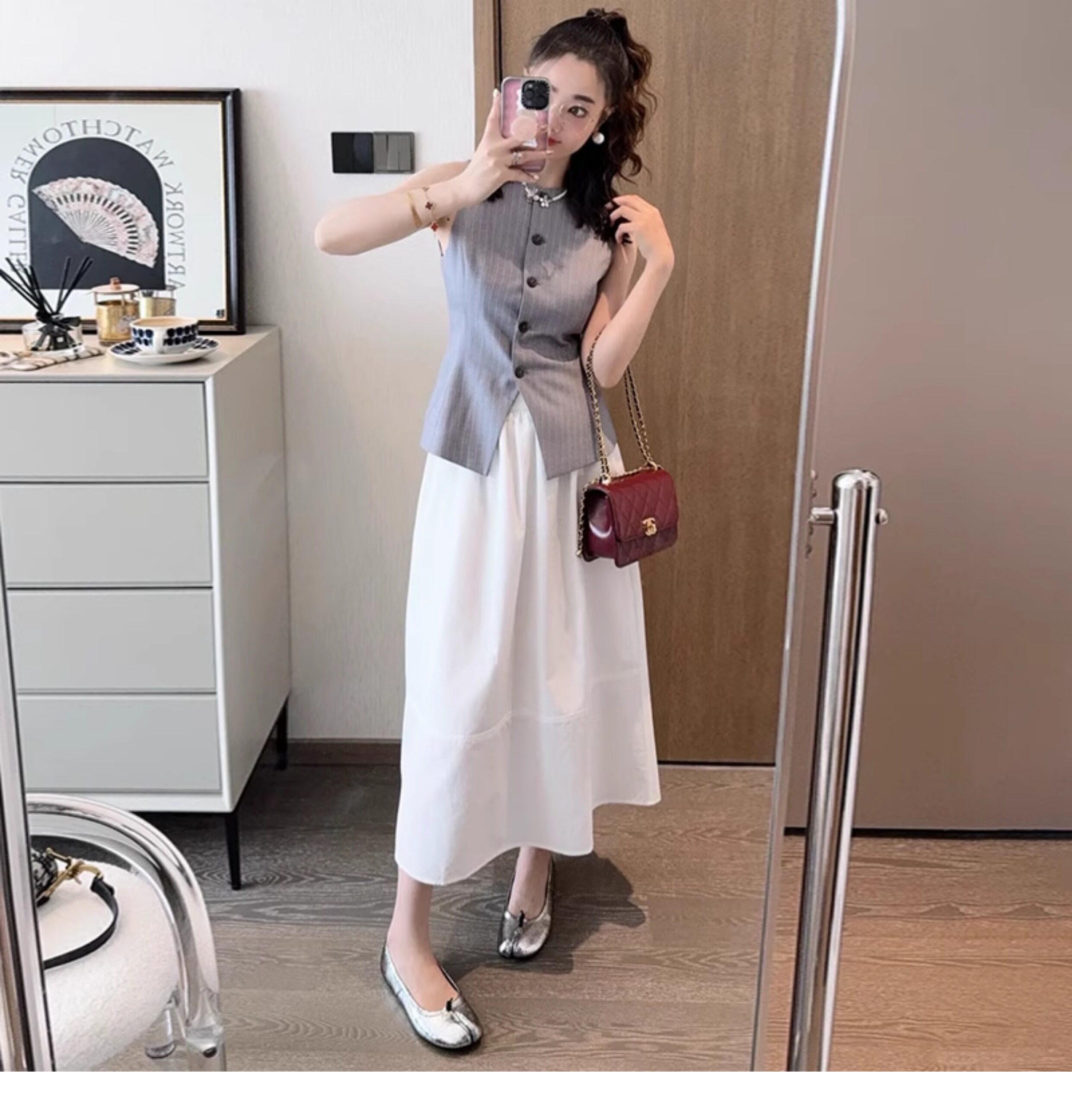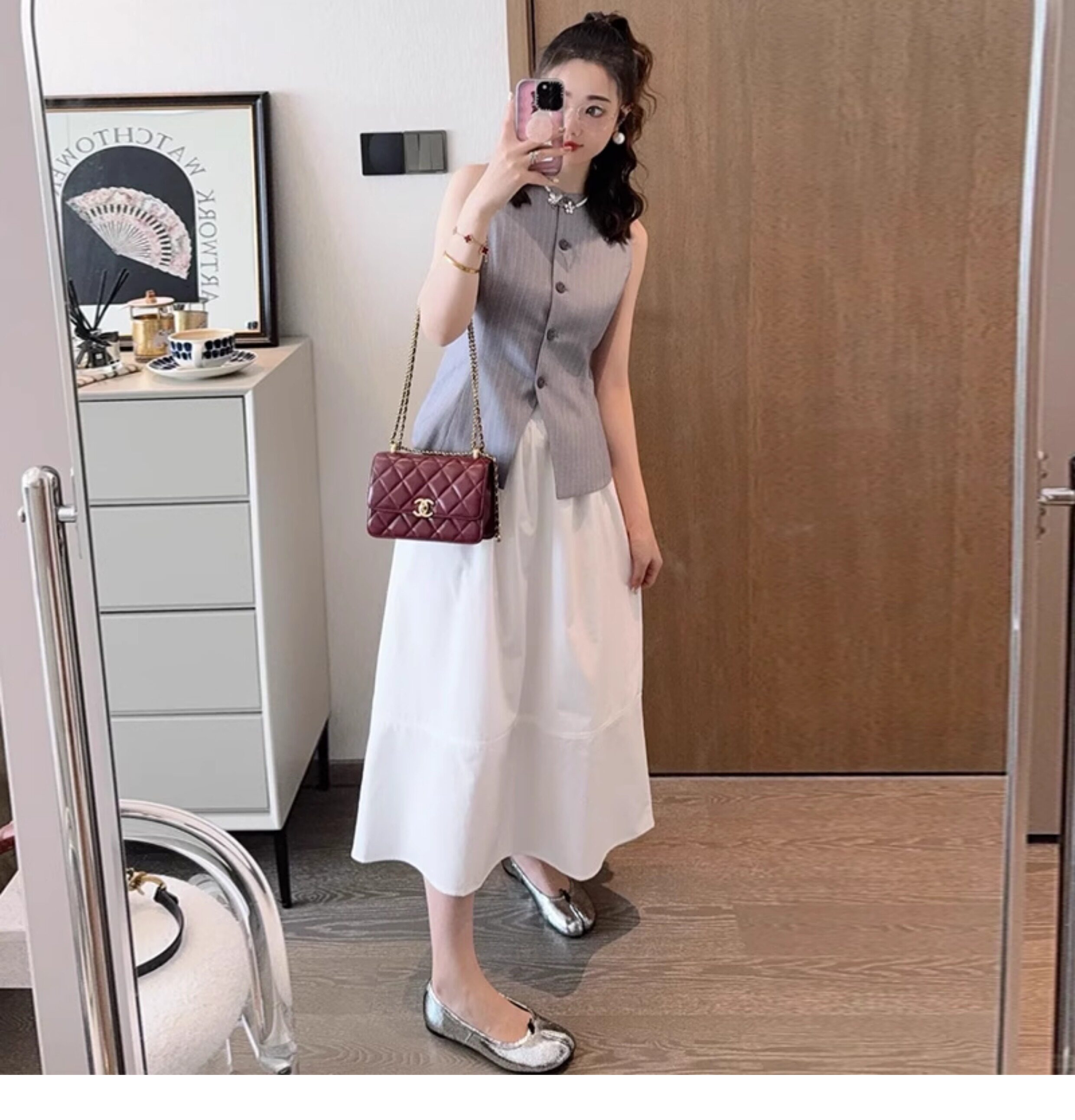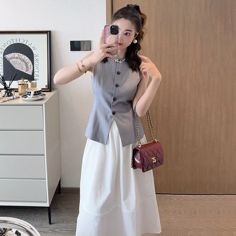 Summer Gray Vest for Petite Women 2025 Sleeveless Striped Design with a Sophisticated and Youthful Style Short Top