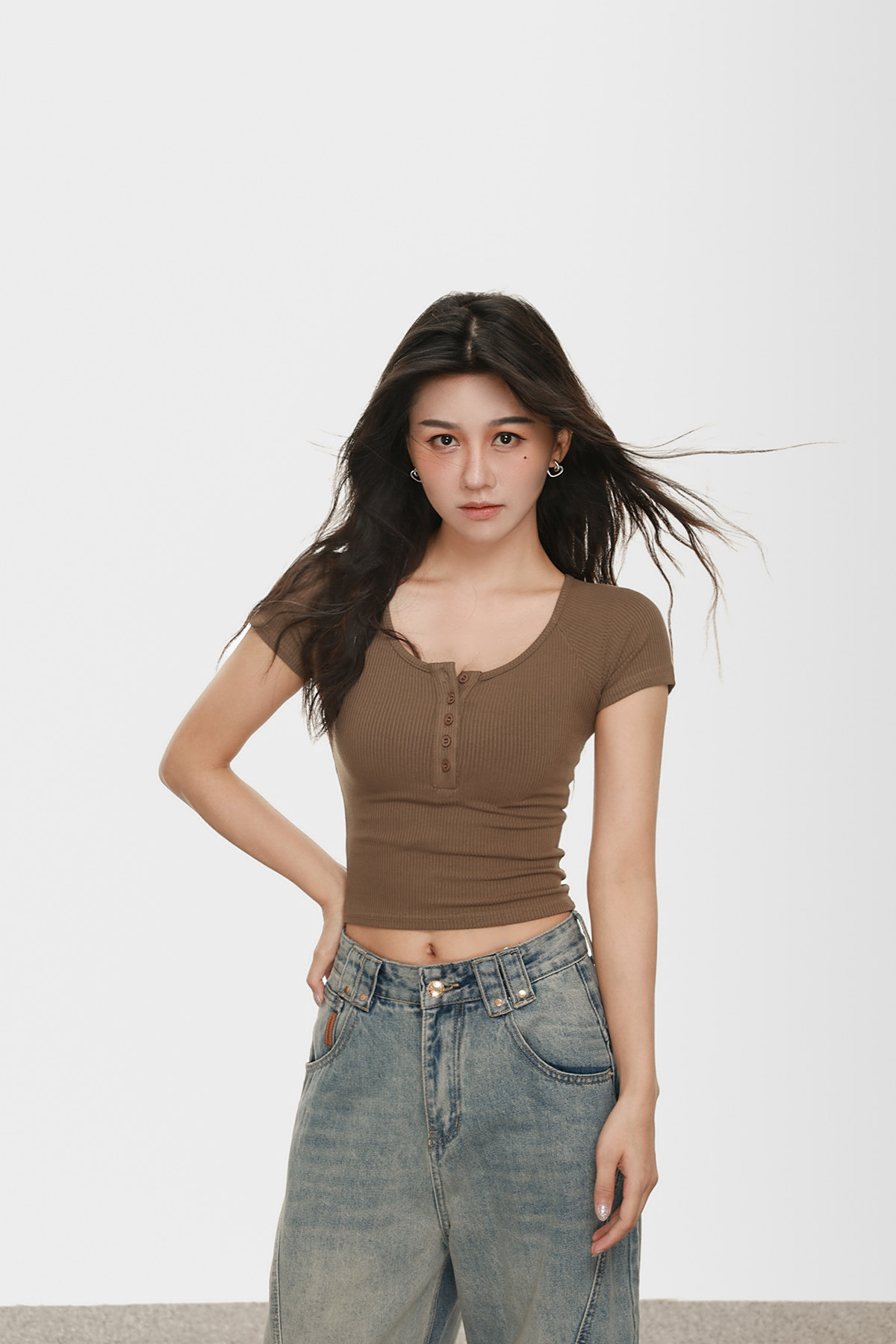Stylish Short Half-Open Collar Short-Sleeve T-Shirt for Women, Summer Single-Breasted Half-Open Collar Sexy Slim-Fit Tight Top