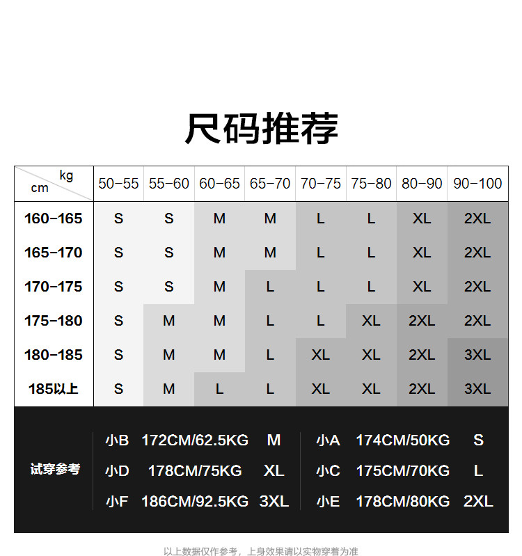 China (cm) 160-165/84-86 165-170 / 88-90 167-172 / 92-96 168-173 / 98-102 170-176 / 106-110