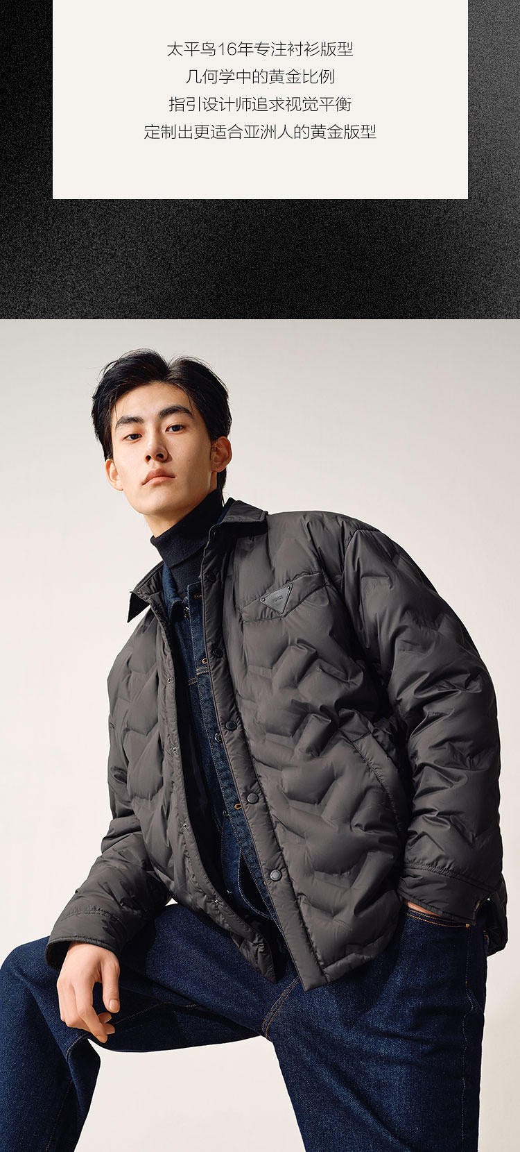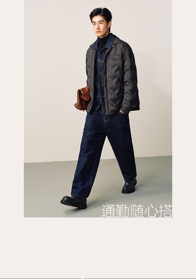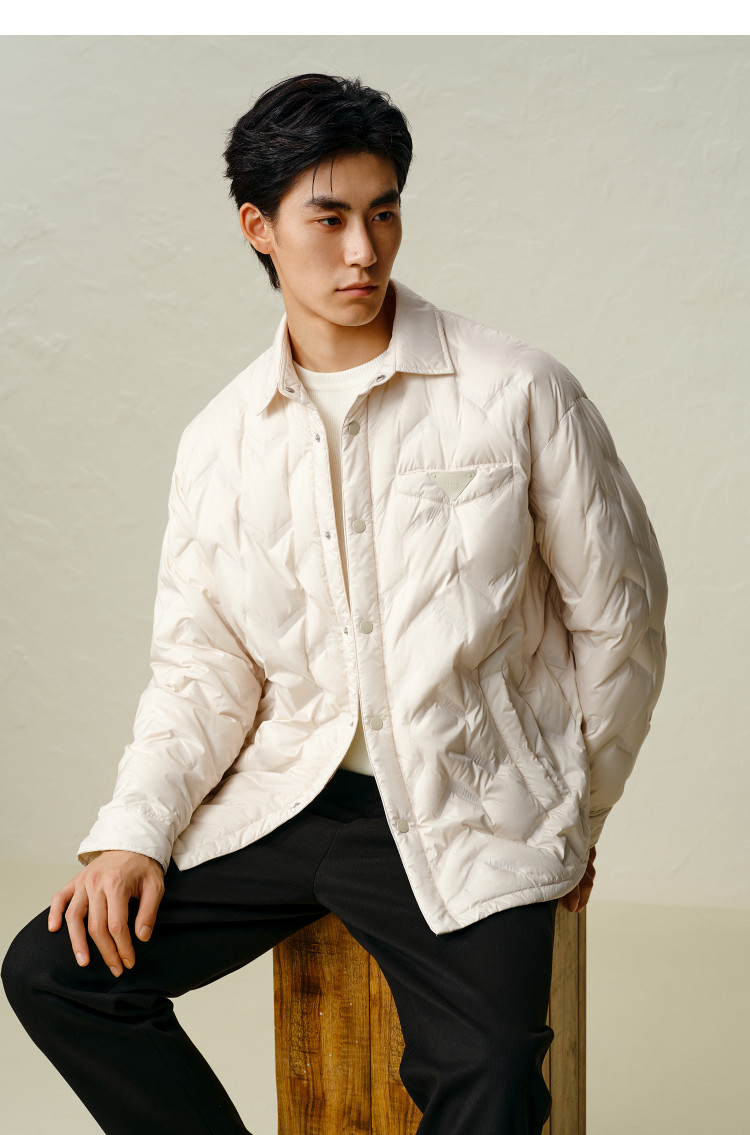 Peacebird Men's Lightweight down Jacket Men's Loose Winter New Style Shirt-Style Laminated Warm and Cold-Proof Casual Jacket