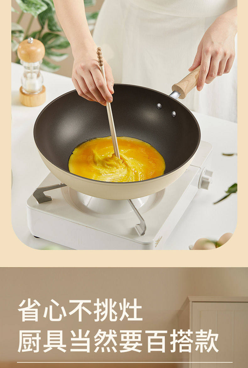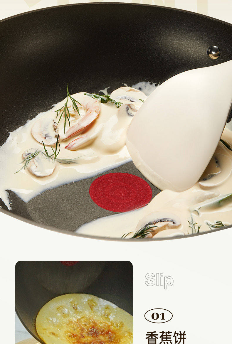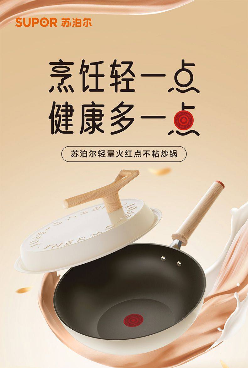 Supor Frying Pan with Red Dot Indicator, Non-Stick, Lightweight, Smokeless, Household Non-Stick Pan