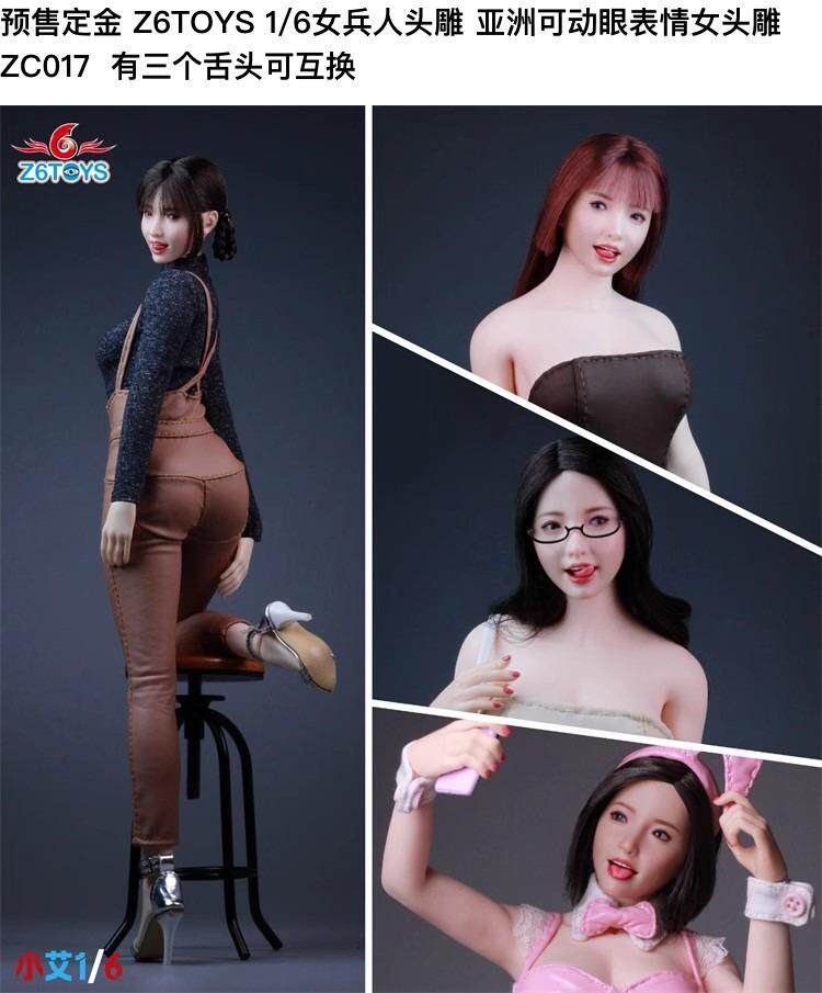 Z6Toys 1/6 Female Soldier Head Sculpt Asian Movable Eyes Expression Female Head Sculpt Zc017 in Stock