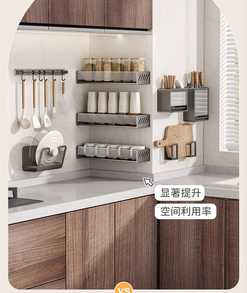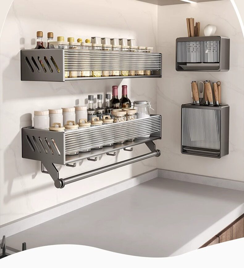 French Ziwoo Kitchen Storage Rack Punch-Free Seasoning Rack Knife Holder Supplies Multi-Functional Wall-Mounted Storage Rack