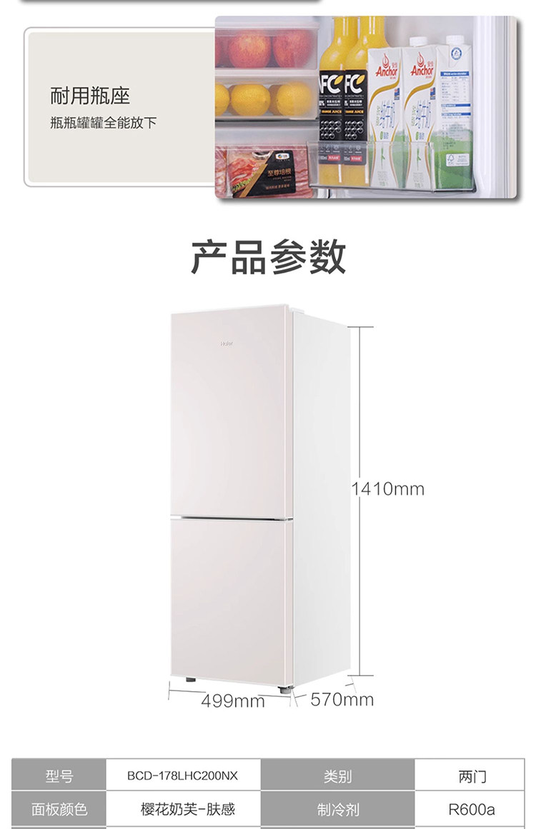 Haier Bcd-178Lhc200Nx Small Energy-Saving Dual-Door Household Refrigerator with Freezer and Cooler