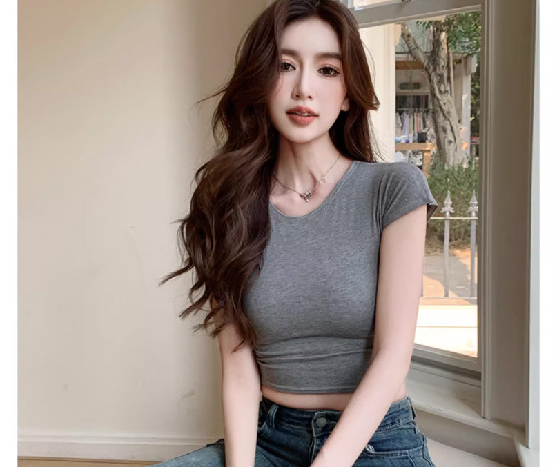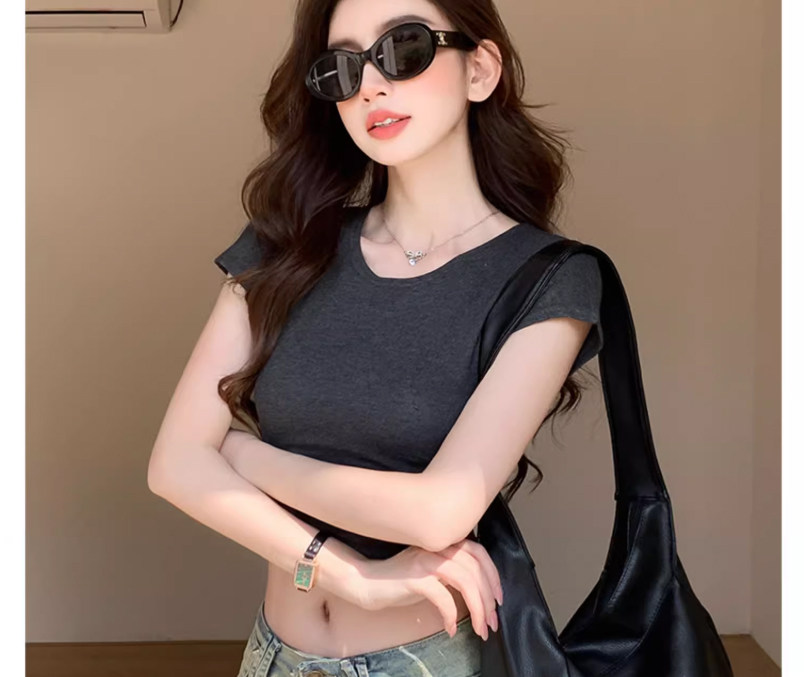 Unique and Beautiful Tight-Fitting Short-Sleeved Women's T-Shirt 2025 Summer New American Style Hot Girl High-Waisted Slimming Short Top Trendy