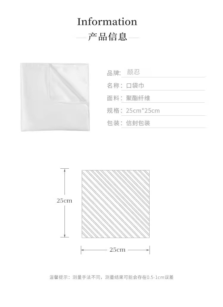 White pocket square men's shirt business formal wear handkerchief suit chest scarf solid color suit striped small square scarf silk scarf