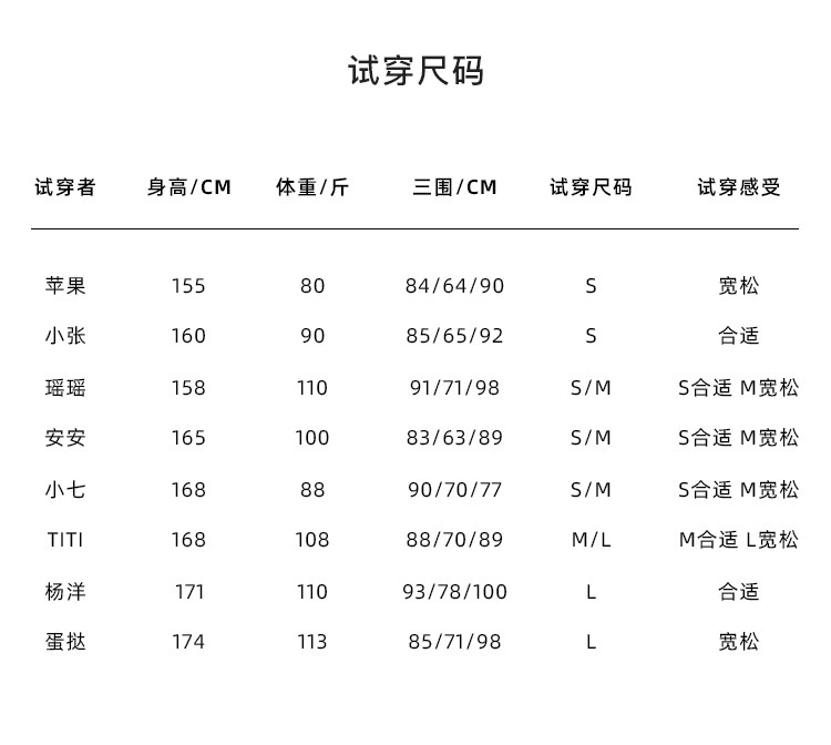 China (cm) 160-165/84-86 165-170 / 88-90 167-172 / 92-96 168-173 / 98-102 170-176 / 106-110