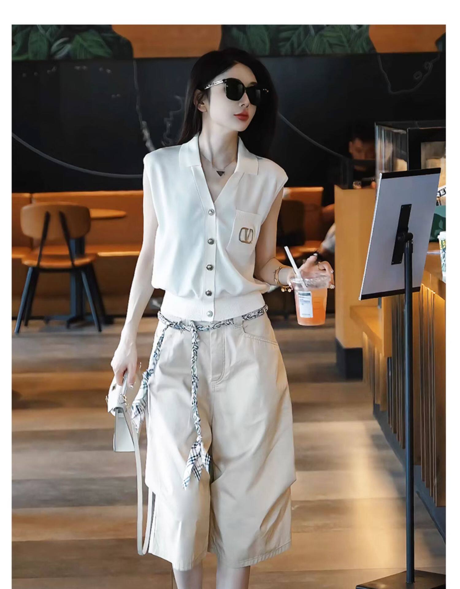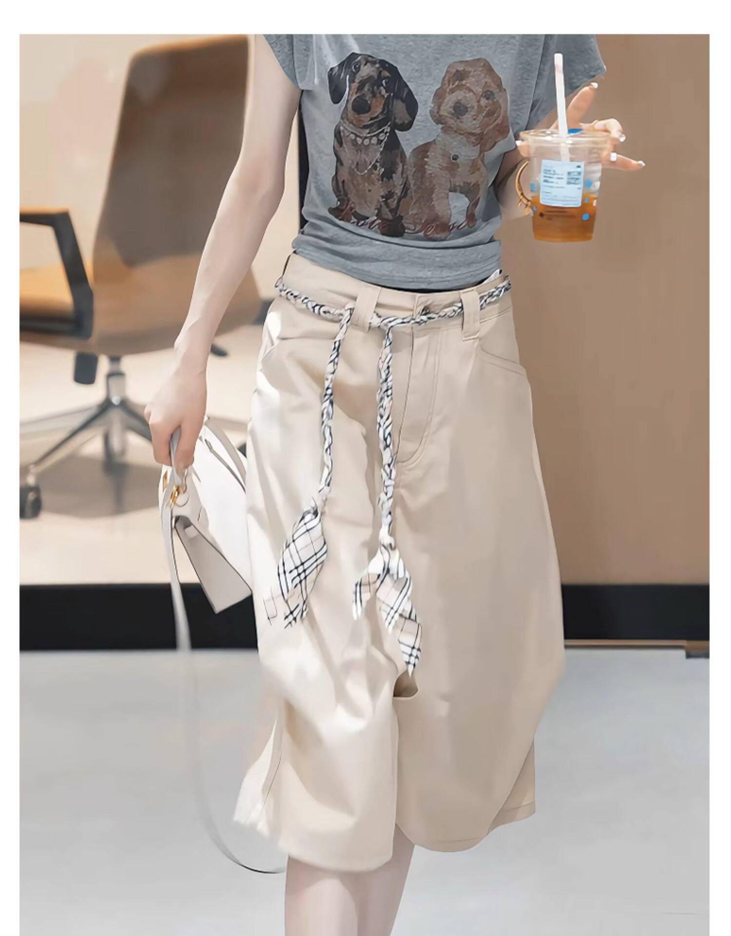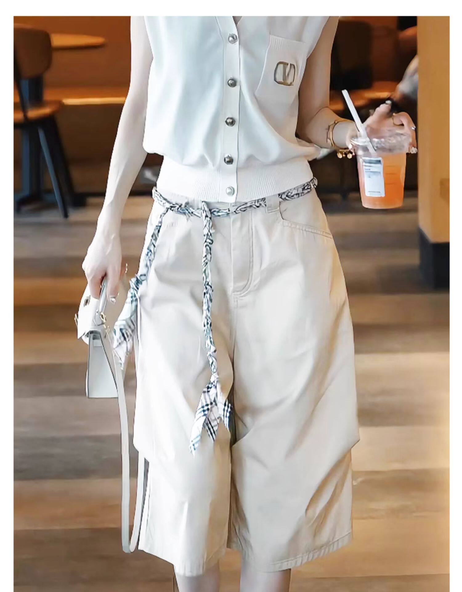 Mingming GUKKS tailoring workwear summer design straps high luxury casual style solid color mid-pants shorts for women