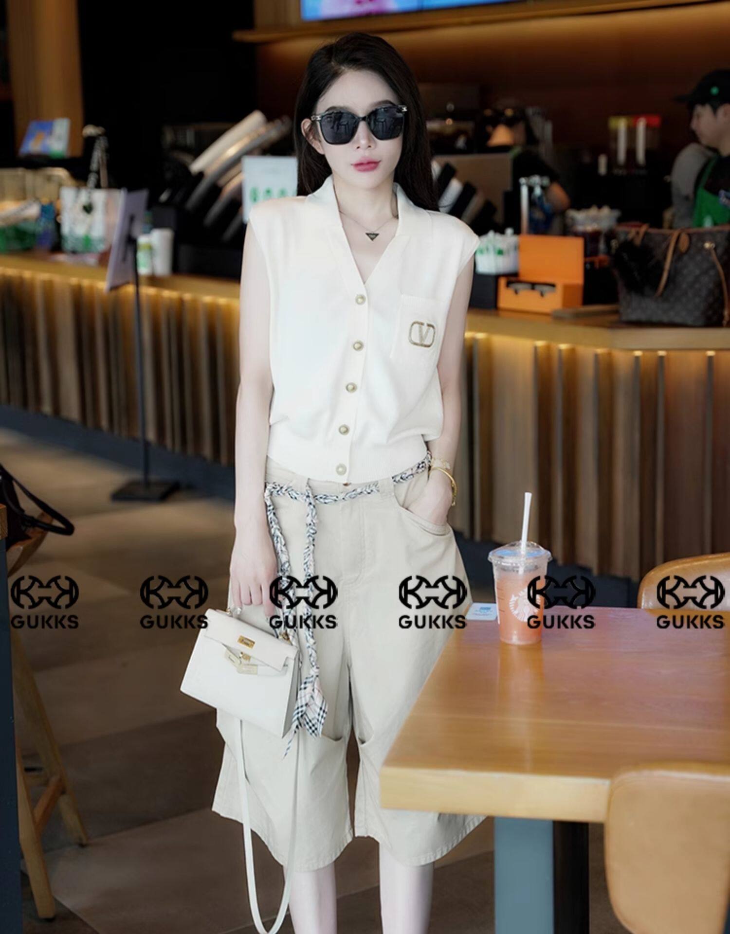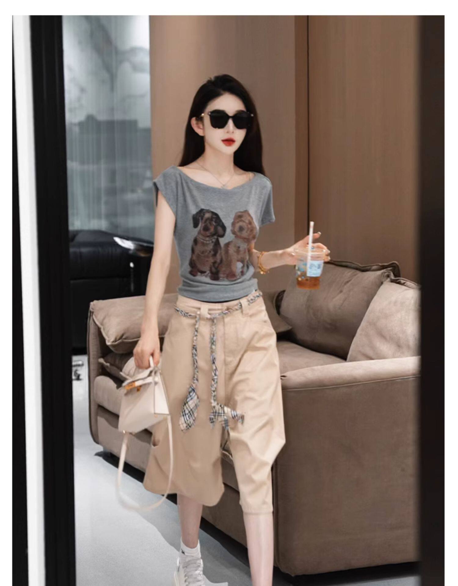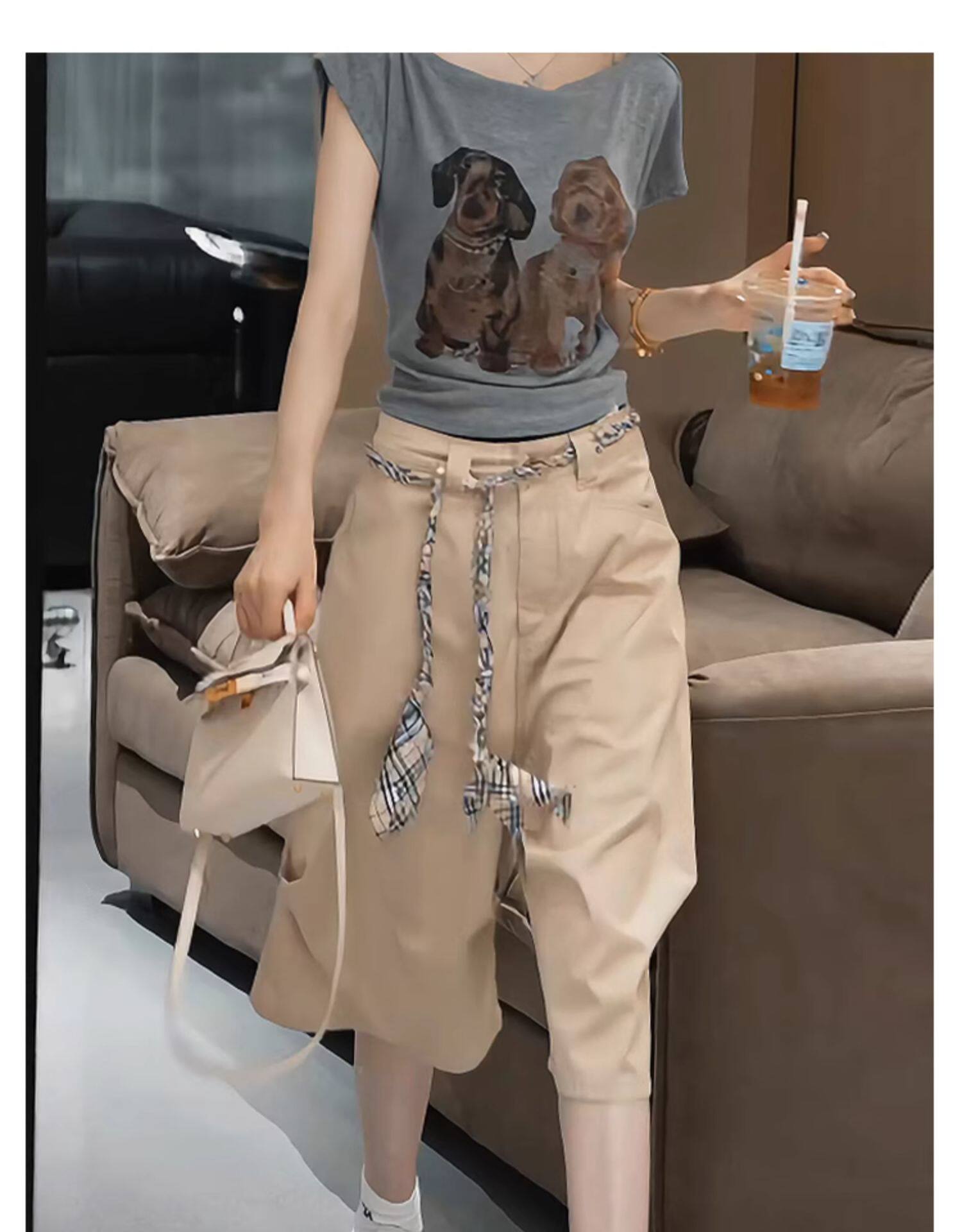 Mingming GUKKS tailoring workwear summer design straps high luxury casual style solid color mid-pants shorts for women