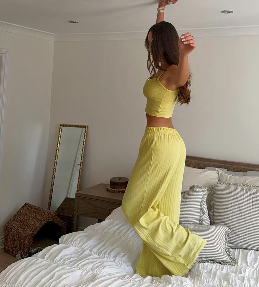 European and American New Fashion Solid Color Sexy Camisole and Pants Loungewear Set Vest and Pants Set