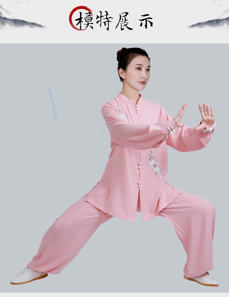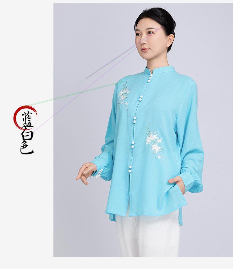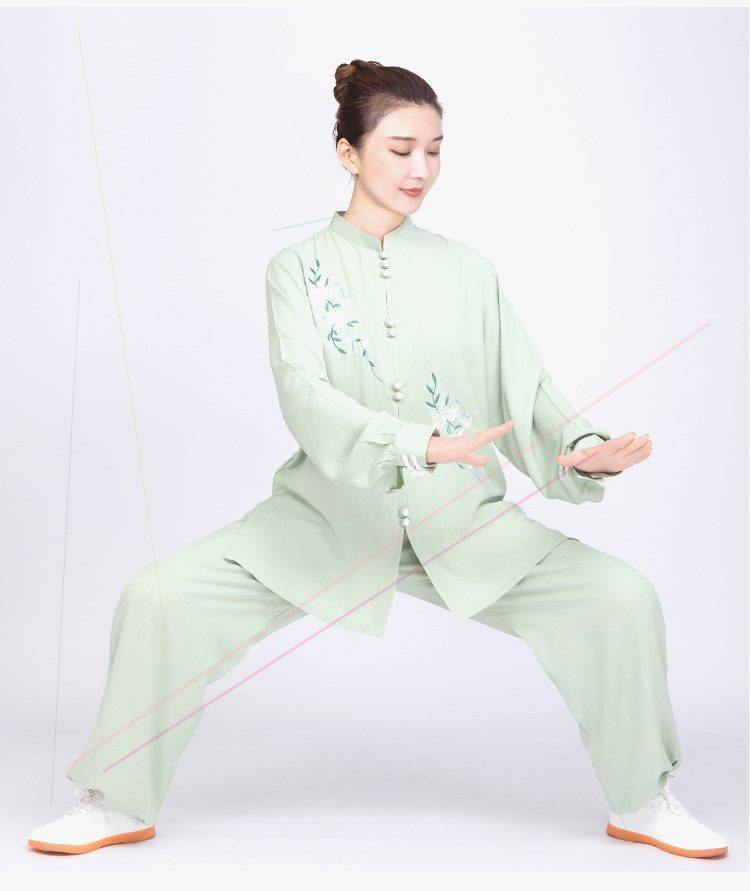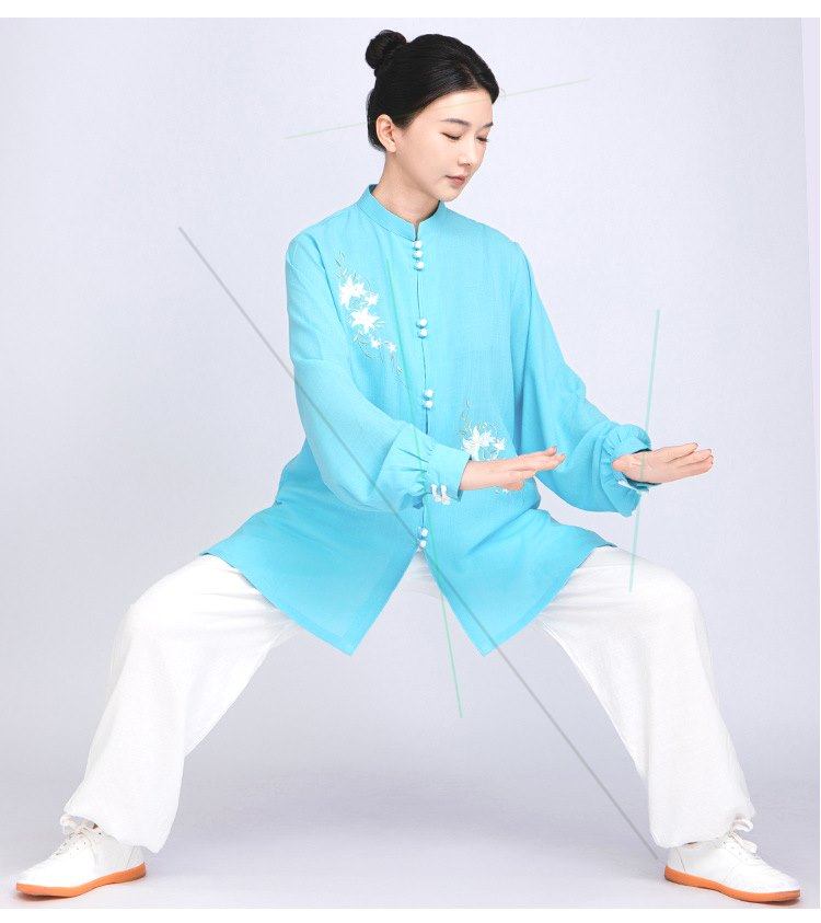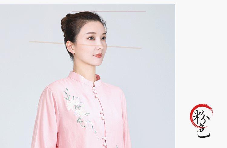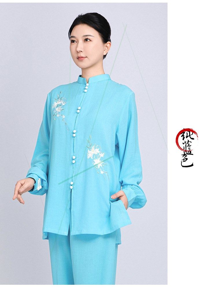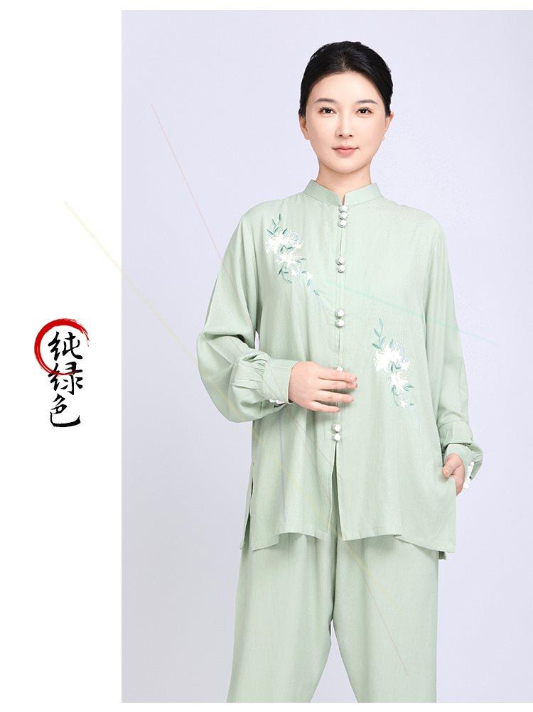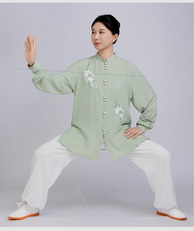 Spring and Autumn Eight-Duan Brocade Tai Chi Suit for Women Embroidered Elastic Cotton Mid-Length Tai Chi Training Clothing for Young, Middle-aged and Elderly People