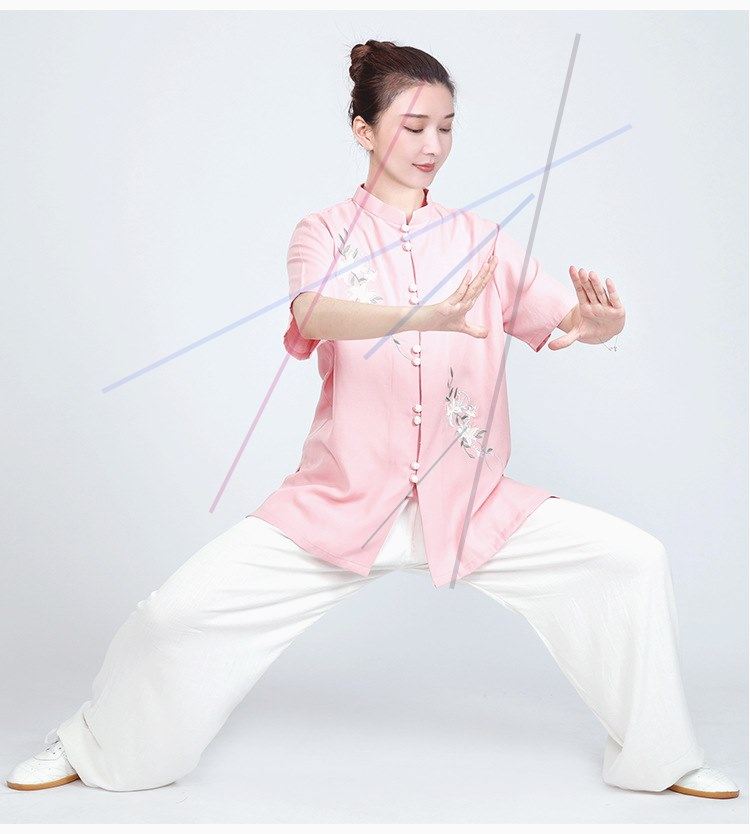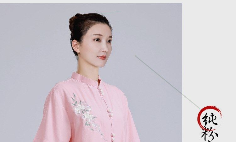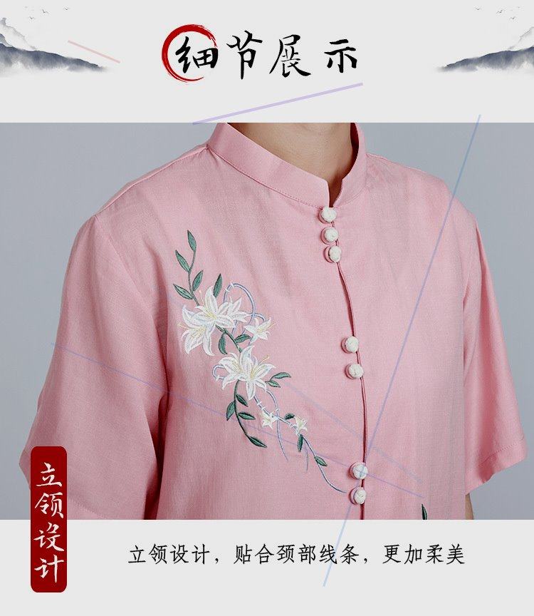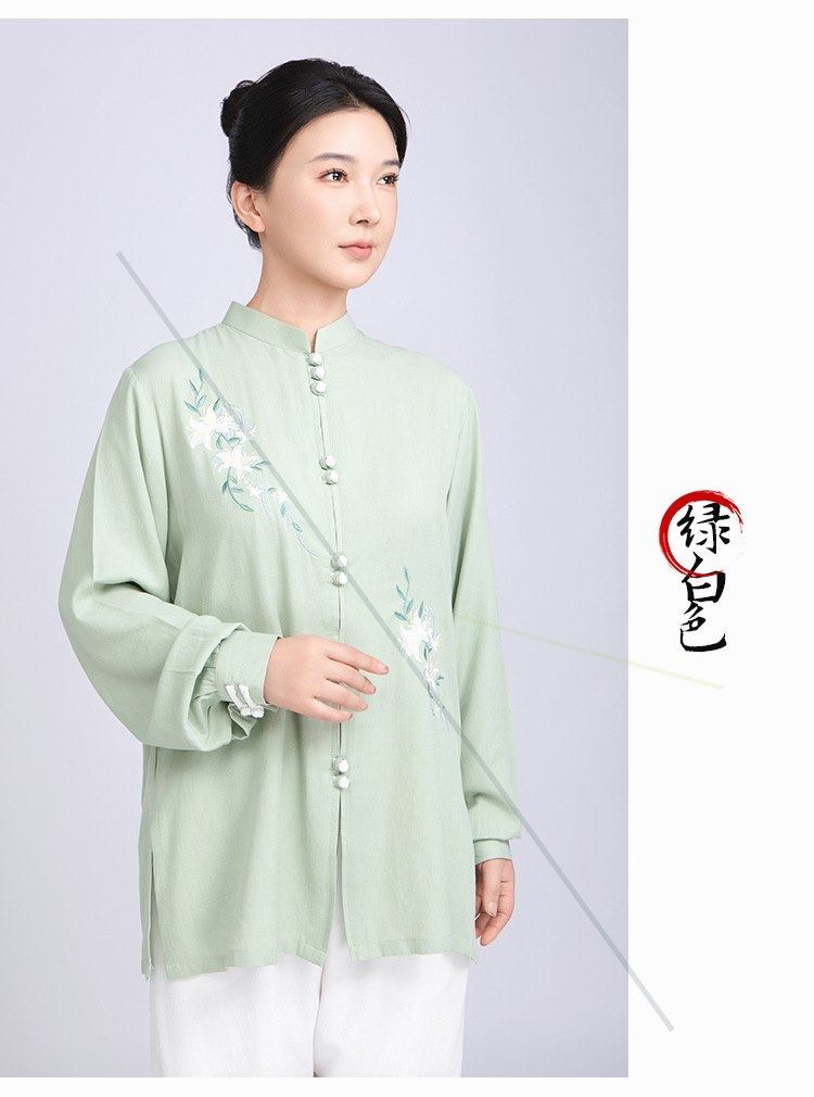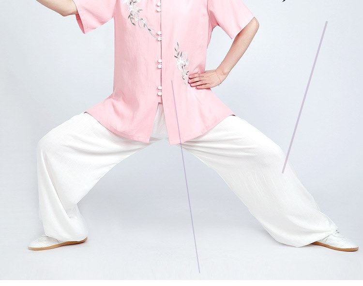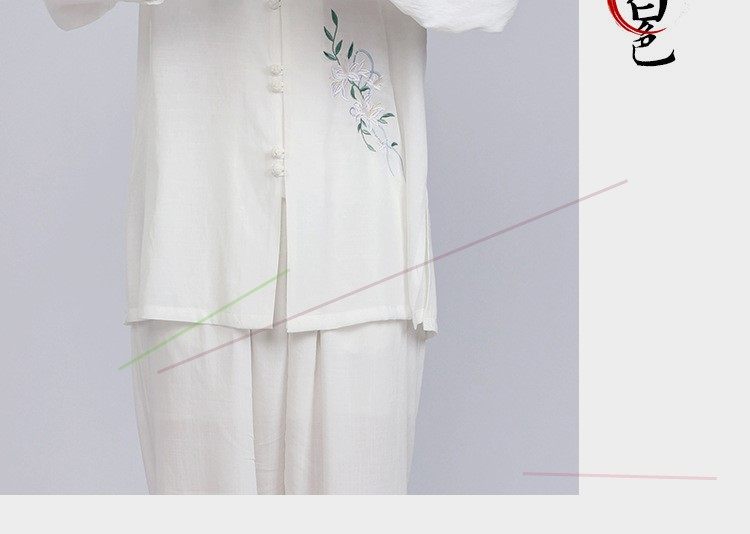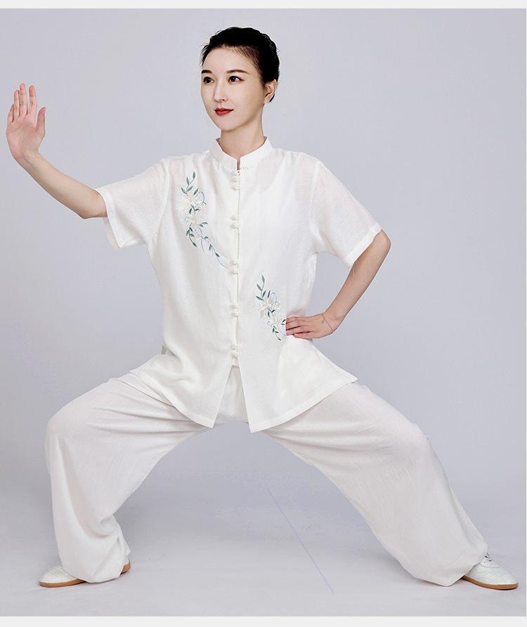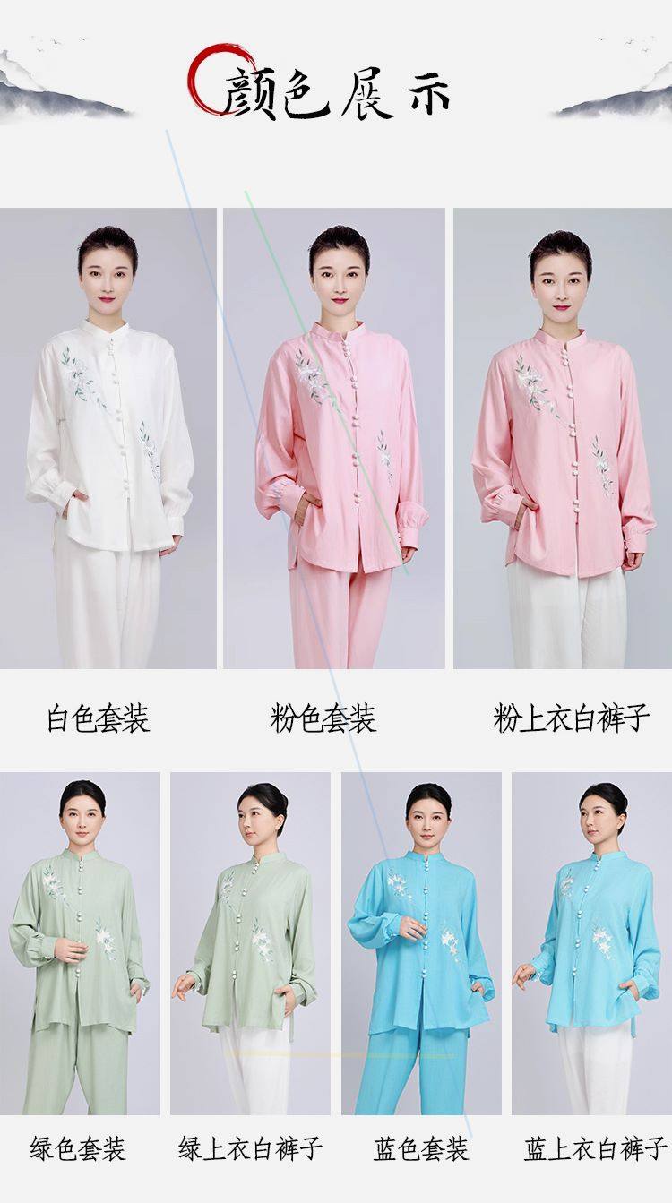 Spring and Autumn Eight-Duan Brocade Tai Chi Suit for Women Embroidered Elastic Cotton Mid-Length Tai Chi Training Clothing for Young, Middle-aged and Elderly People