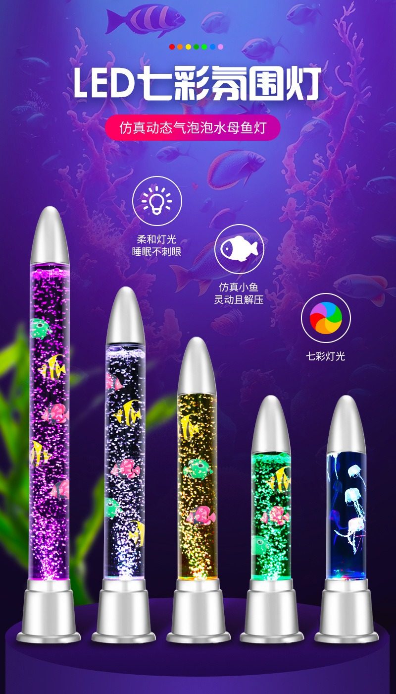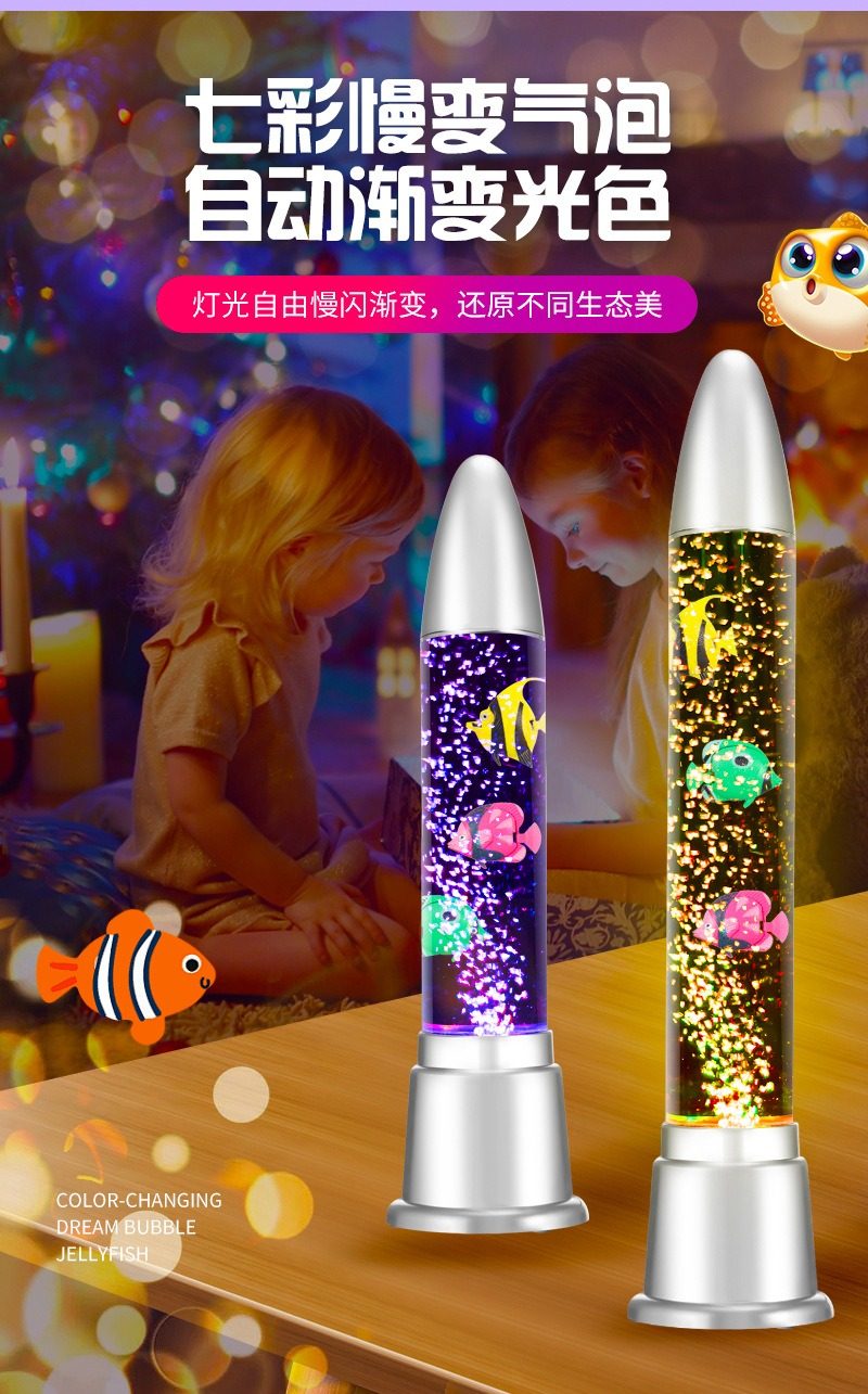 Led Water Column Bubble Fish Lamp, Colorful Electronic Fish Tank, Simulated Jellyfish Lamp, Bedroom Decoration Atmosphere Table Lamp, Night Light