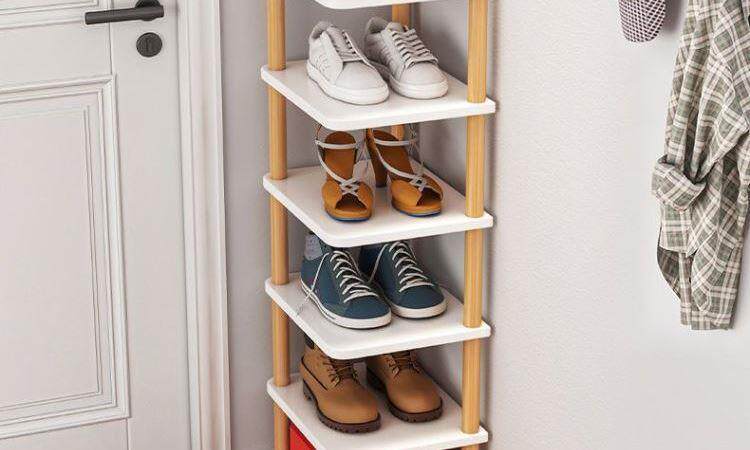 Shoe rack single-row shelf household simple three-dimensional corner triangular doorway extremely narrow corner gap space-saving corner