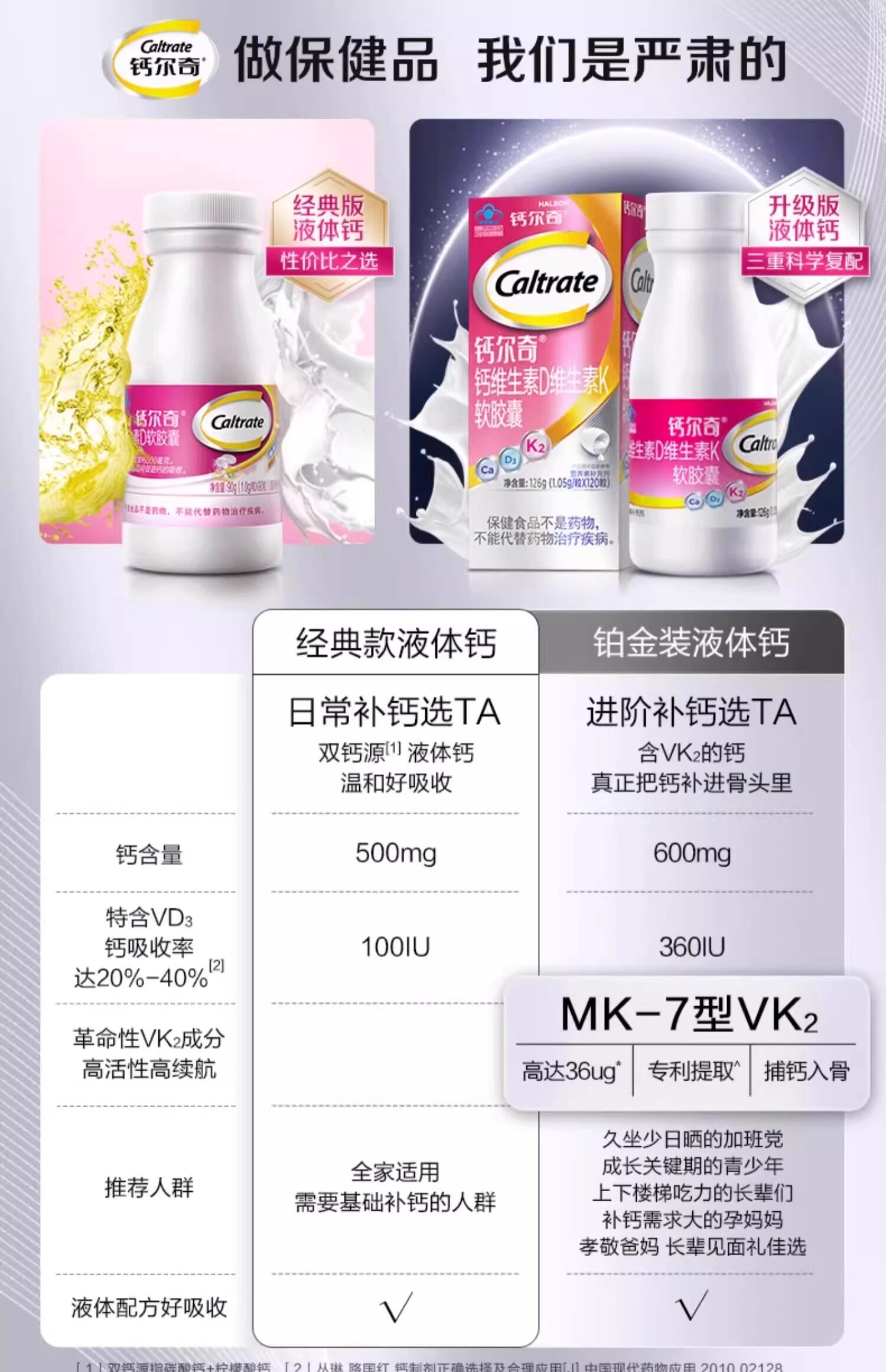 Calcium Platinum Liquid Calcium Vitamin Dk Soft Capsules Genuine Official Calcium Supplement for Middle-Aged and Elderly Pregnant Women as a Gift