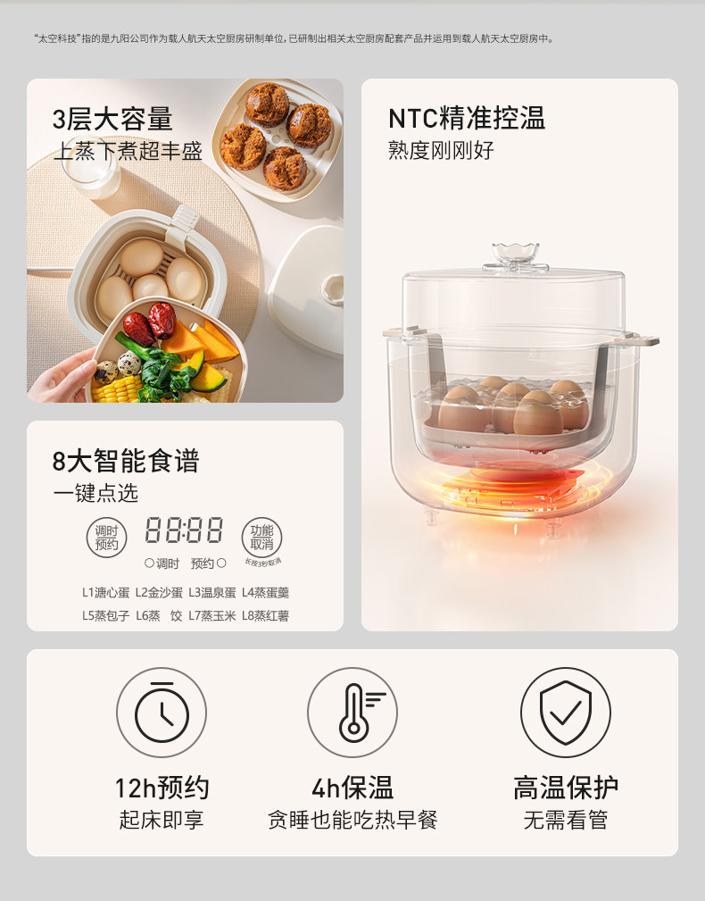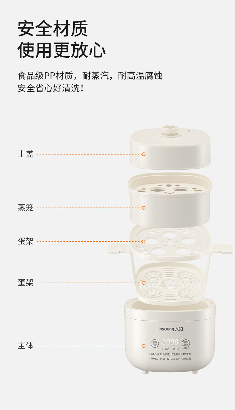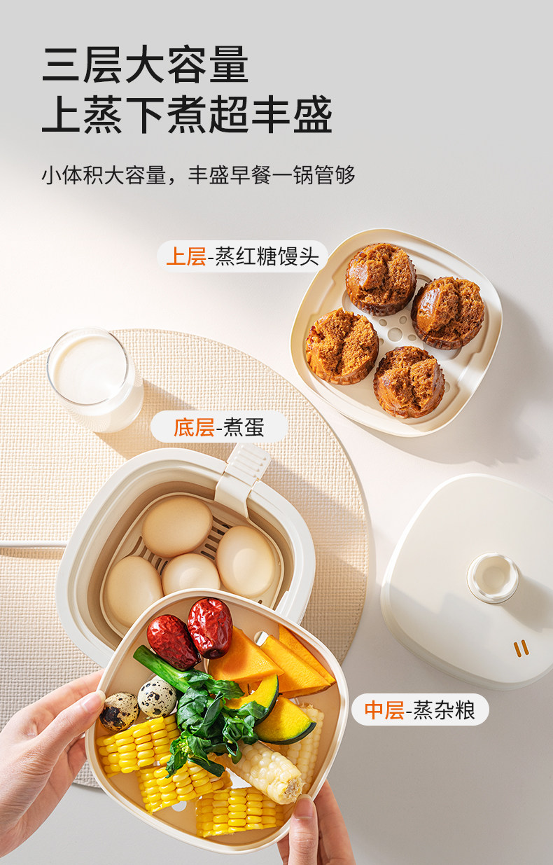 Joyoung electric steamer 2026 new household small egg cooker three-layer multi-function steamer breakfast steamed egg artifact