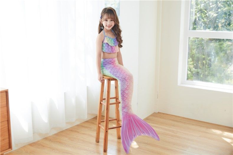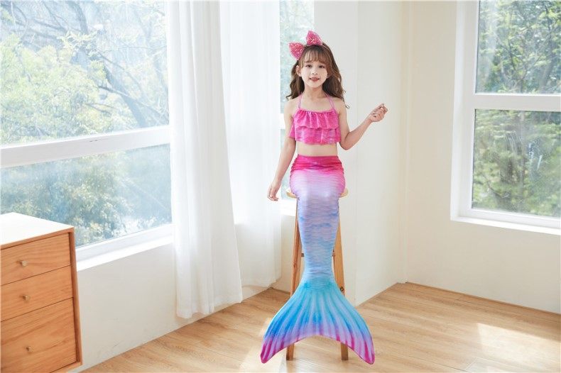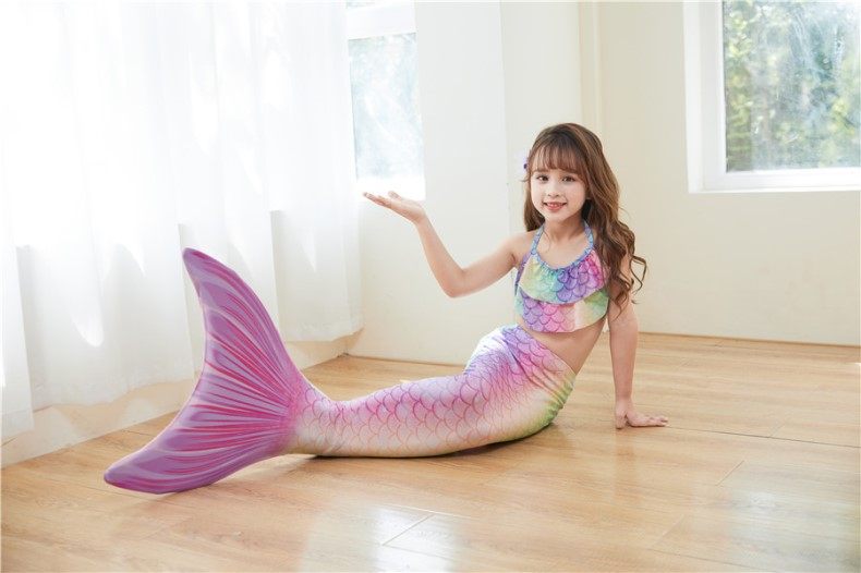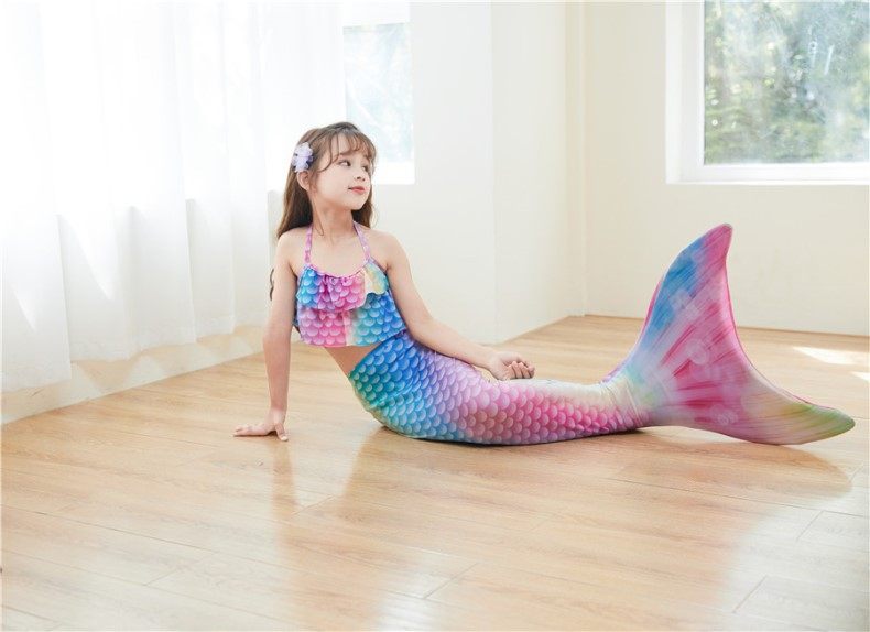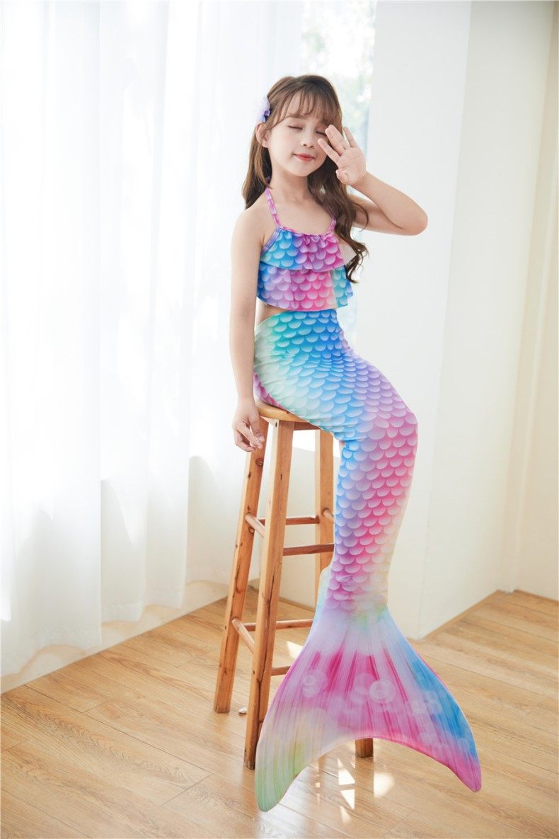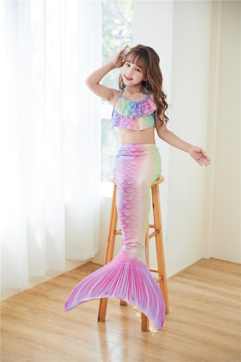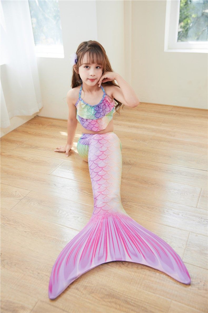 Children's Mermaid Tail Swimsuit Summer Three-Piece Set for Girls, Princess Dress Bikini, Split Hot Spring Swimwear