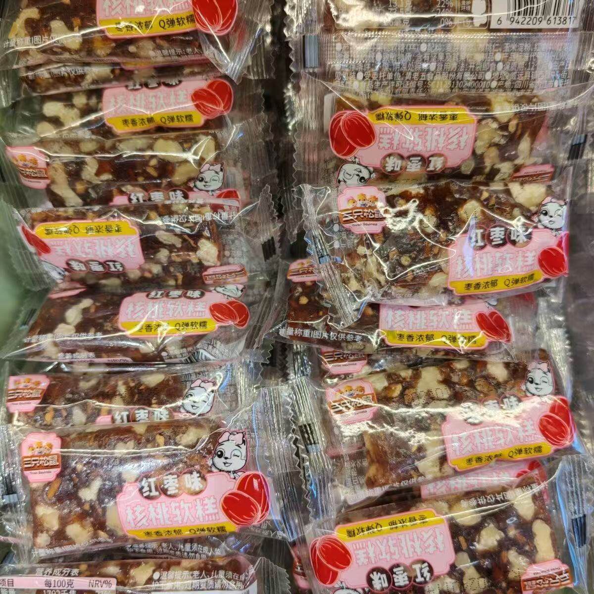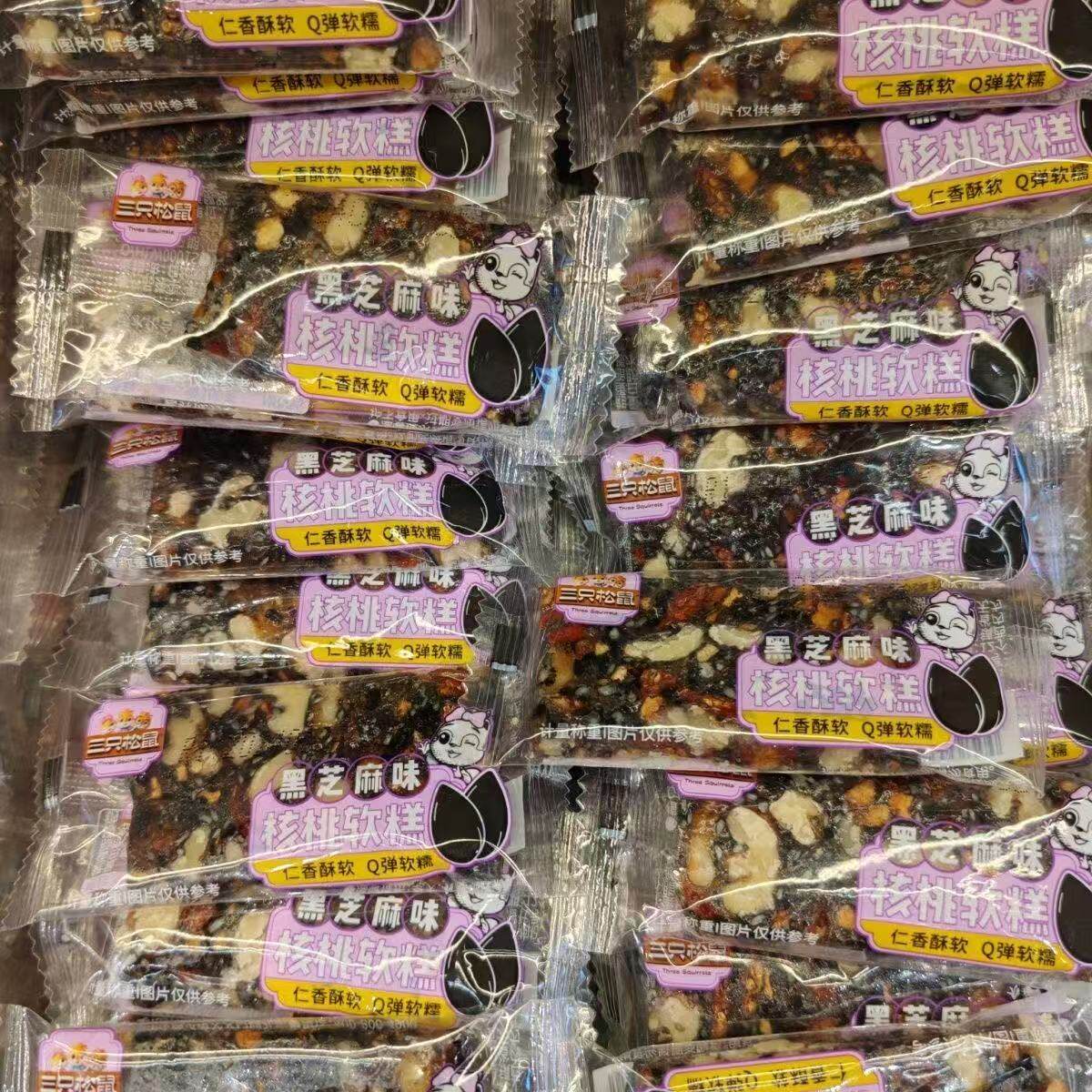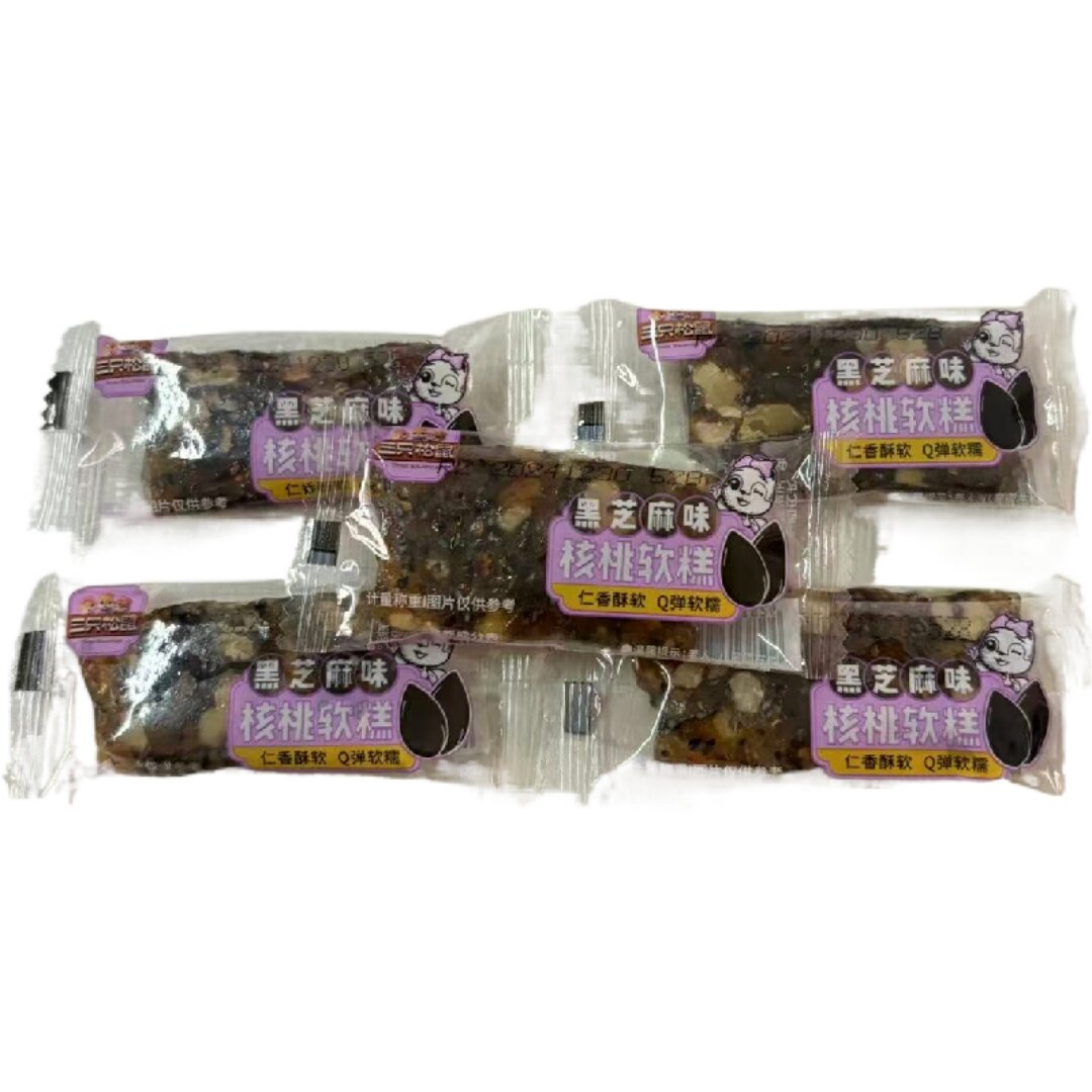 [5 Bags] Three Squirrels Walnut Soft Cake Black Sesame Flavor Red Date Flavor Q-Bomb Soft Waxy Casual Office Snacks