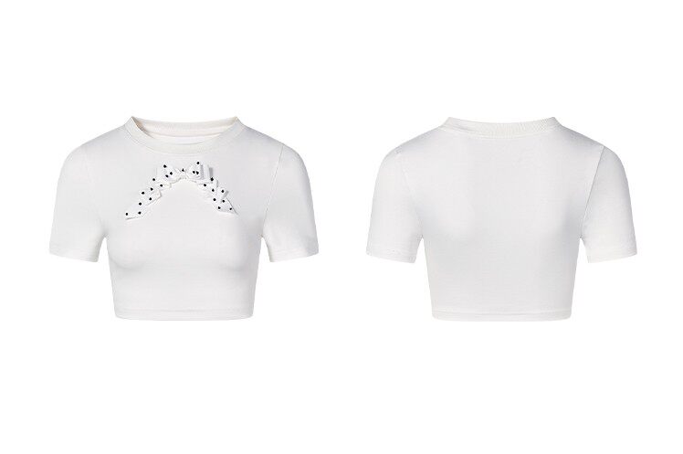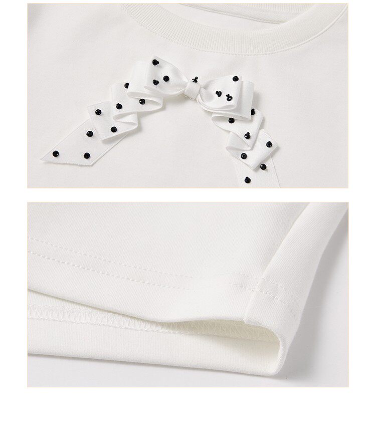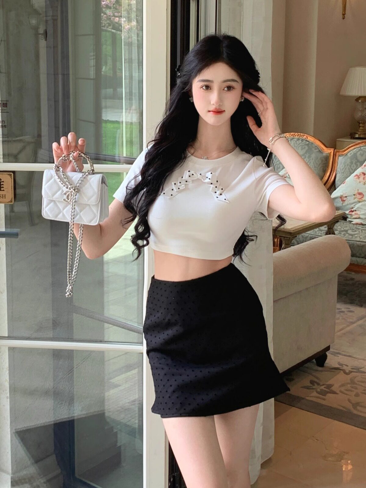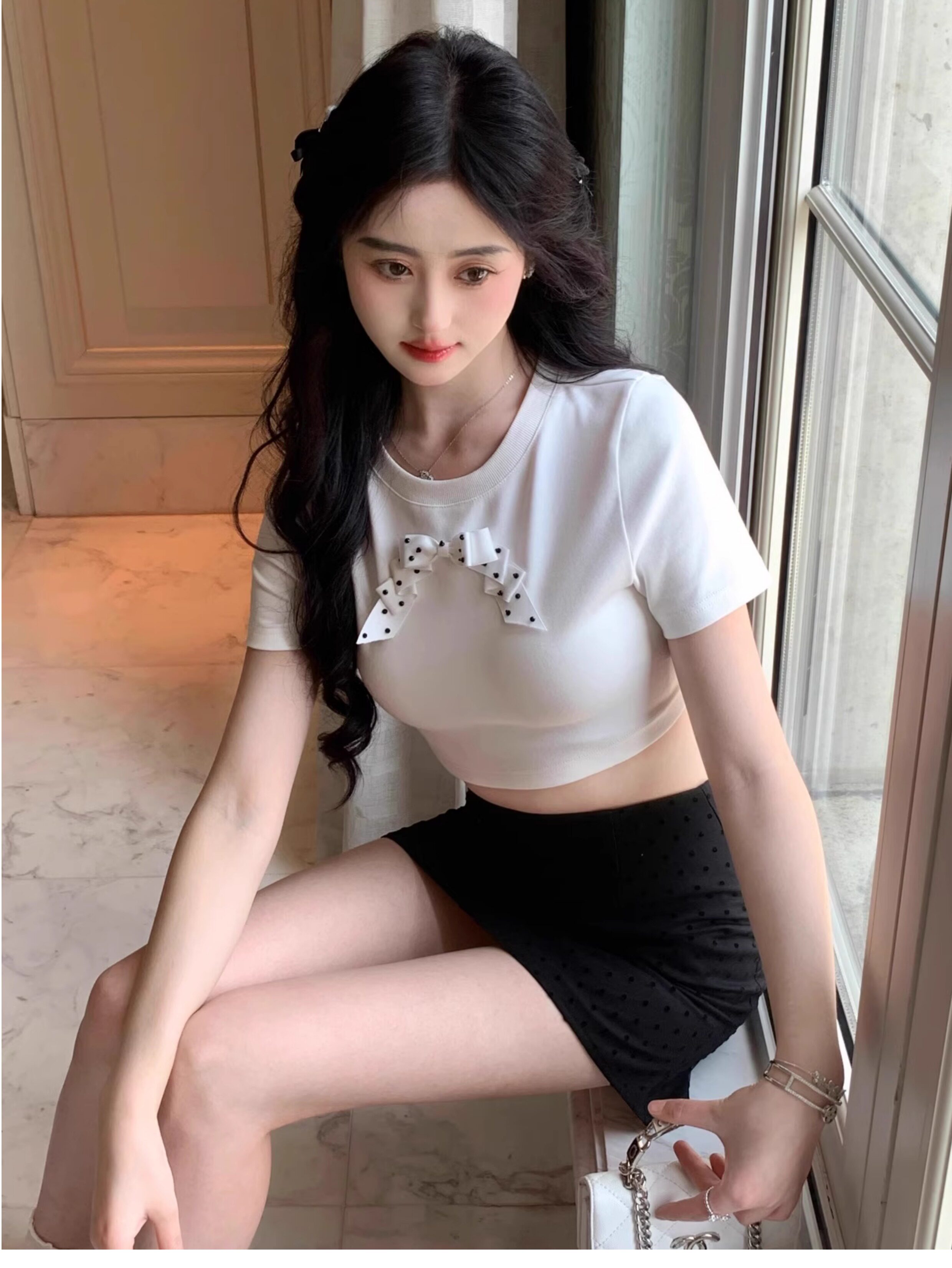 Hollin Short-Sleeved Cotton T-Shirt for Women Summer 2025 New Style Bow Fashionable Breast-Revealing Waist Versatile Short Top