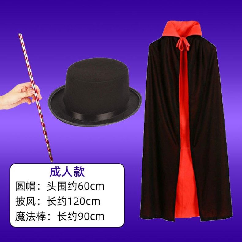 Sort by color Small size round hat + cloak + magic wand,Small size crown + mesh cloak + fairy wand,Small size wizard hat + cloak + magic wand,Adult round hat + cloak + magic wand