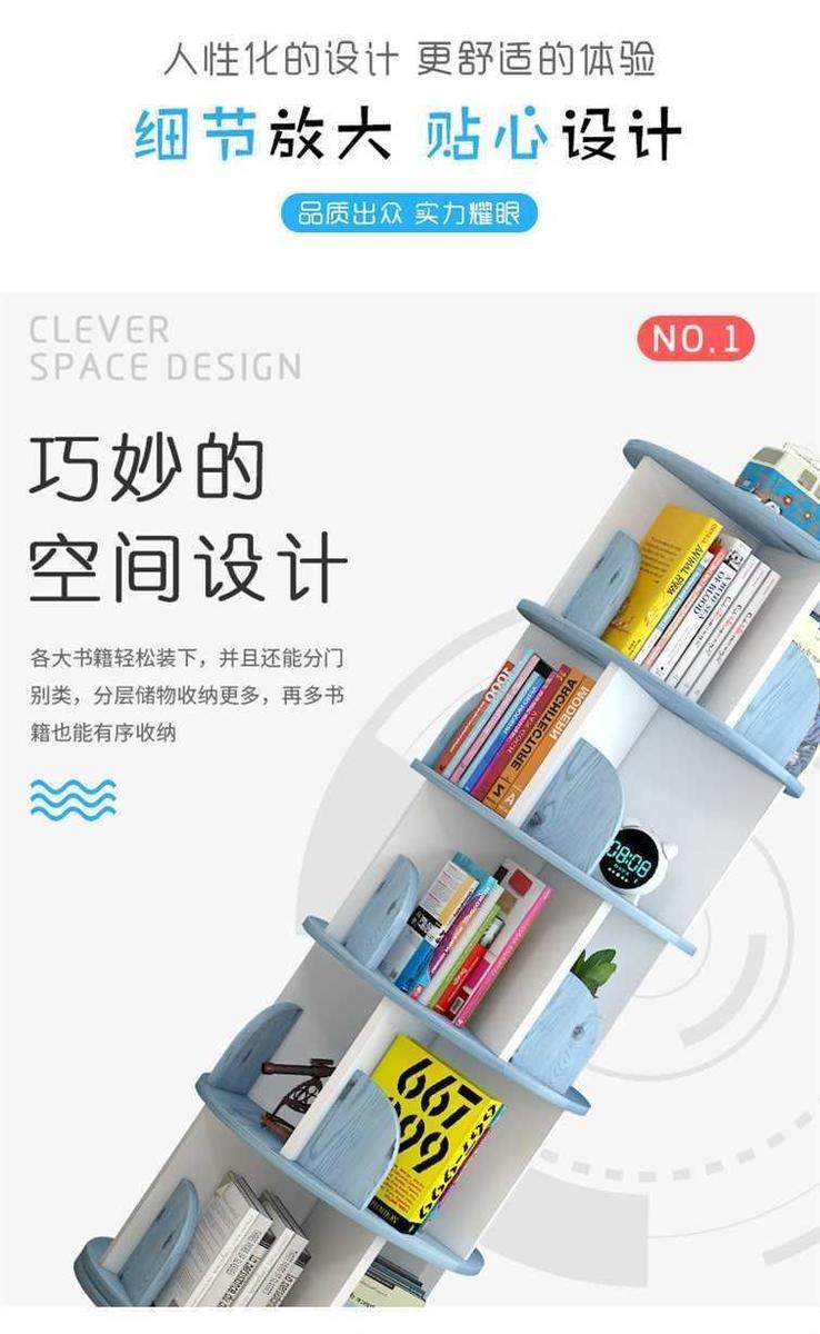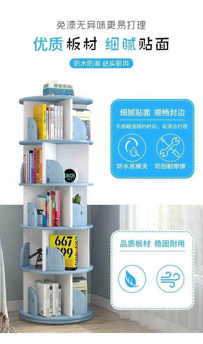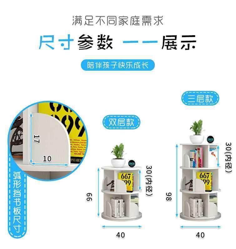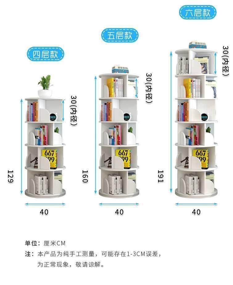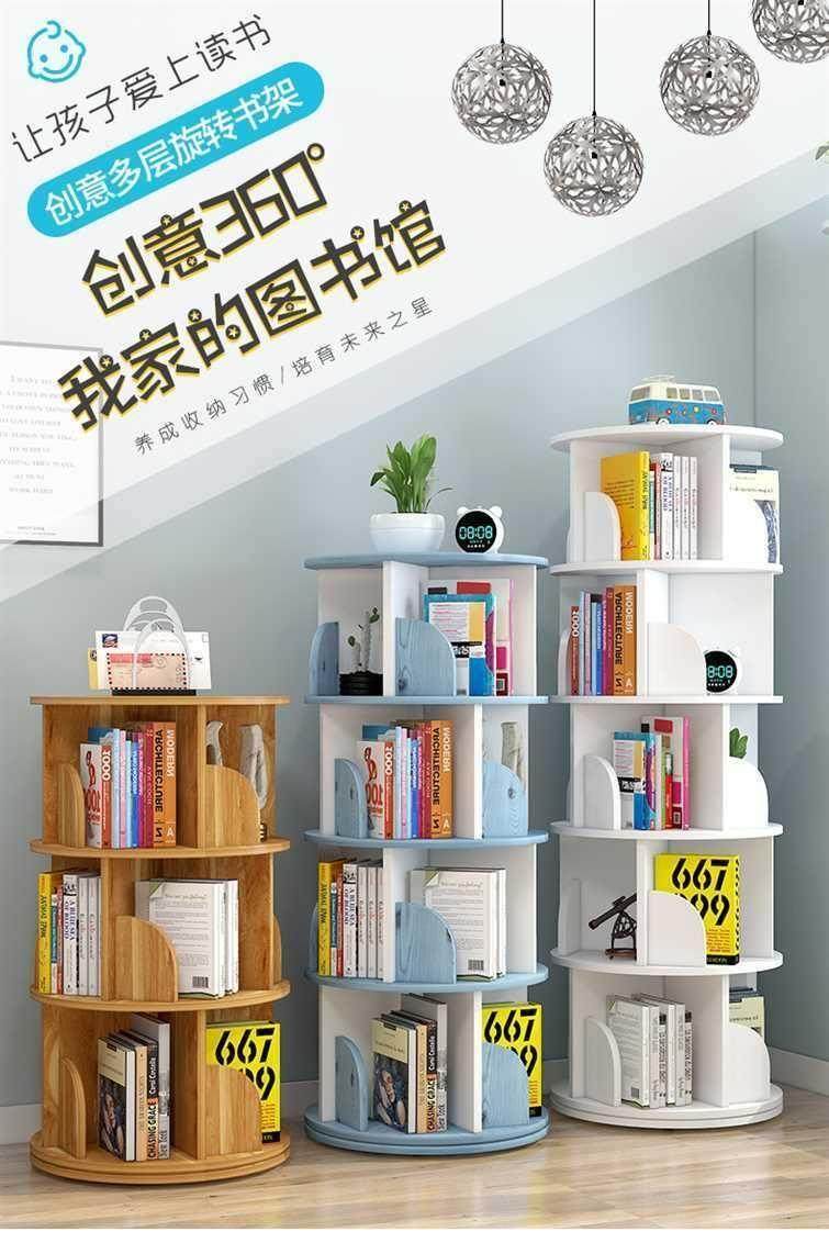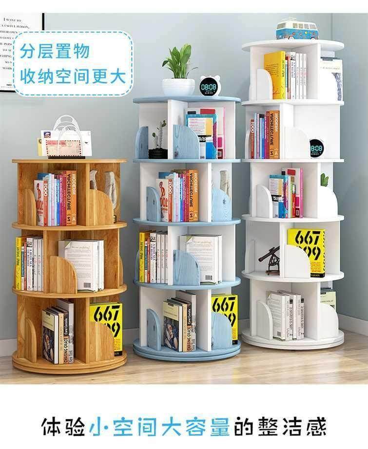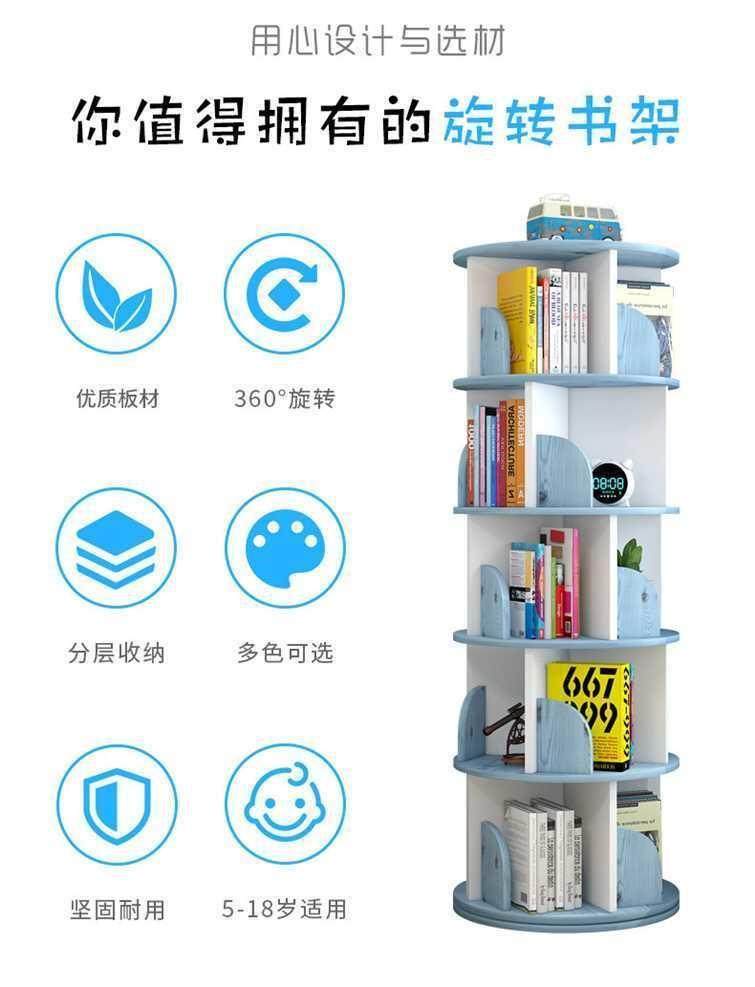 Rotating bookshelf storage rack floor-standing 360-degree children and students bookcase multi-layer space-saving cylindrical storage simple