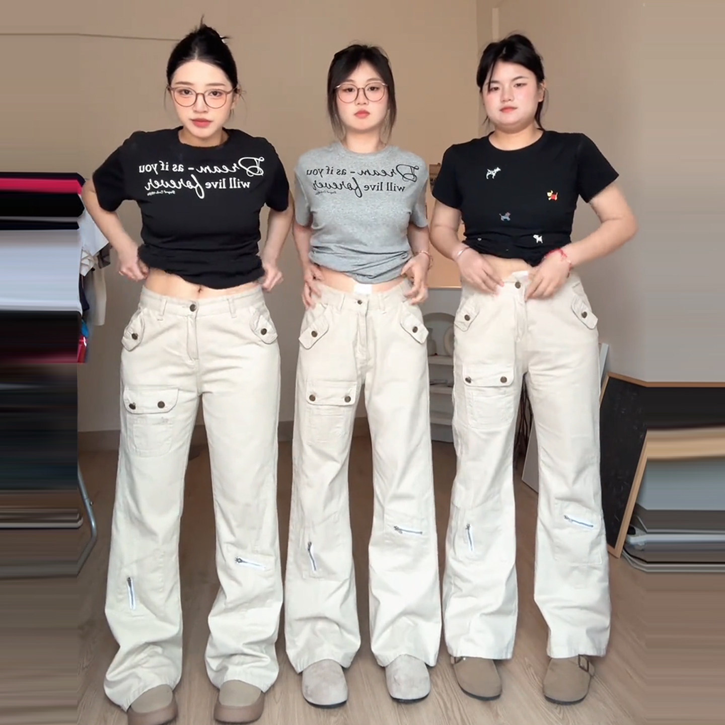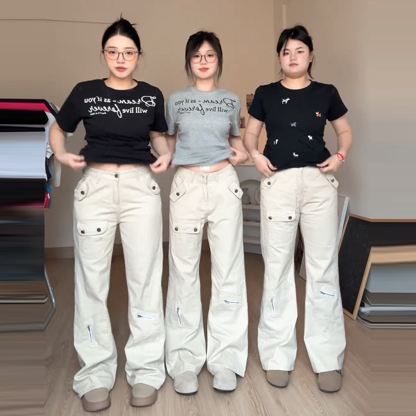 Large size American design multi-pocket boot-cut pants for women with fat mm slimming overalls wide-leg pants high-waisted trousers ins