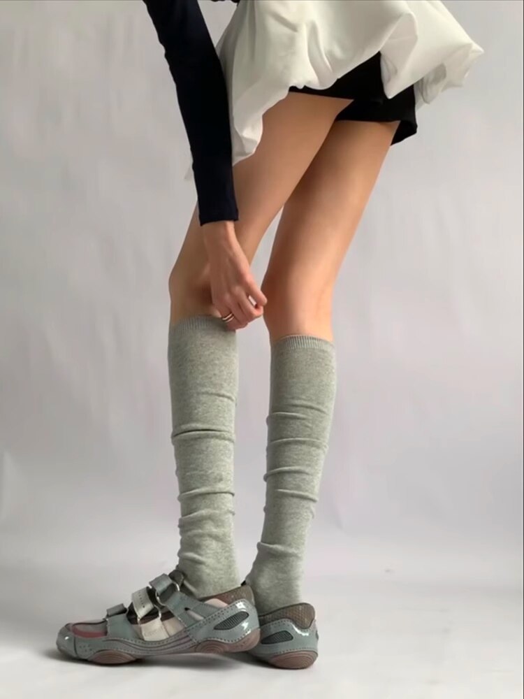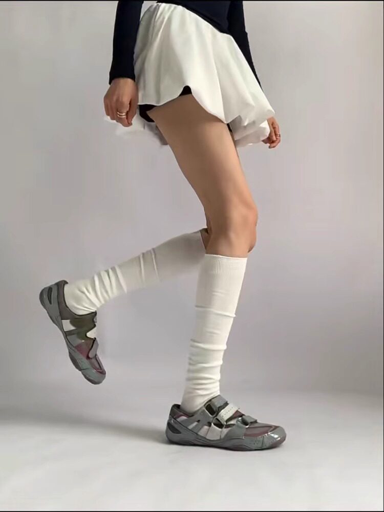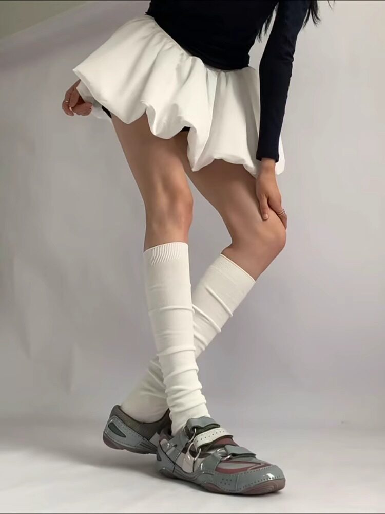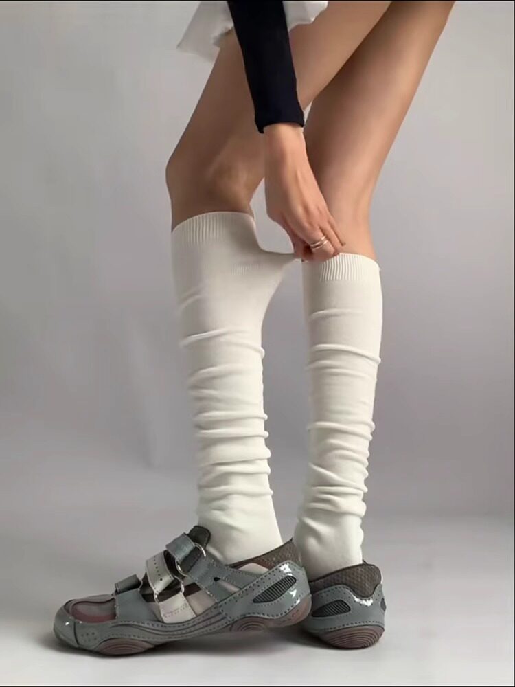 White Ballet-Style Socks for Women, Summer Thin Calf Socks, Leg-Shaping Long Jk Socks, Miu-Style Slouch Socks