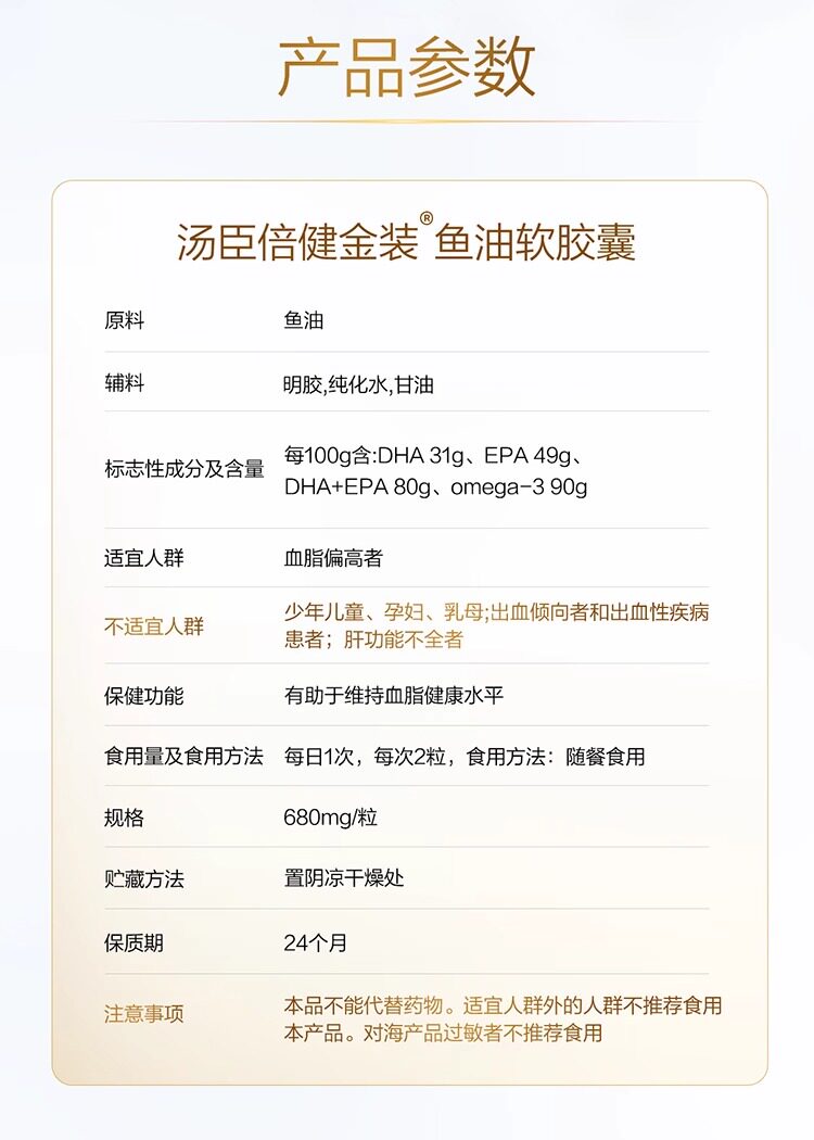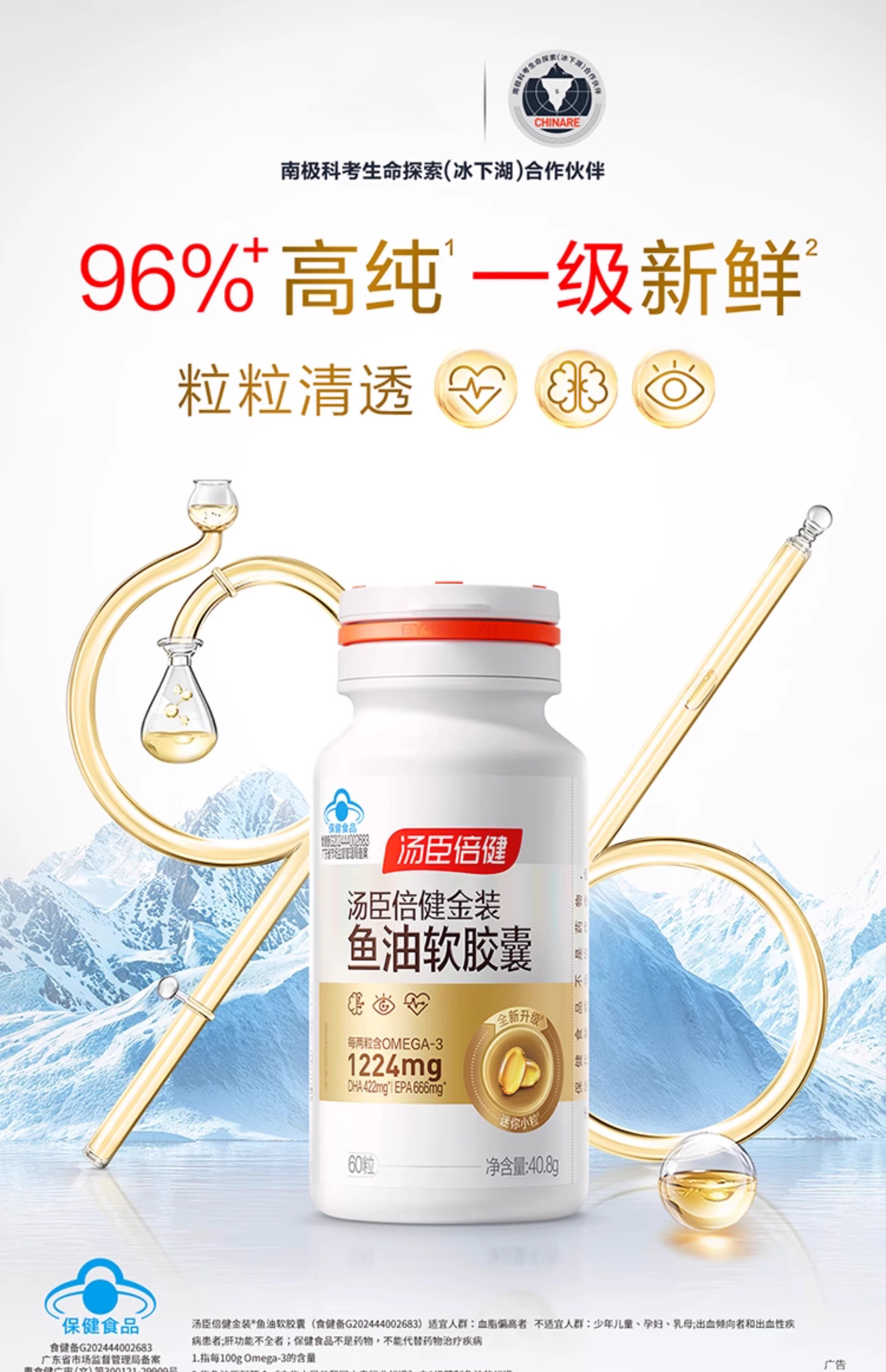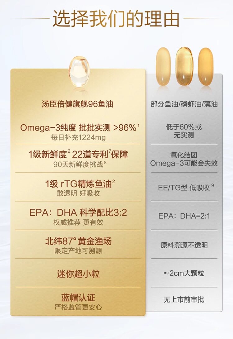 Tomson By-Health Gold Edition 96 Fish Oil Omega-3 Deep Sea Fish Oil Soft Capsules for Middle-Aged and Elderly Men and Women, Official Genuine Product