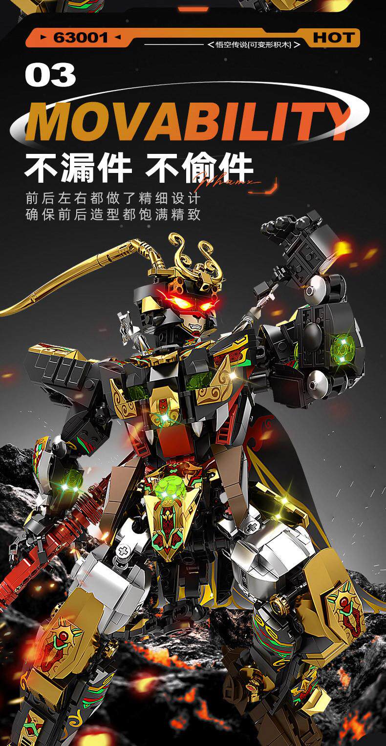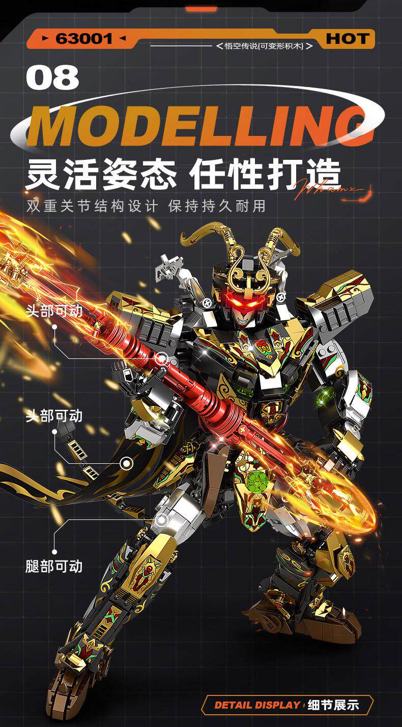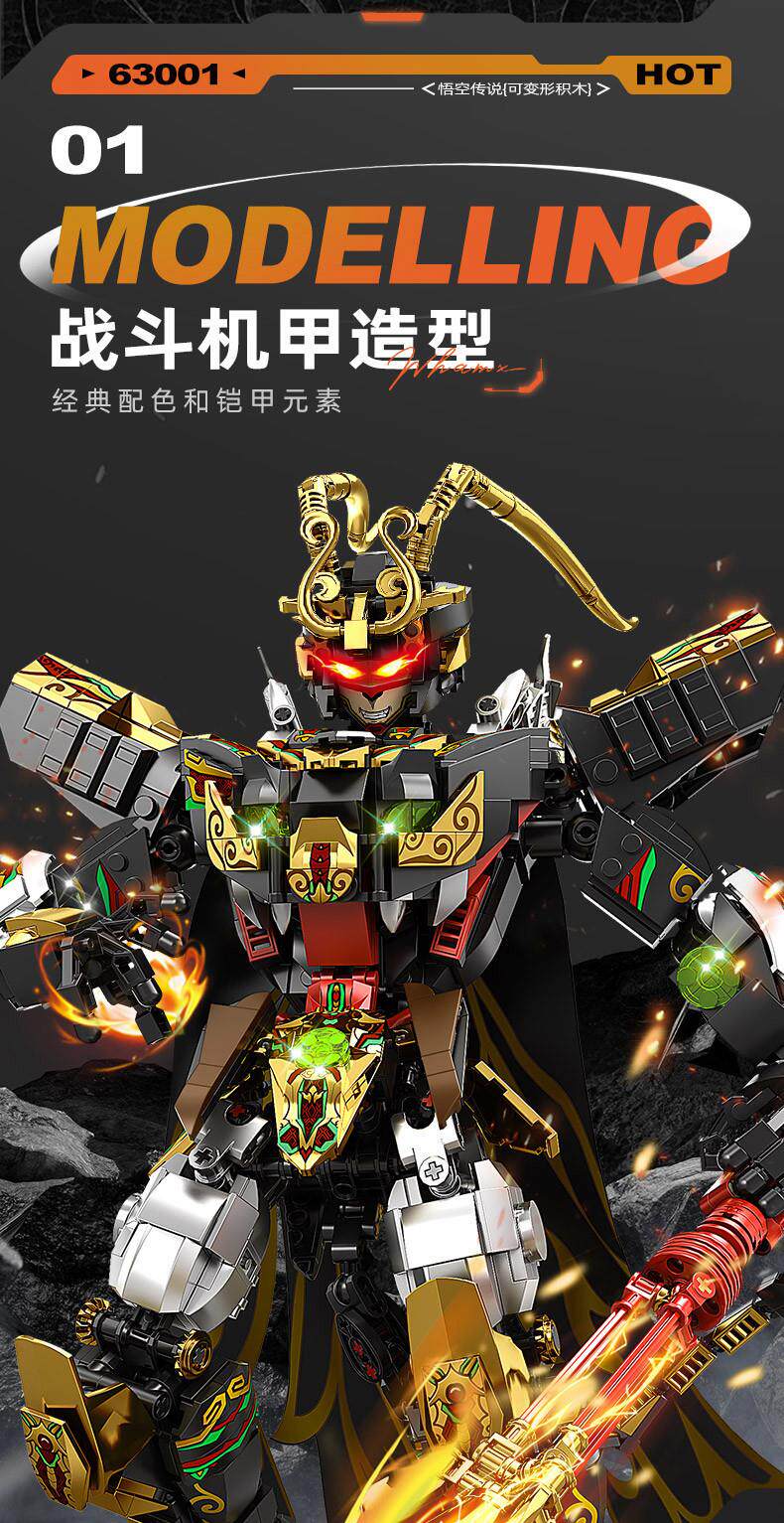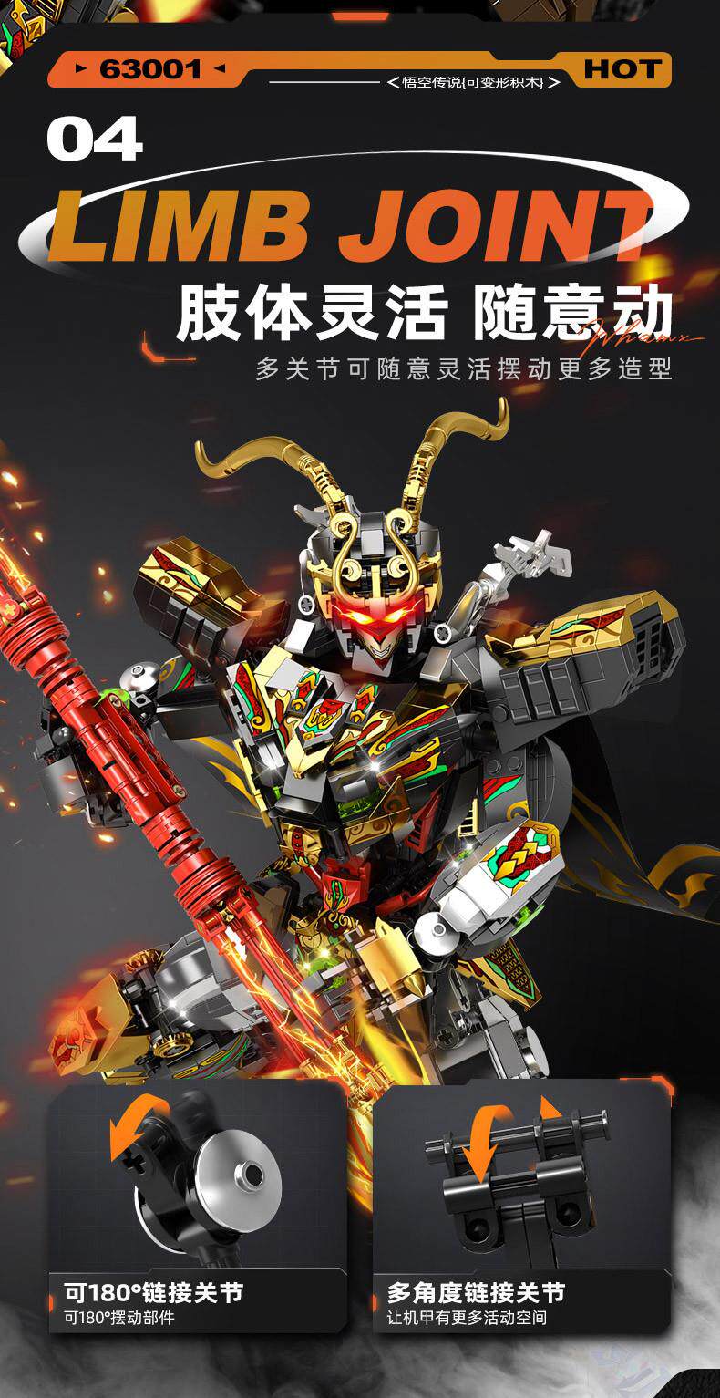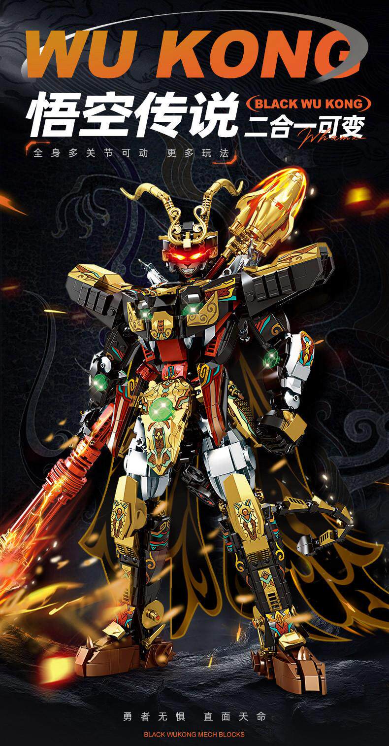 New Black Sun Wukong Mecha Robot Building Blocks Assembly Educational Toy for Boys, Monkey King Children's Day Gift
