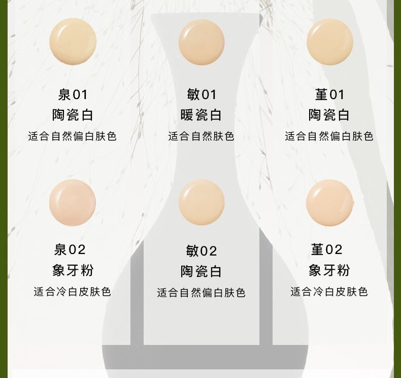 Color Classification Spring 01#Water Light Style [Ceramic White],Violet 01#Matte Style [Ceramic White],Min 01#Neutral Style [Ceramic White],Spring 02#Water-Gloss Style [Ivory Powder],Min 02#Neutral Style [Ceramic White],Violet 02#Matte Style [Ivory Powder]