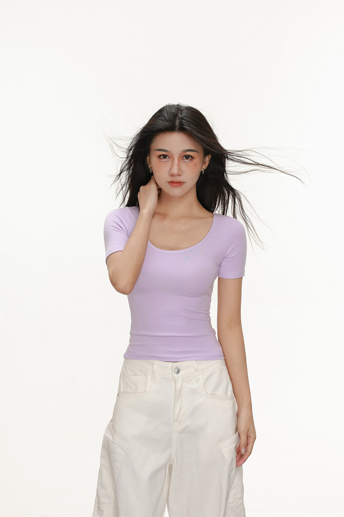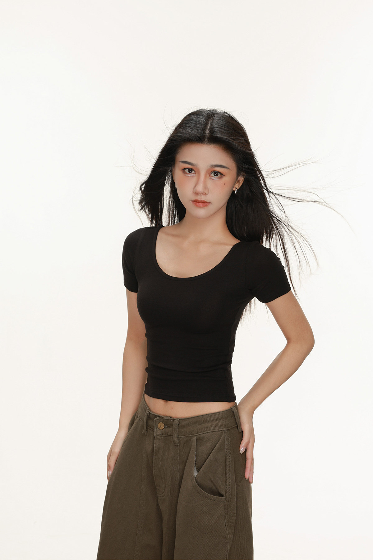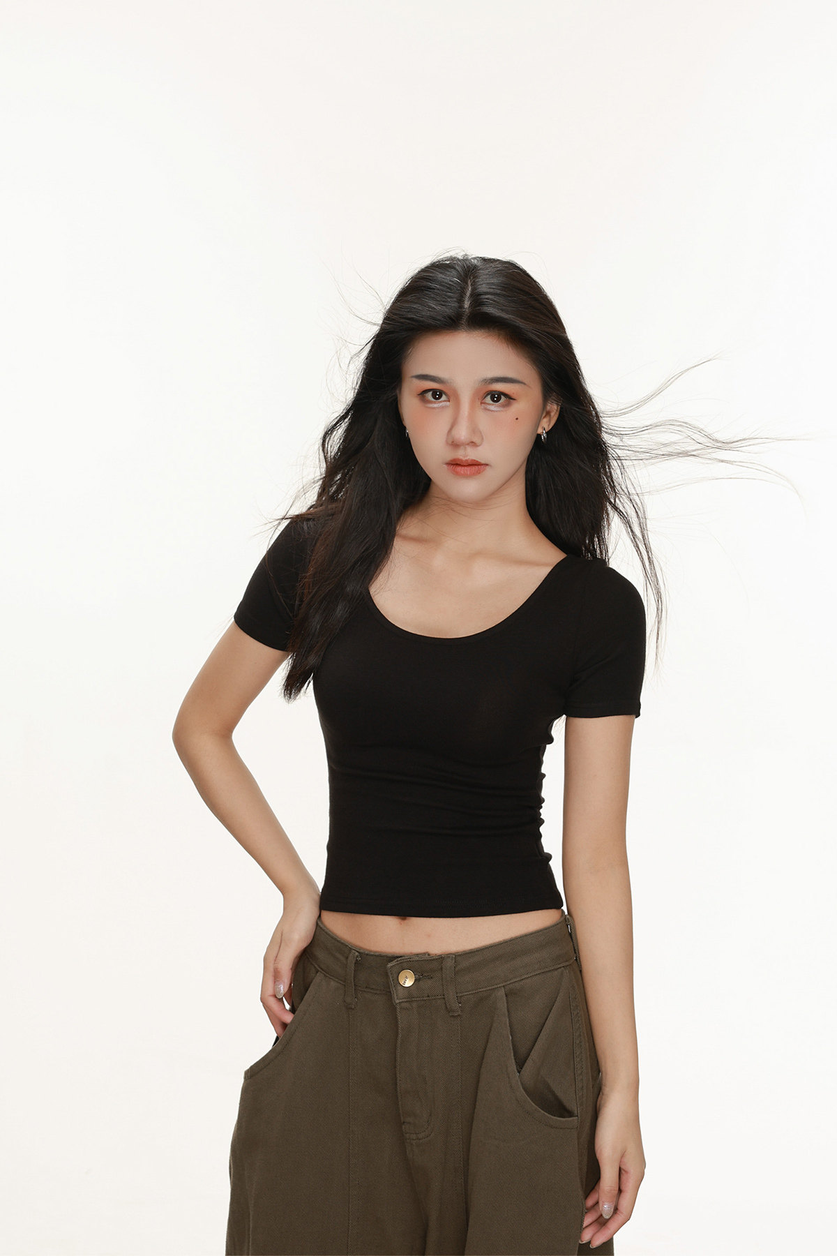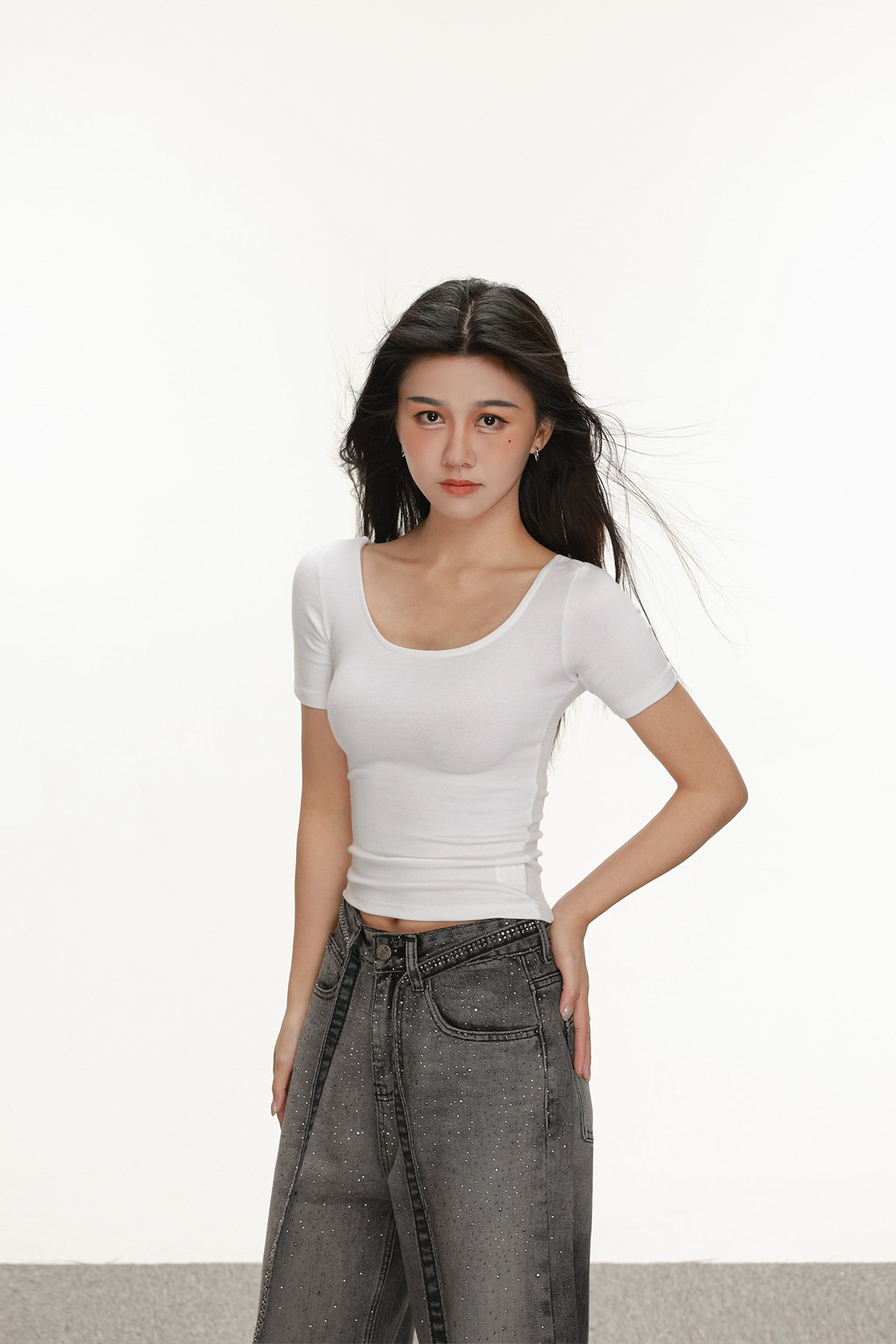 American Sexy Tight-Fitting Short-Sleeved T-Shirt for Women Summer 2025 New Pure Desire Front and Back U-Neck Slim Sexy Short Top