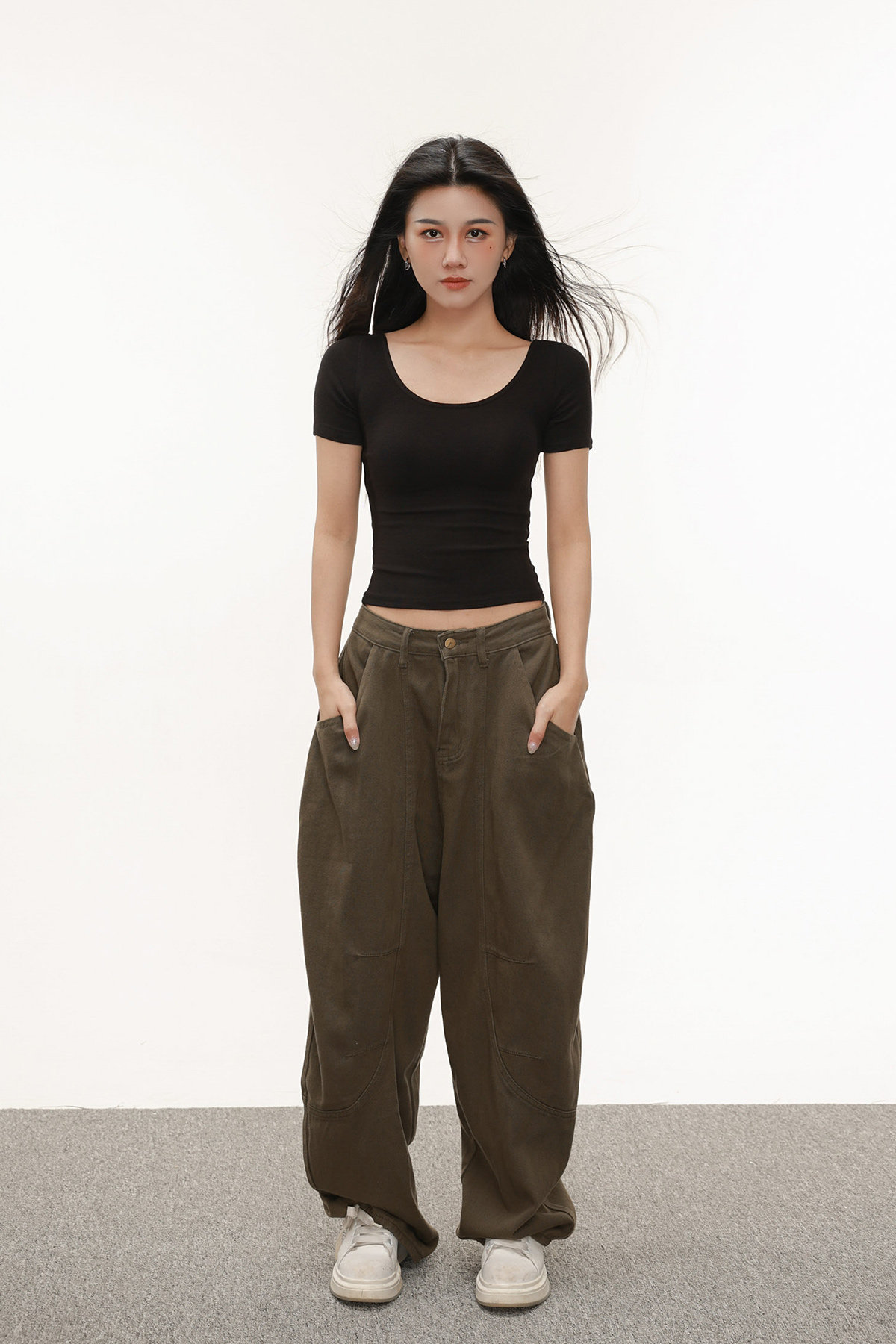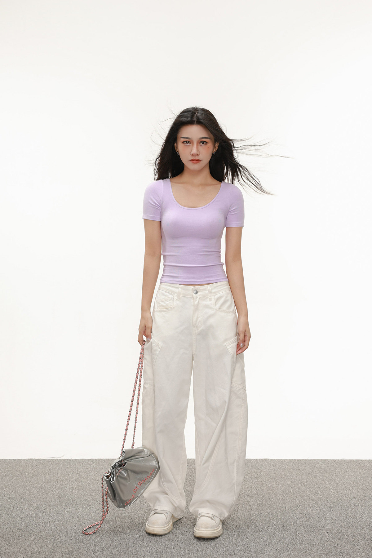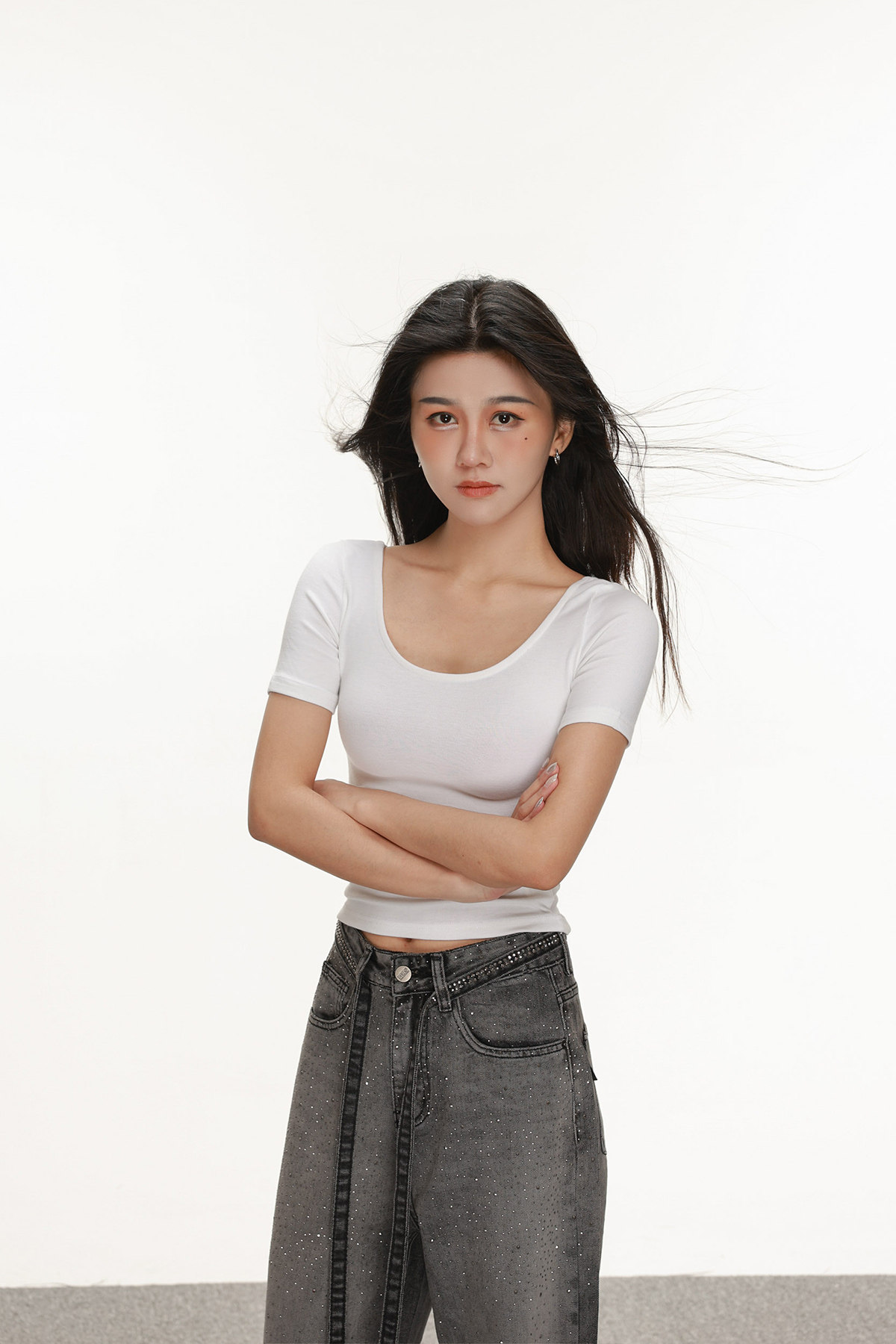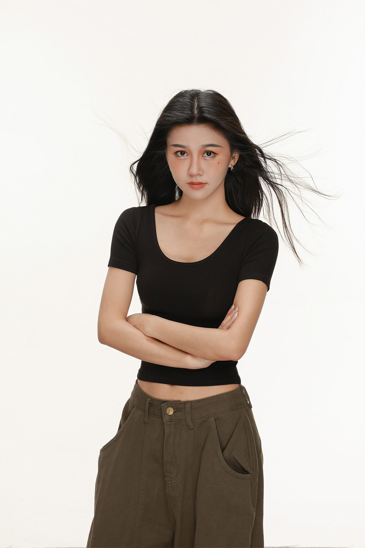 American Sexy Tight-Fitting Short-Sleeved T-Shirt for Women Summer 2025 New Pure Desire Front and Back U-Neck Slim Sexy Short Top