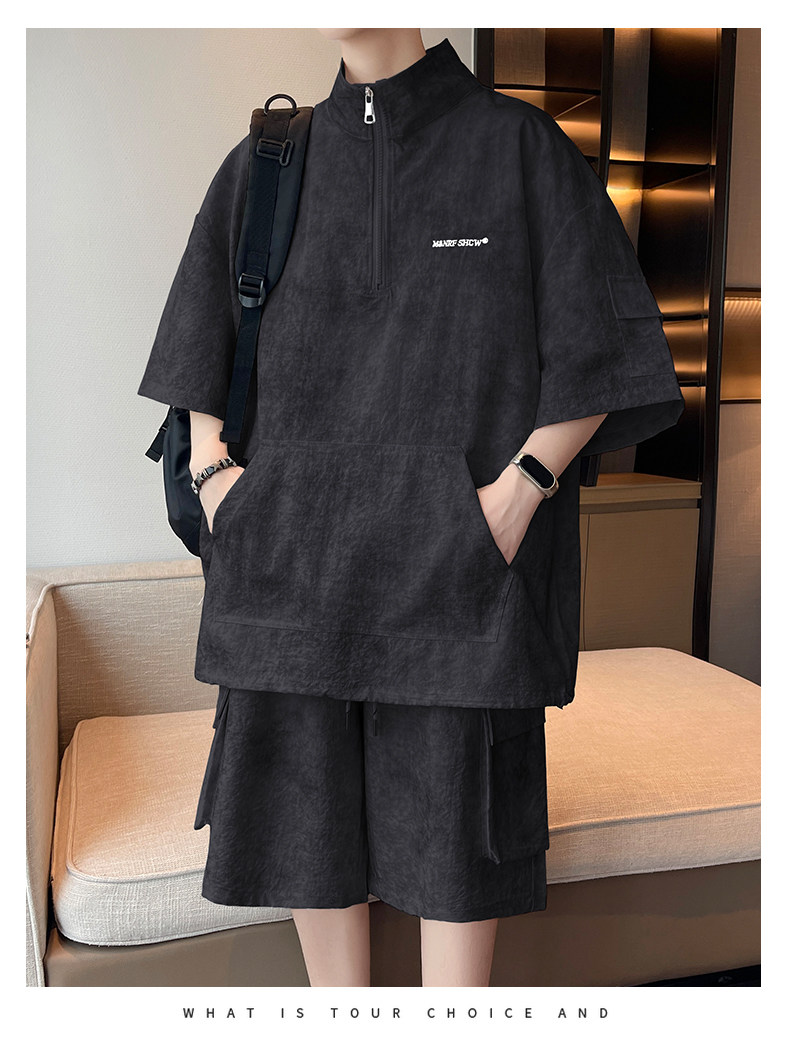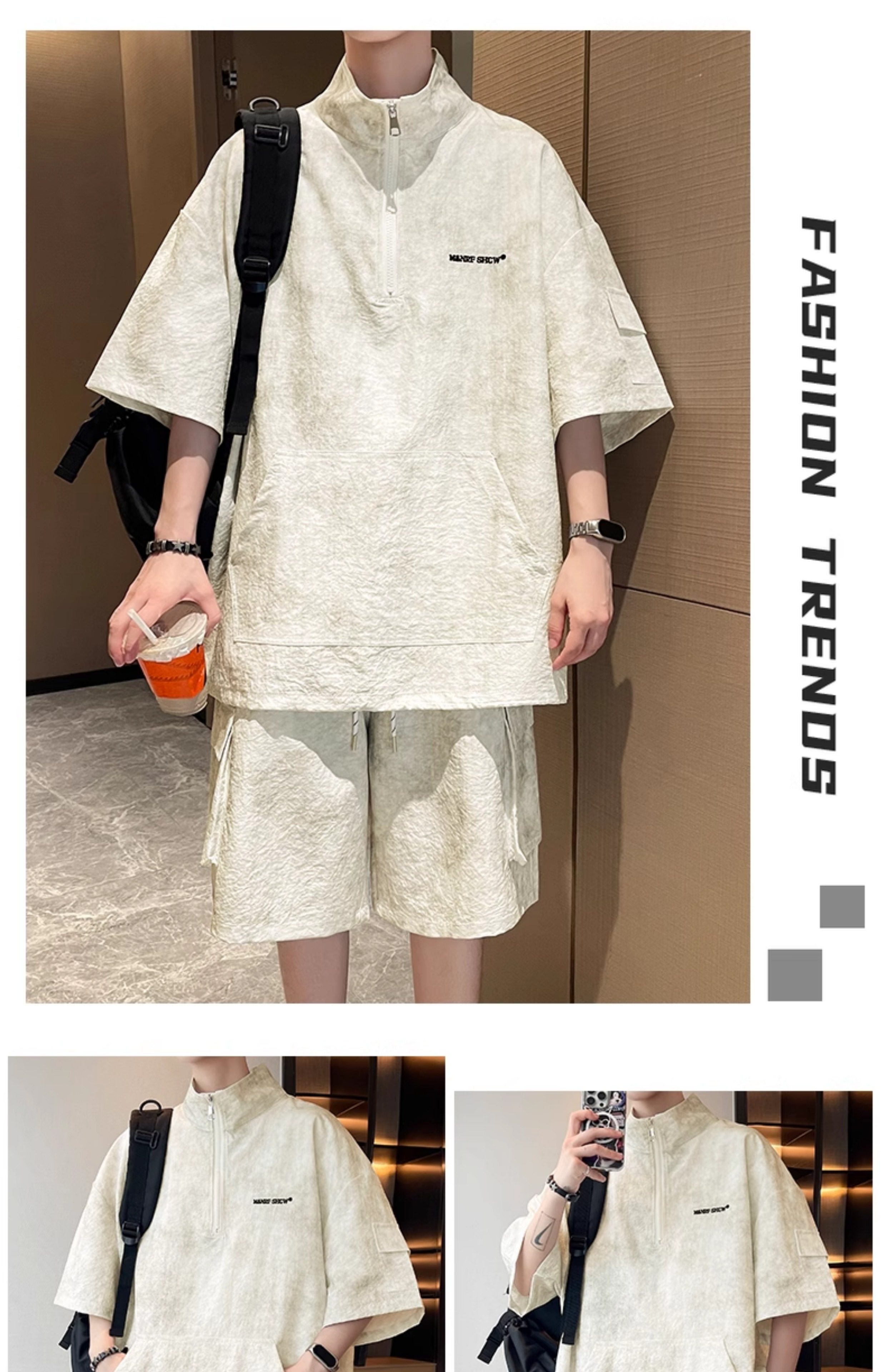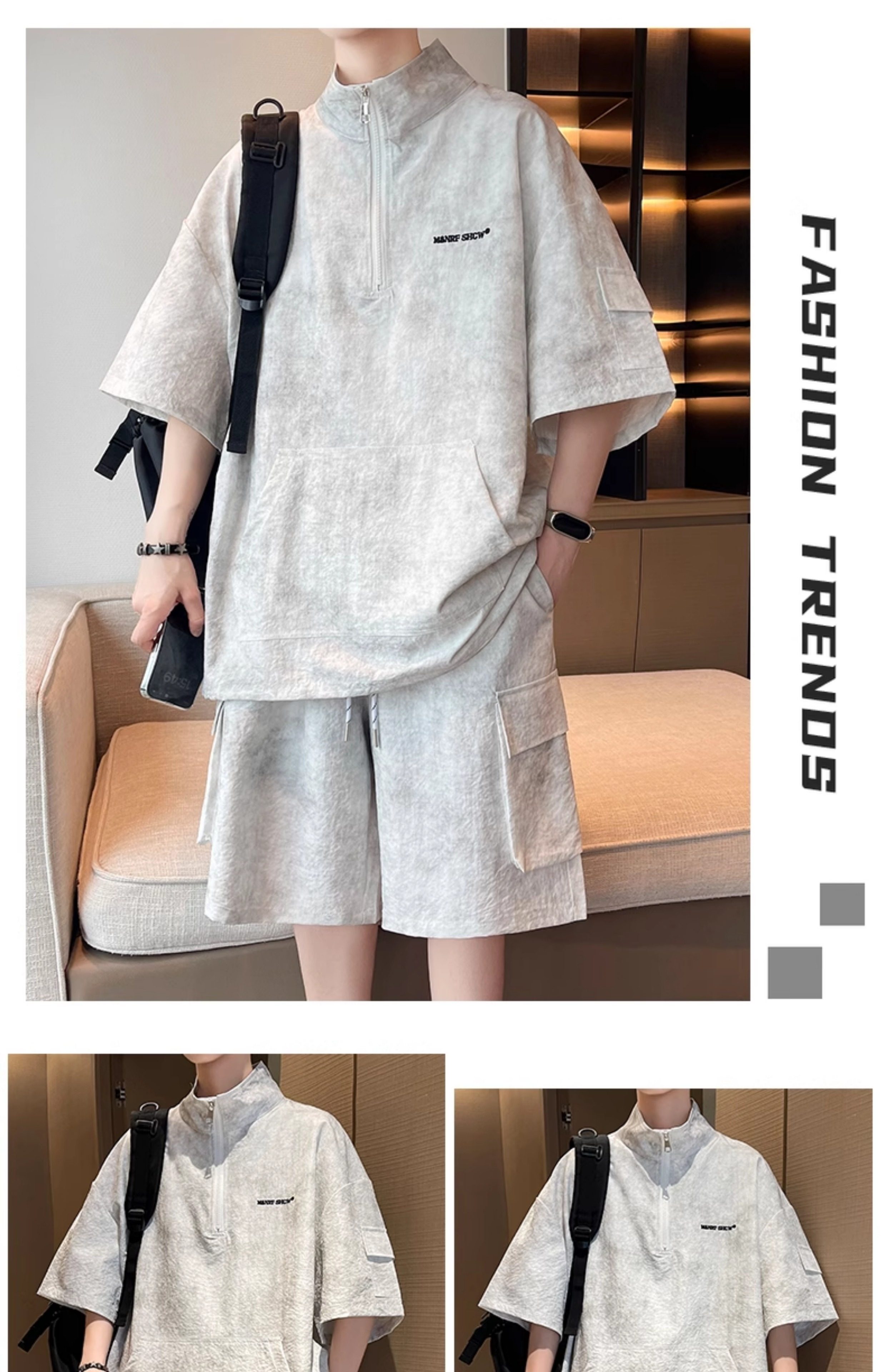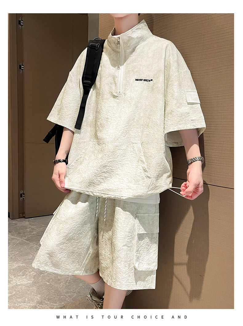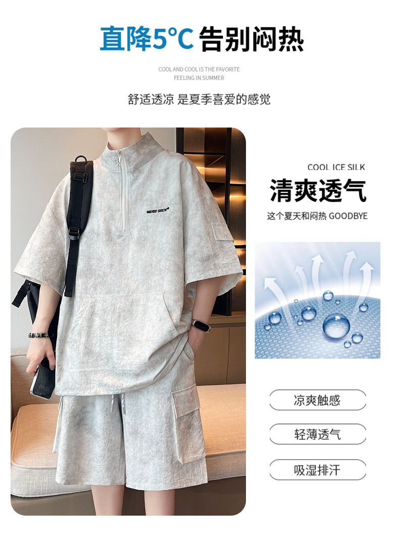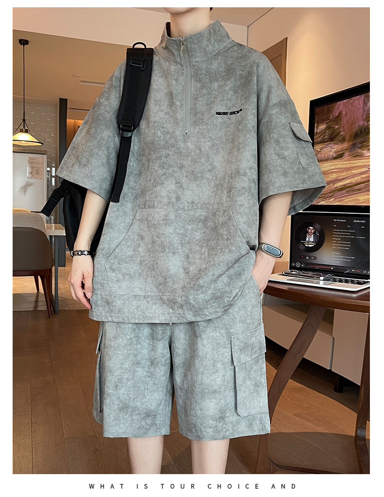 Half-Zip Tie-Dye Retro Sports Suit for Men, Summer Casual Outfit with Short-Sleeved Shorts, Cool and Stylish Sun Protection Clothing