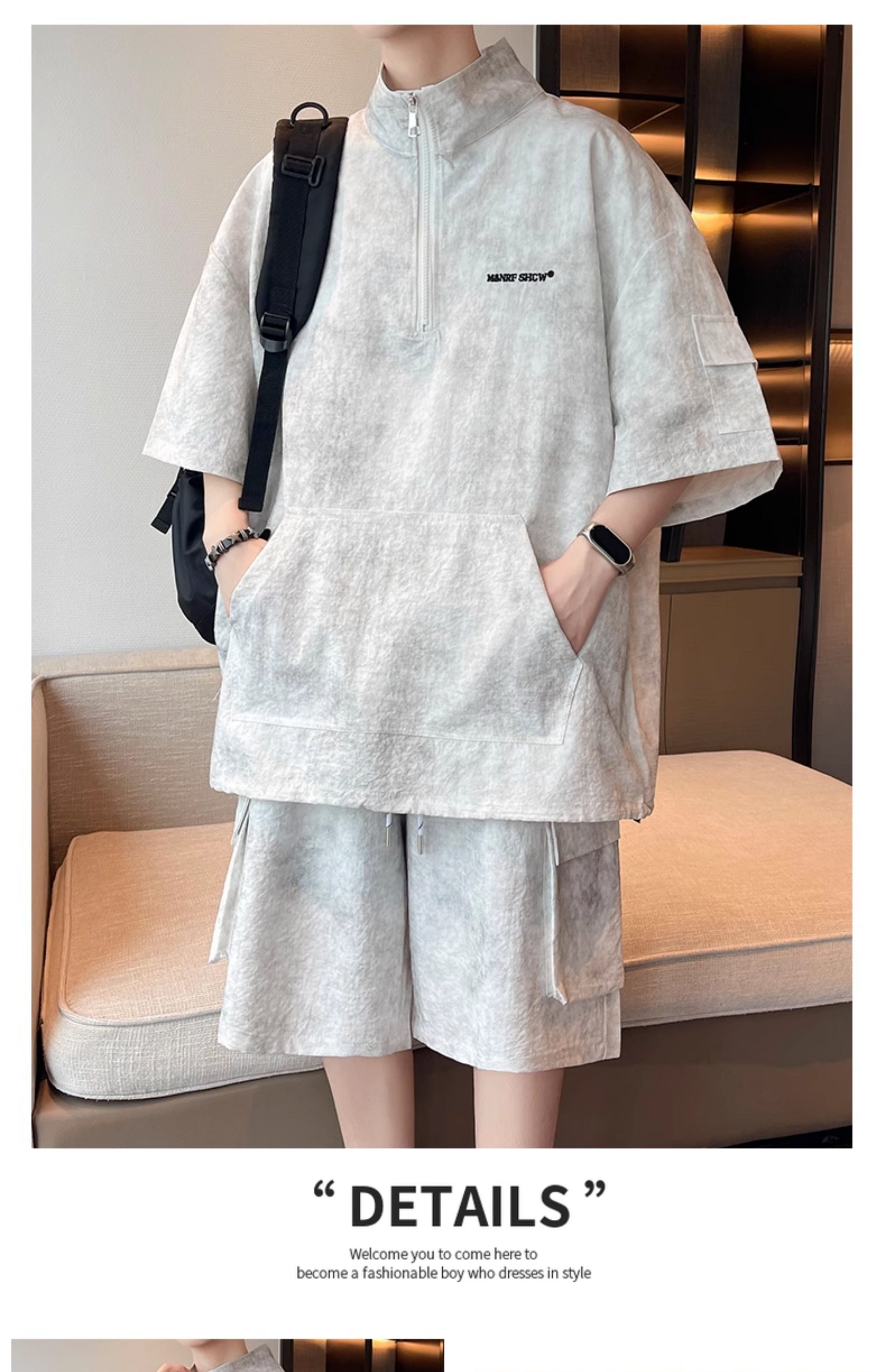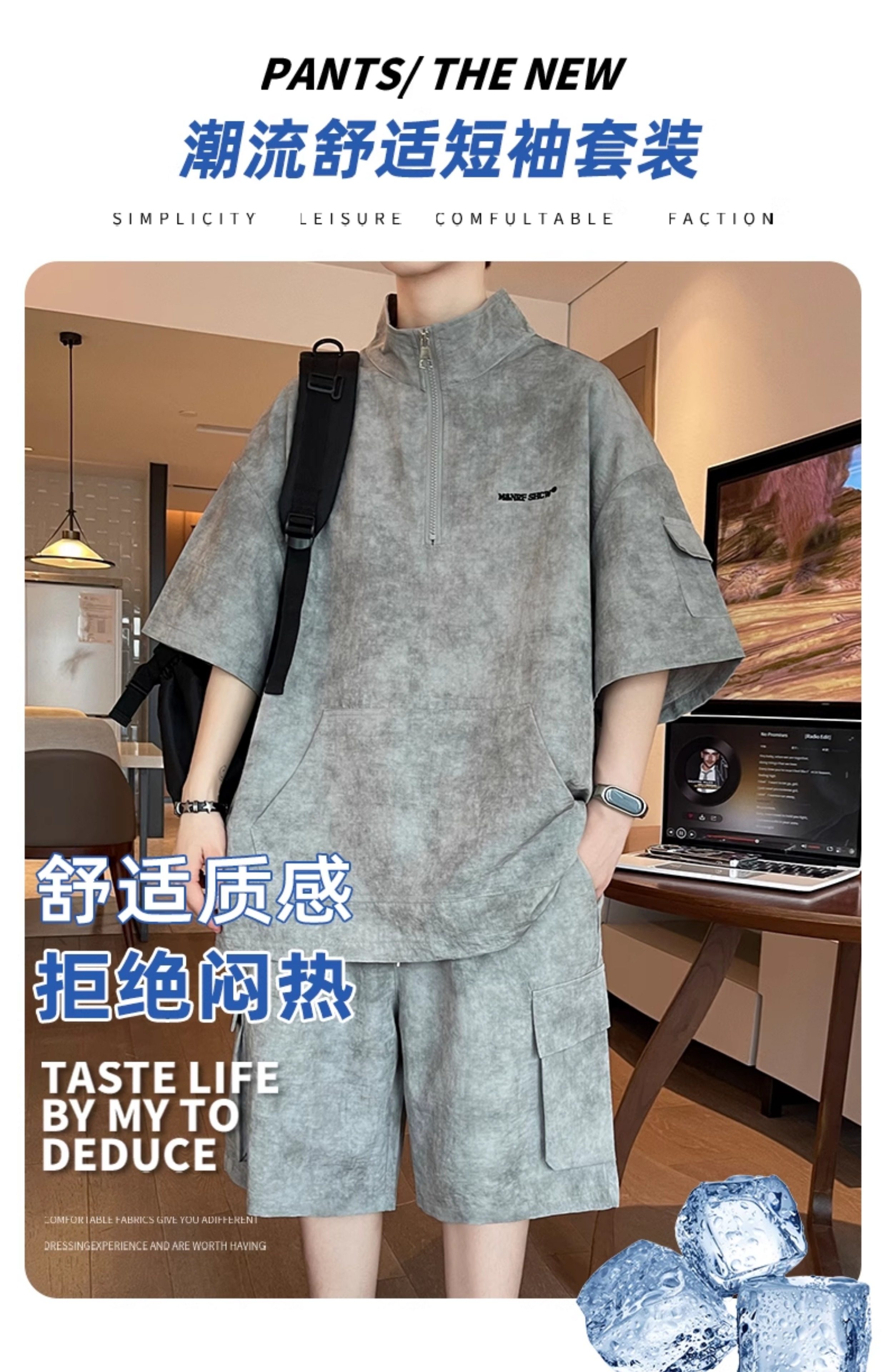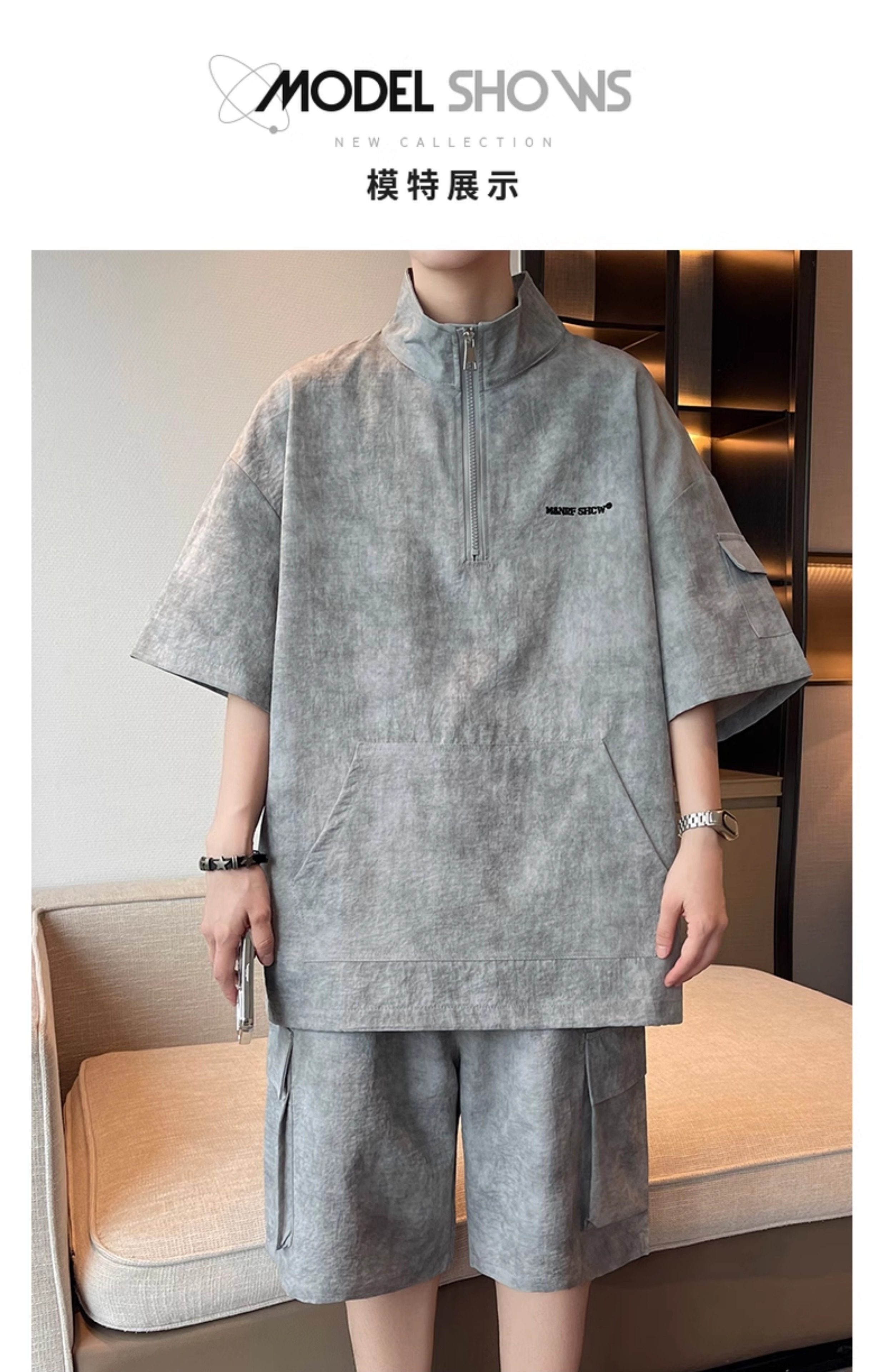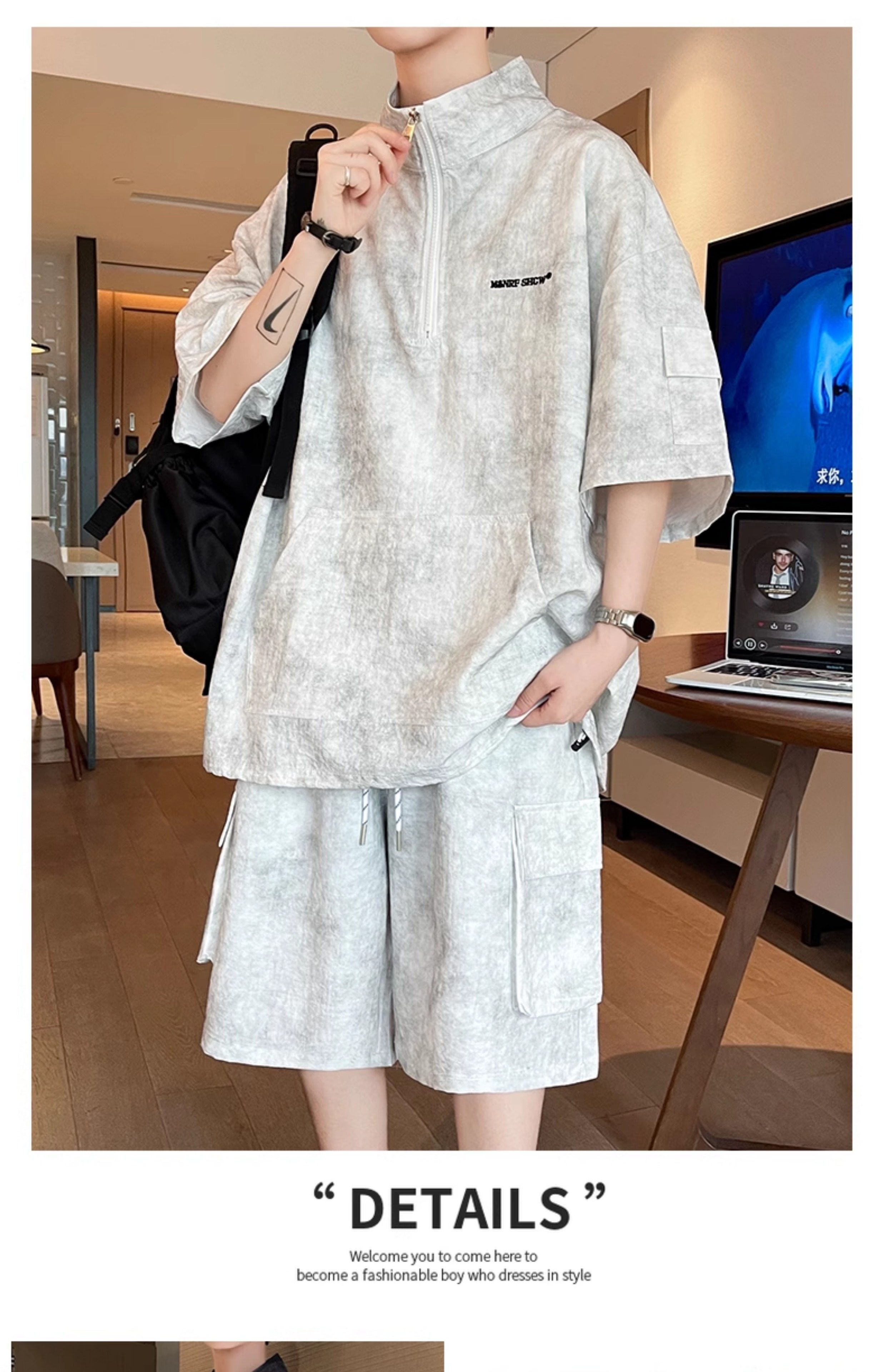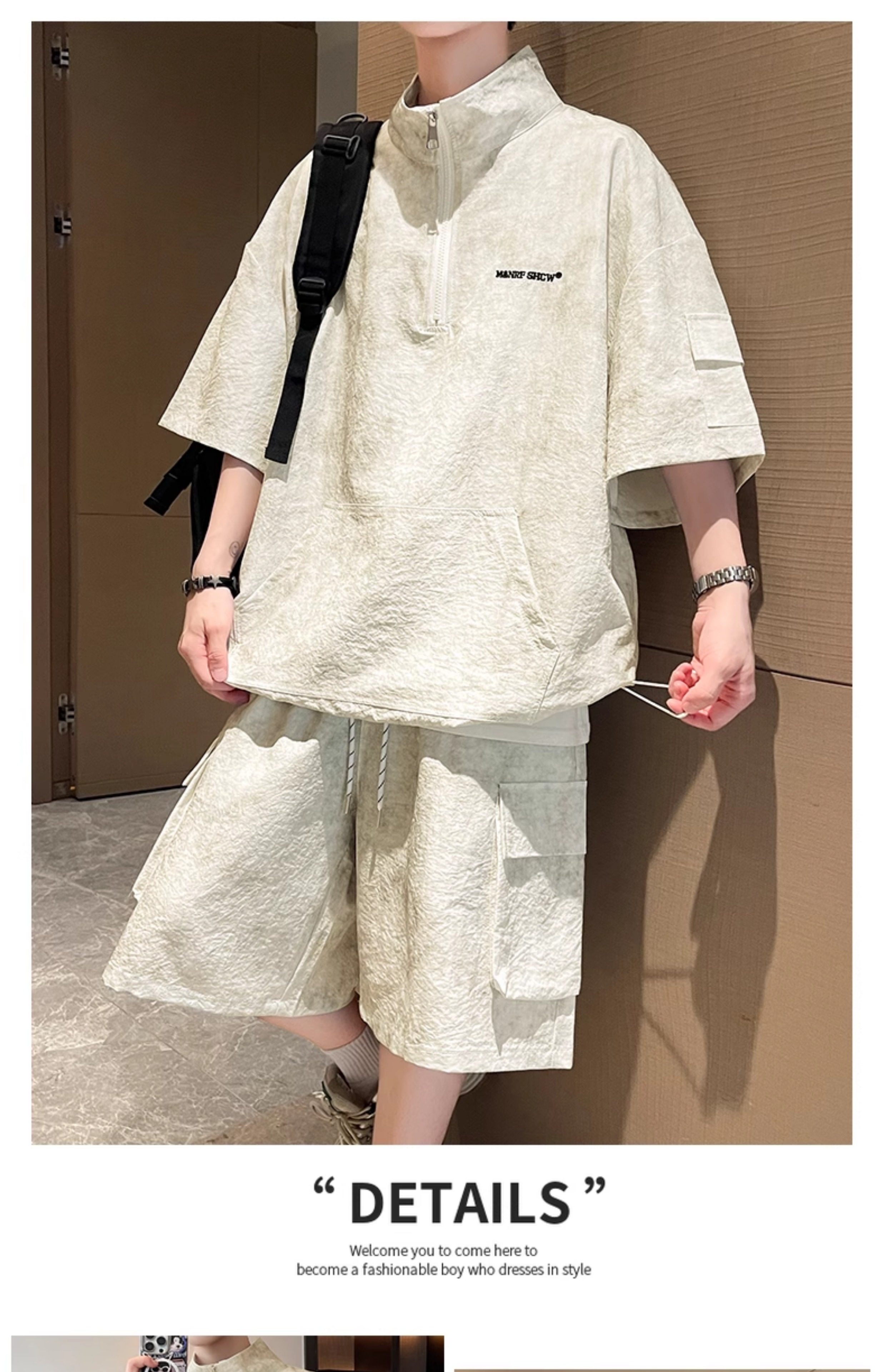 Half-Zip Tie-Dye Retro Sports Suit for Men, Summer Casual Outfit with Short-Sleeved Shorts, Cool and Stylish Sun Protection Clothing
