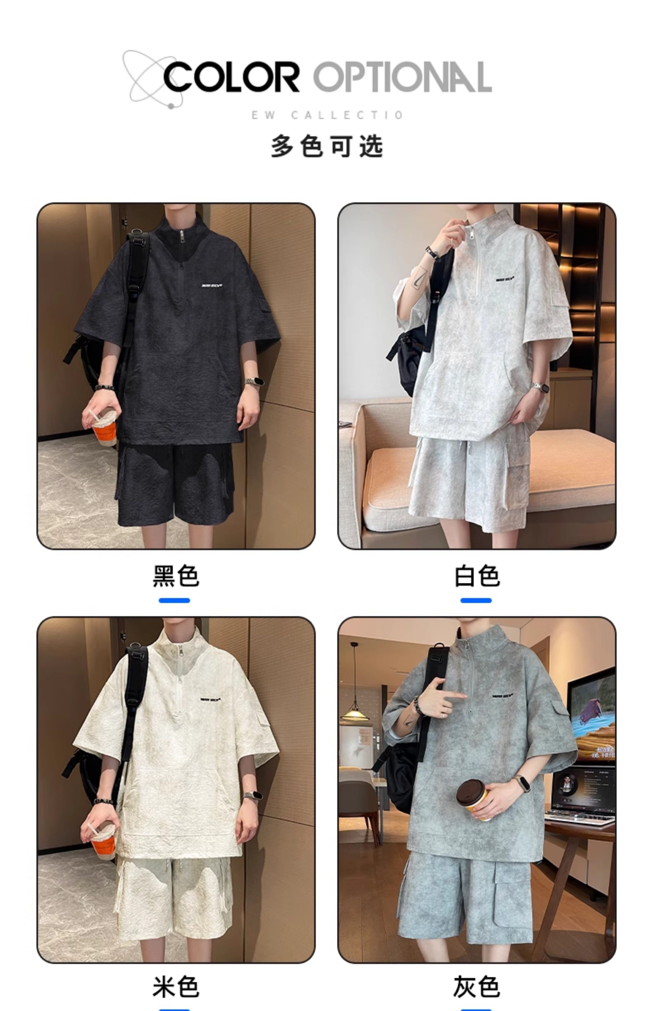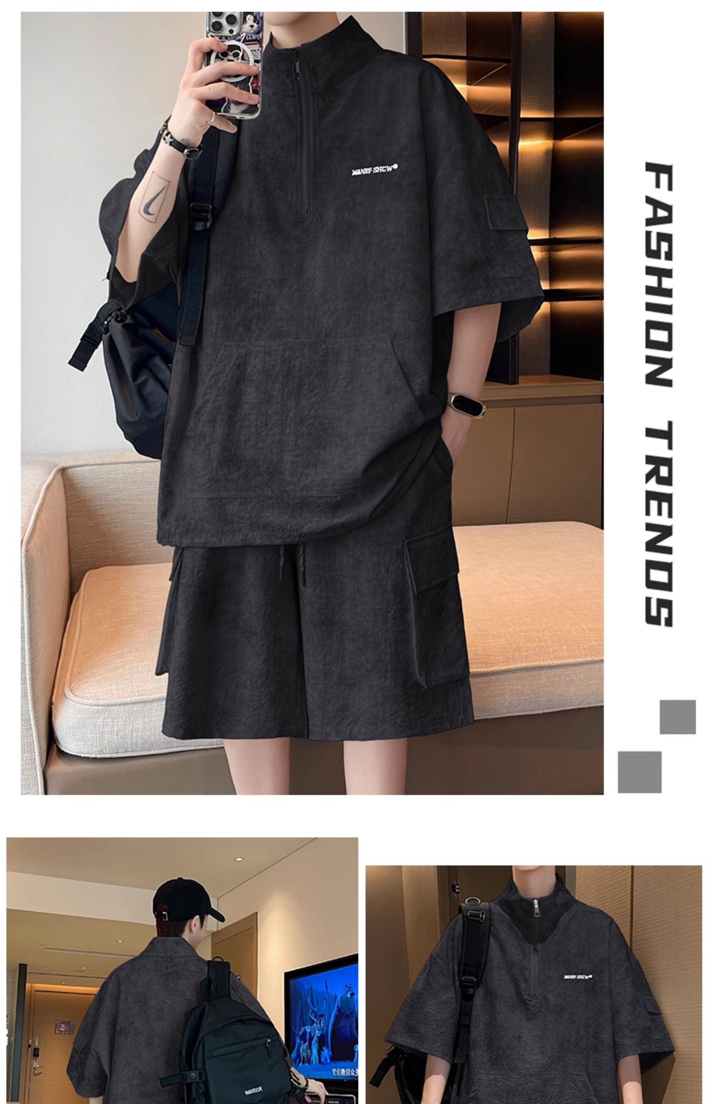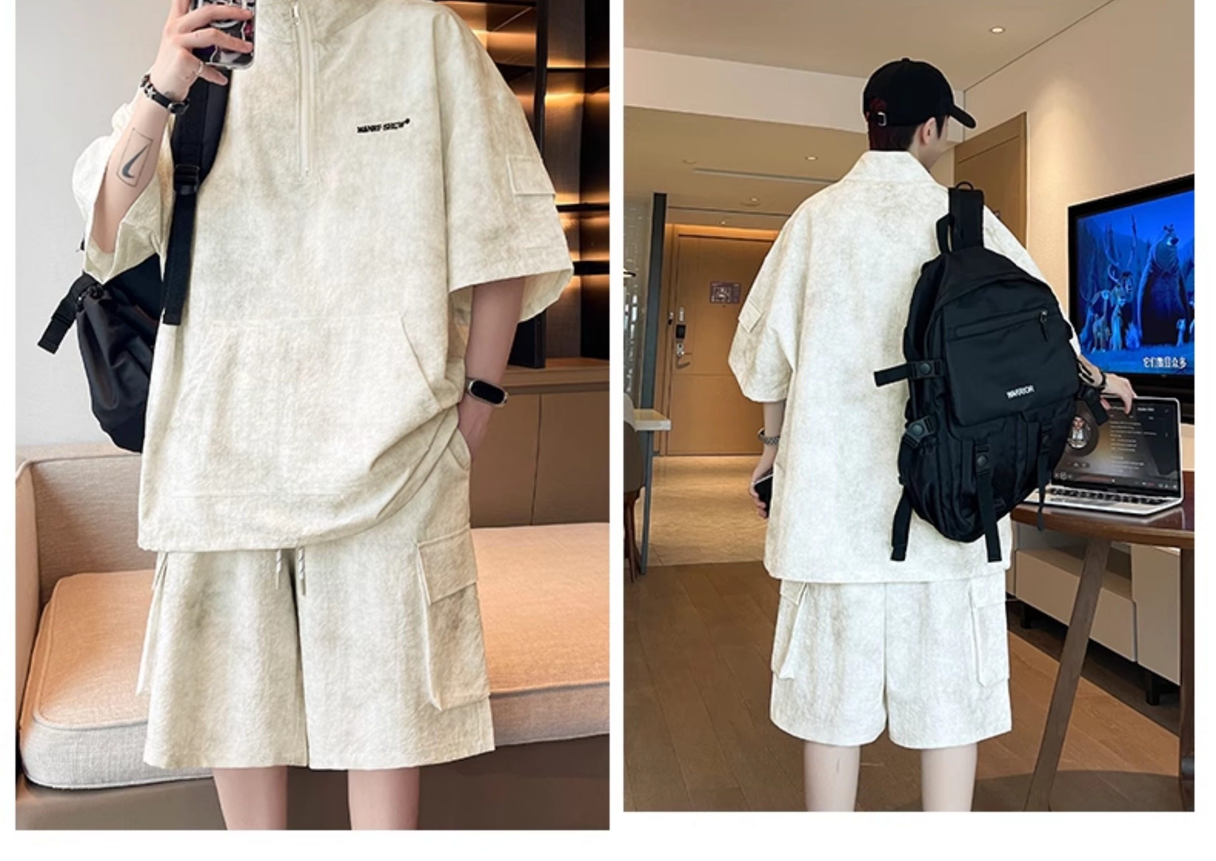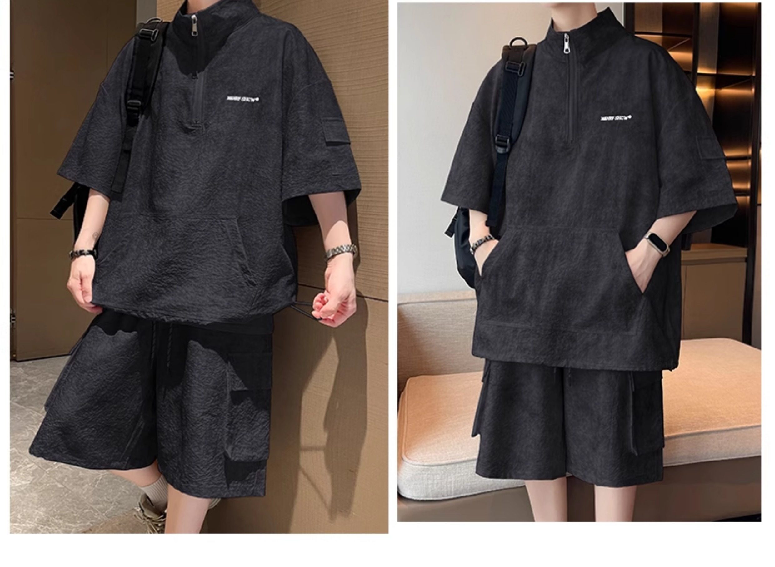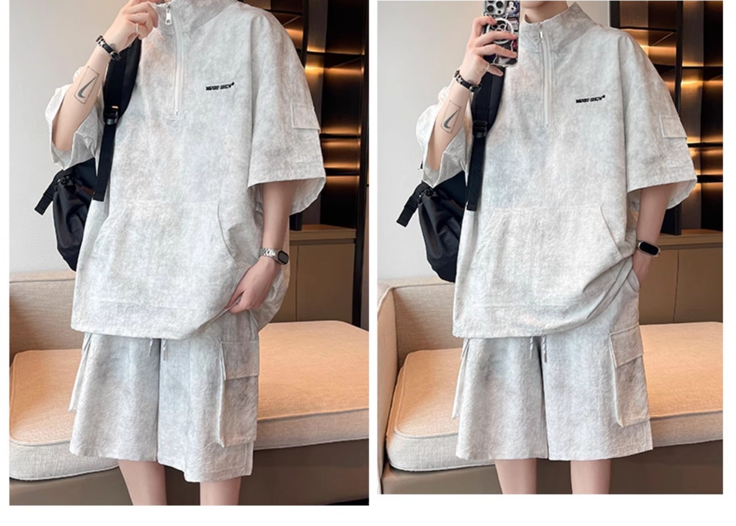Half-Zip Tie-Dye Retro Sports Suit for Men, Summer Casual Outfit with Short-Sleeved Shorts, Cool and Stylish Sun Protection Clothing