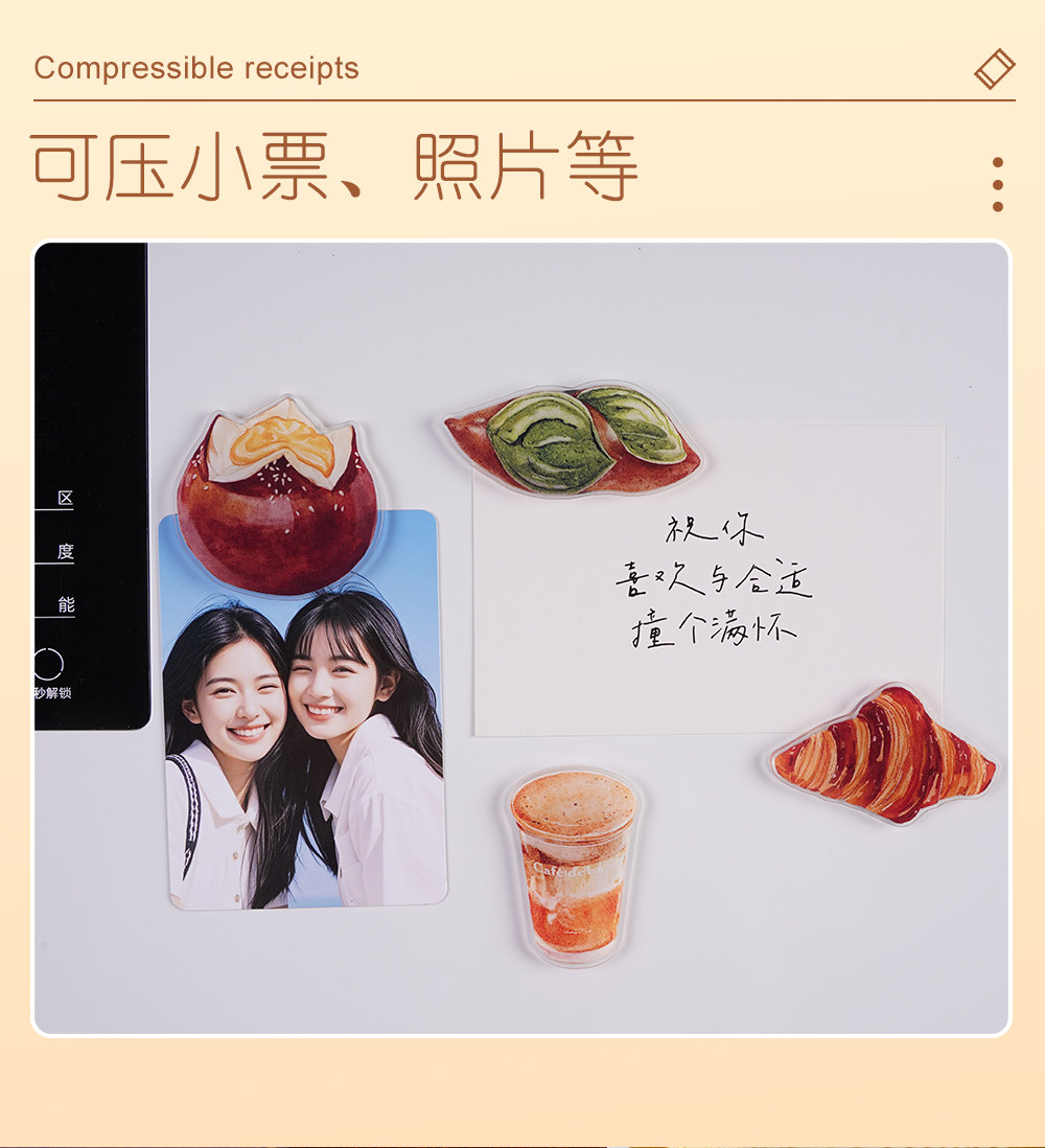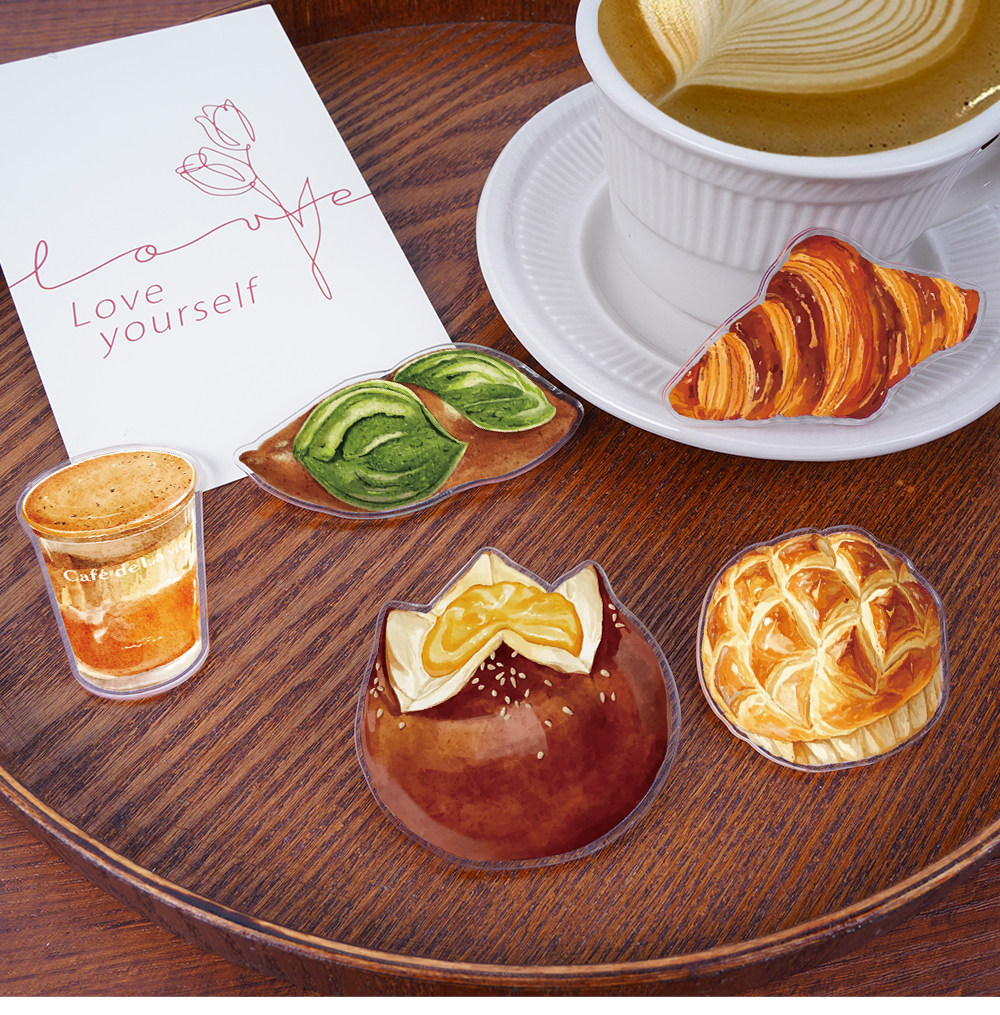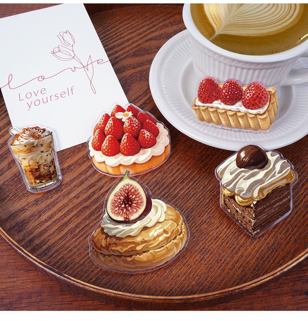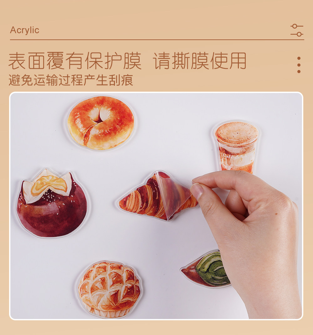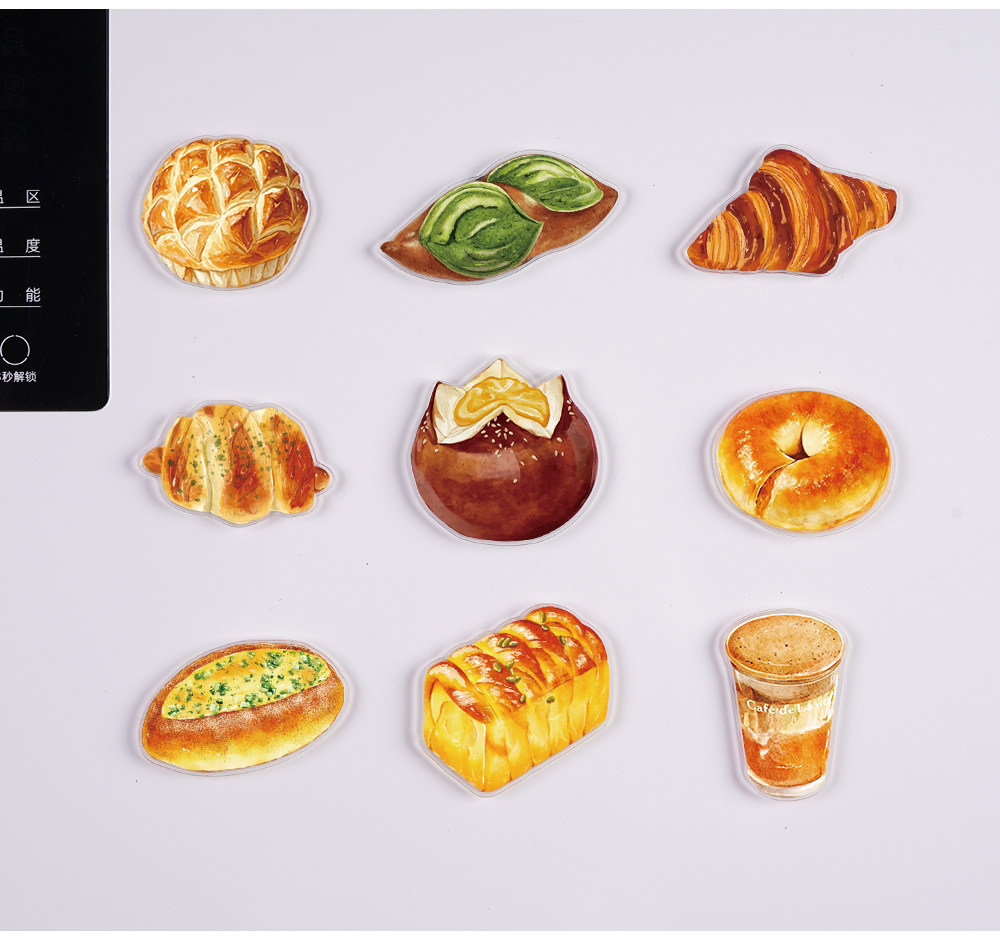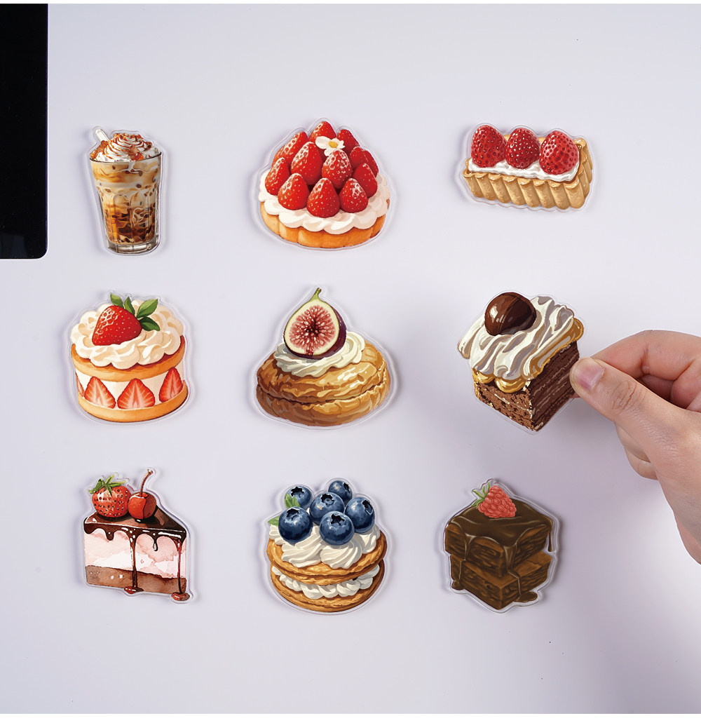 Sort by color Bread refrigerator magnets, 9 pieces, translucent acrylic,Dessert refrigerator magnets, 9 pieces, translucent acrylic,Bread + Dessert Refrigerator Magnets, 18 pieces in hand