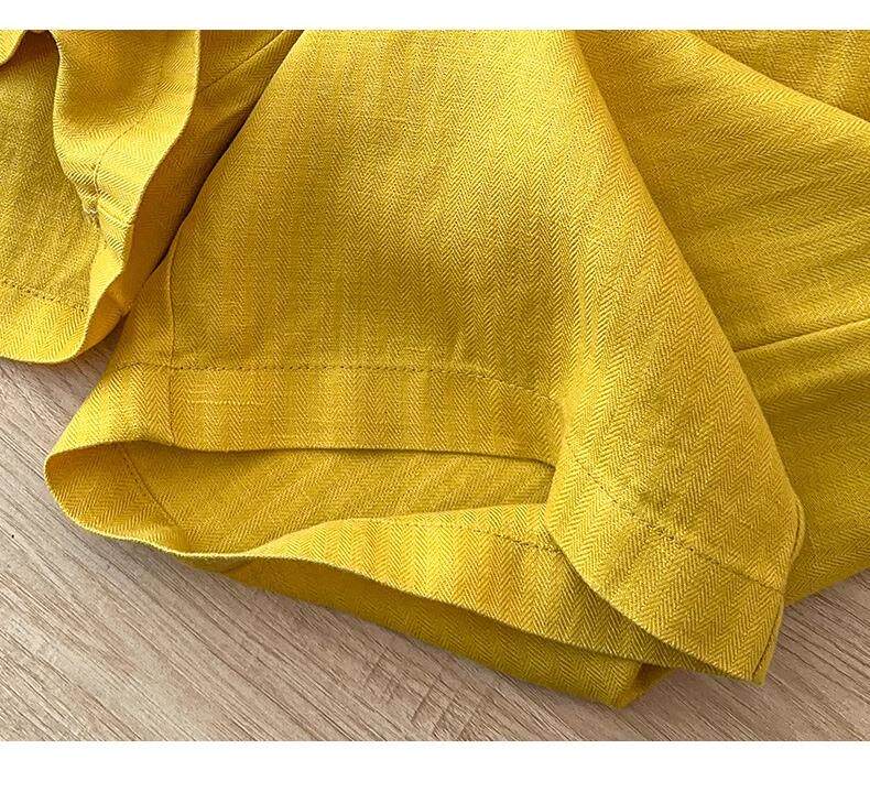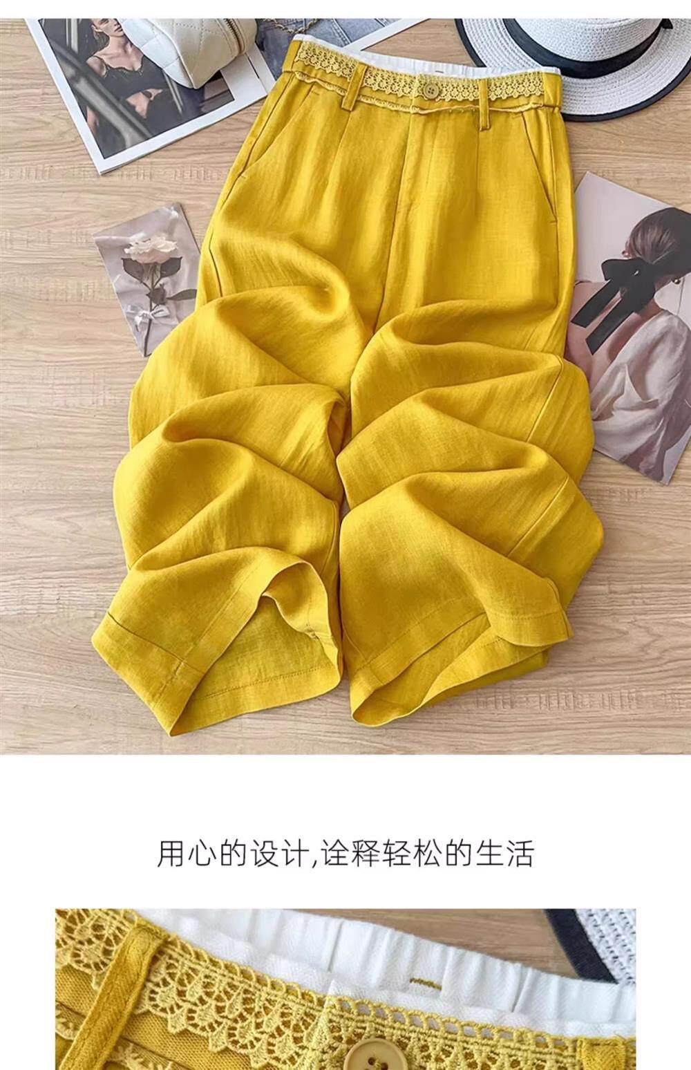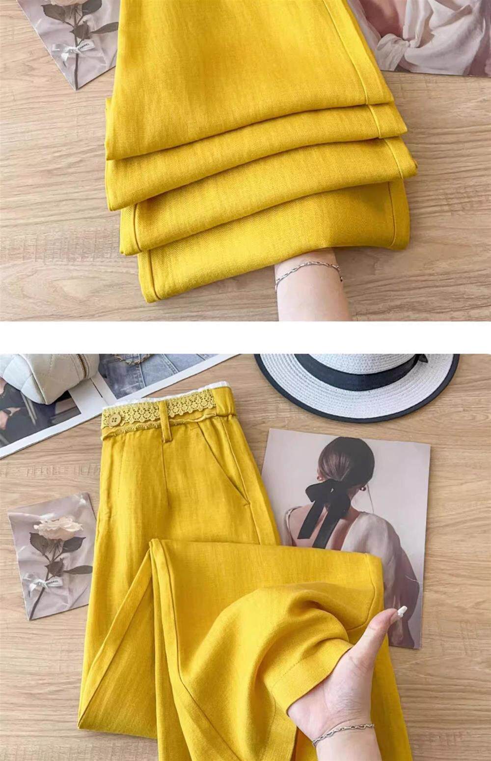 2026 new summer style women's yellow ice silk wide-leg casual pants for all sizes, high-waisted loose floor-length straight pants