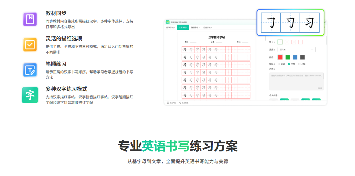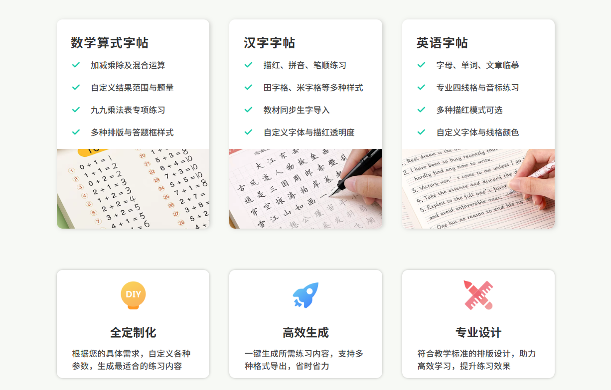 Jinzhou Practice Copybook Printing Generator Membership Chinese Characters Mathematics English Practice Computer Copybook Generation Software