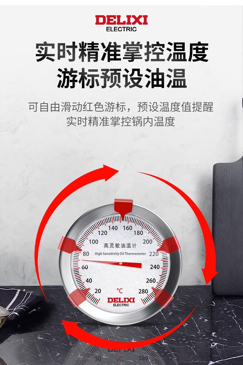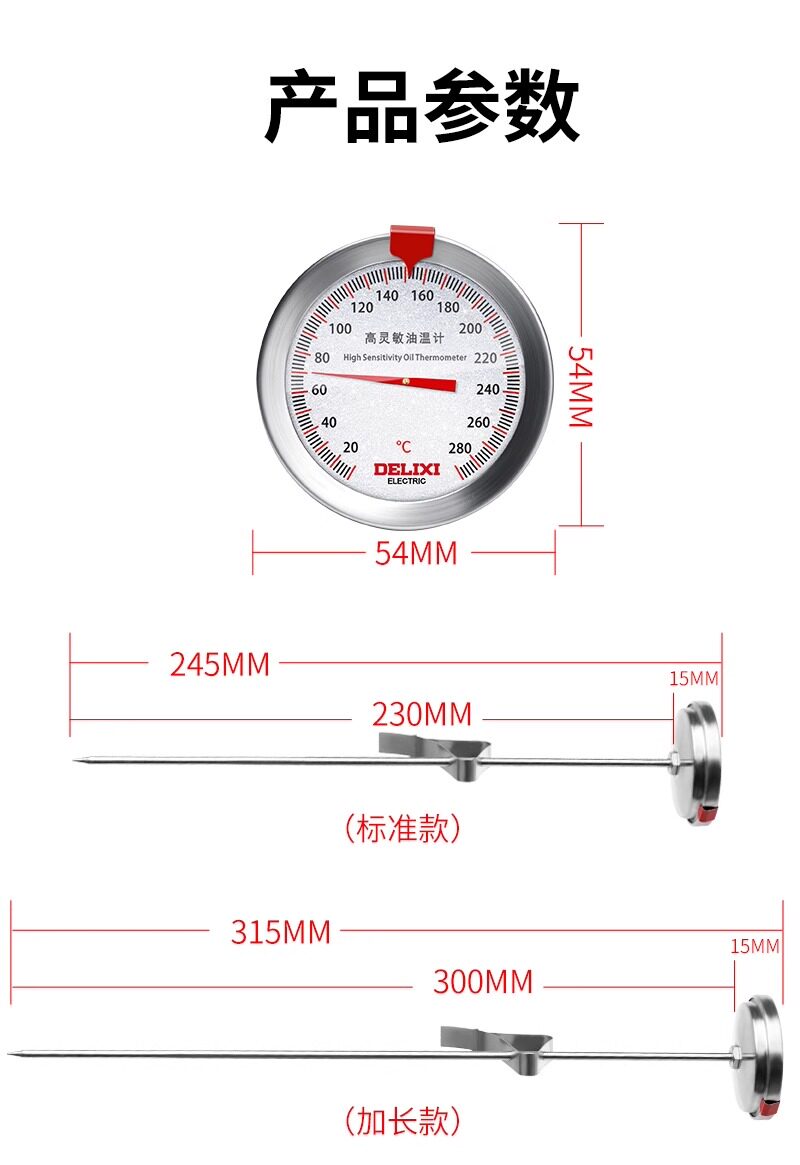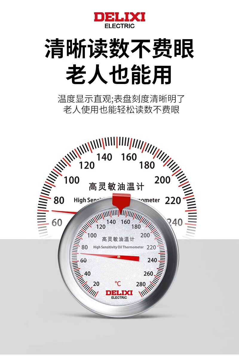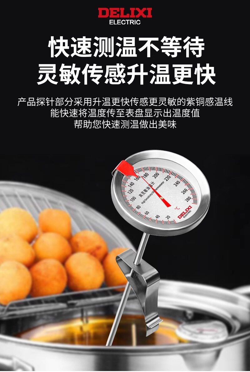 Delixi Oil Thermometer Kitchen Thermometer Baking Barbecue Liquid Food Thermometer High-Precision Commercial Oil Temperature Meter